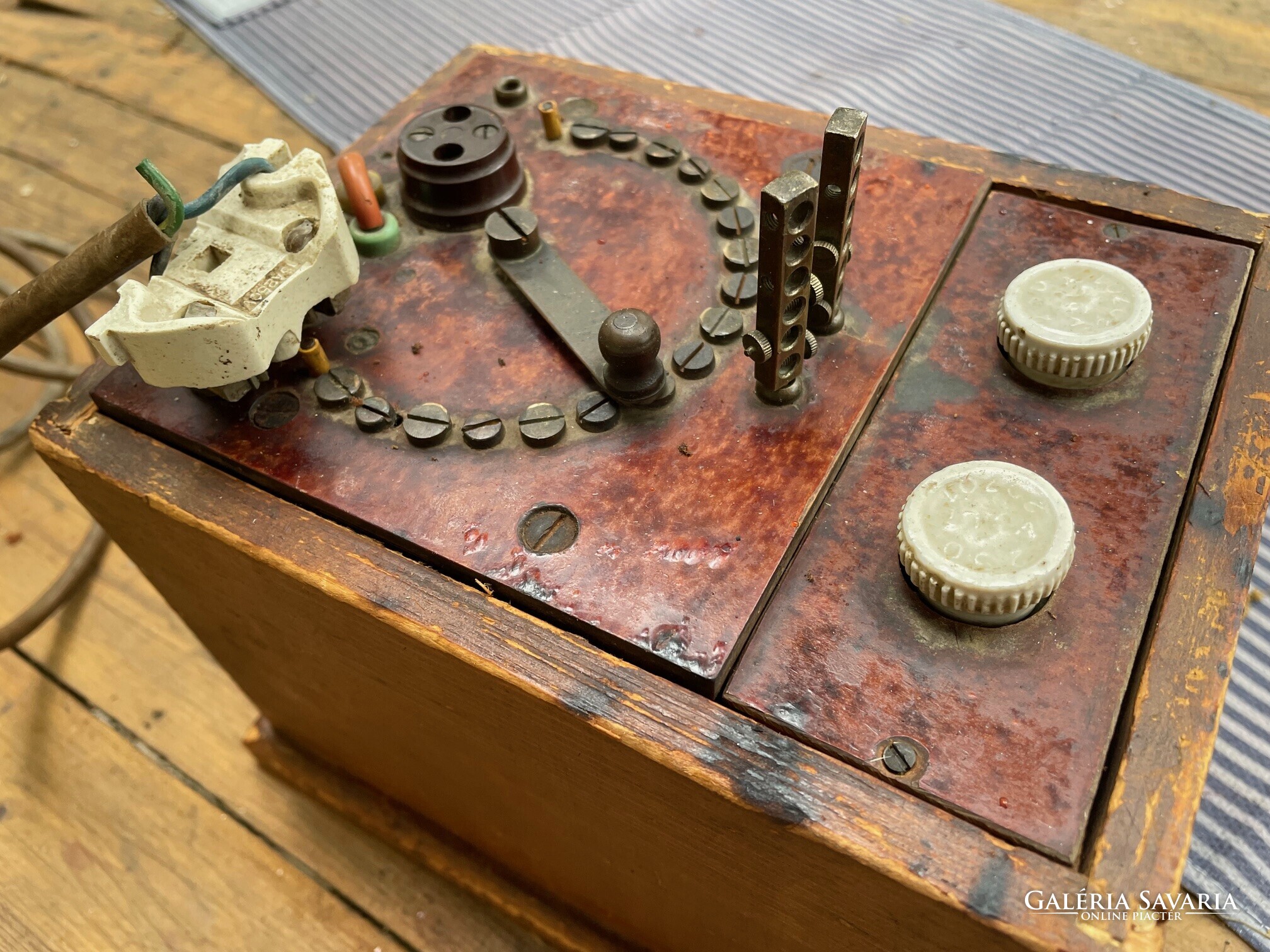 Igazából nem tudom, hogy mi, talán egy detektoros rádió vagy transzformátor vagy szabályozható trafó?. Egy mérnök hagyatékából került elő.