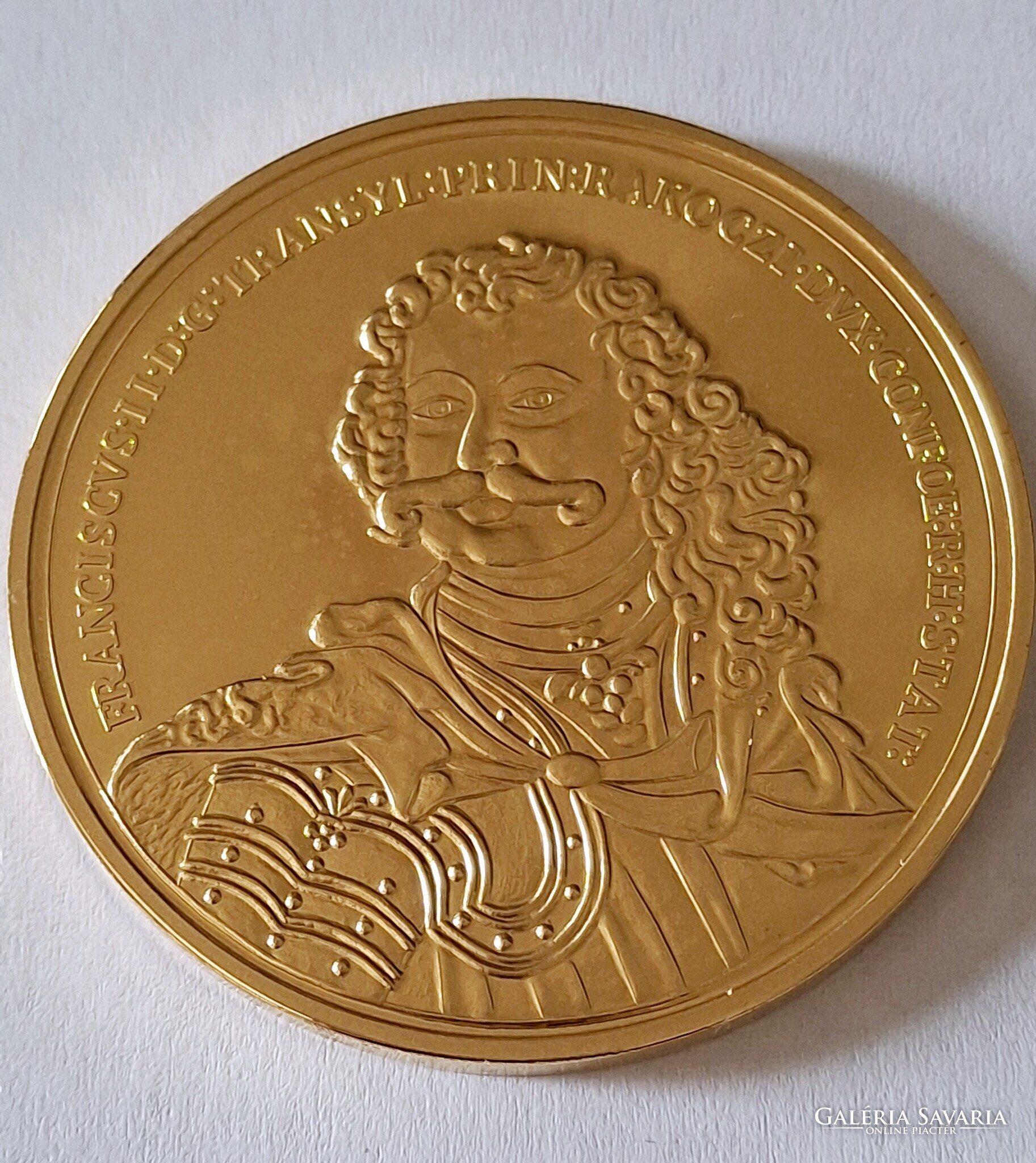 II.Rákóczi Ferenc aranydukát emlékérem utánveret 24 karátos aranyozással tükörveret. Unc minőségben kapszulában