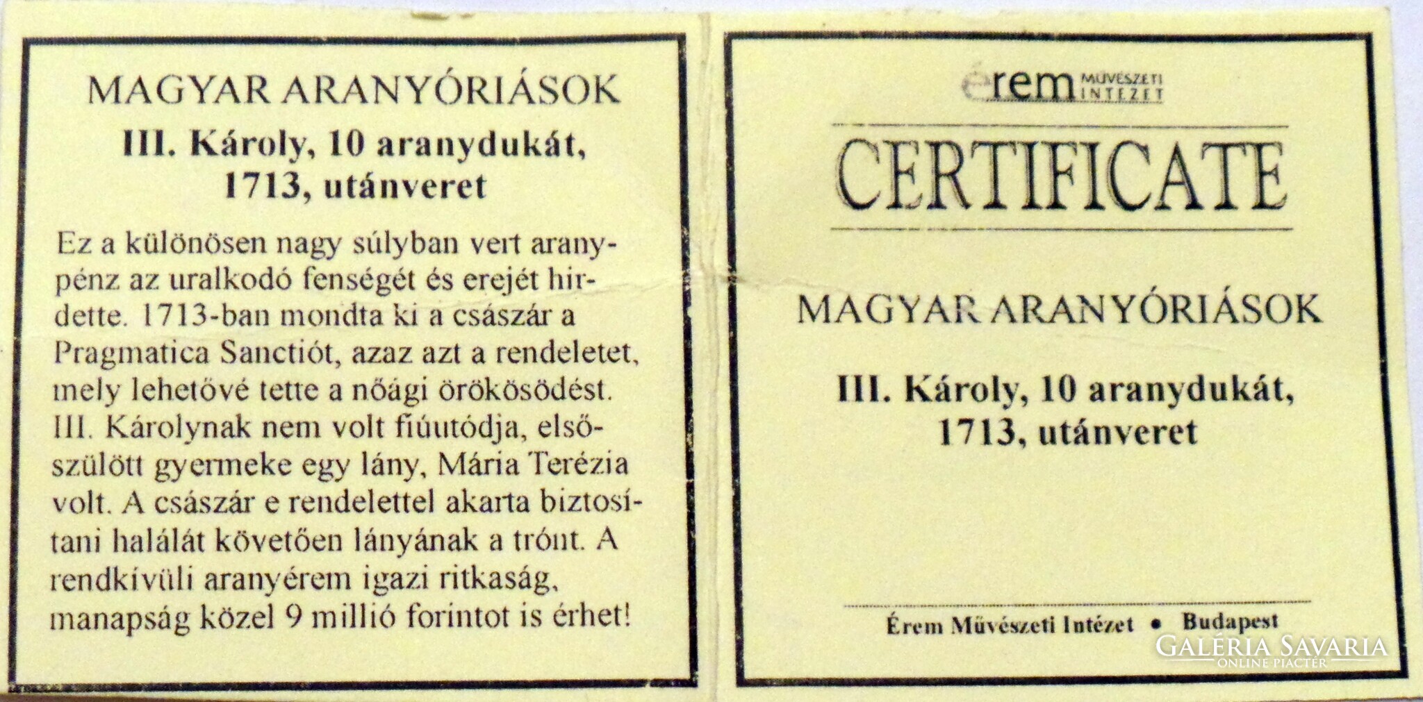 Az érméhez tartozik a képen látható certificate is és természetesen hibátlan (UNC) állapotú.