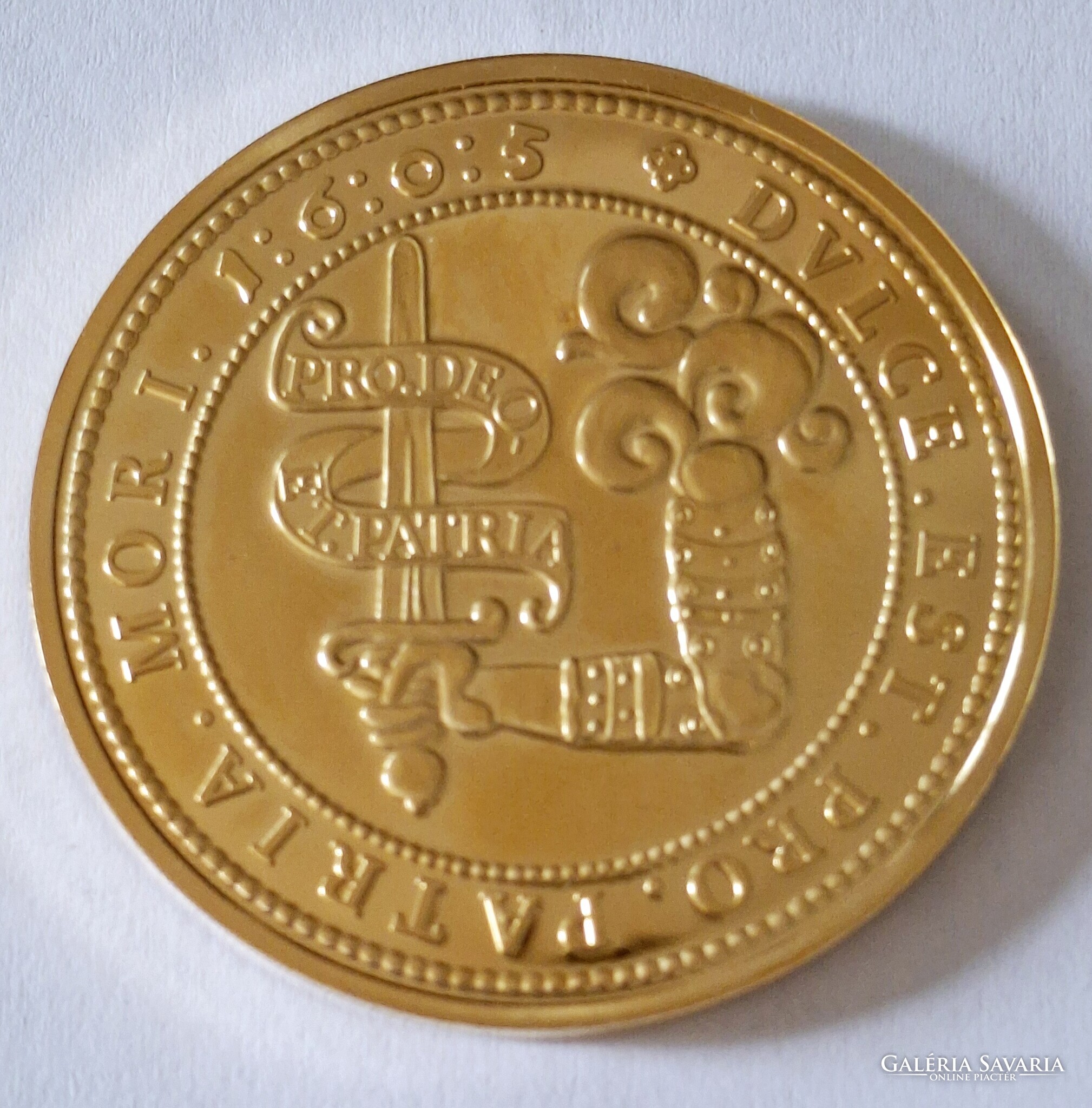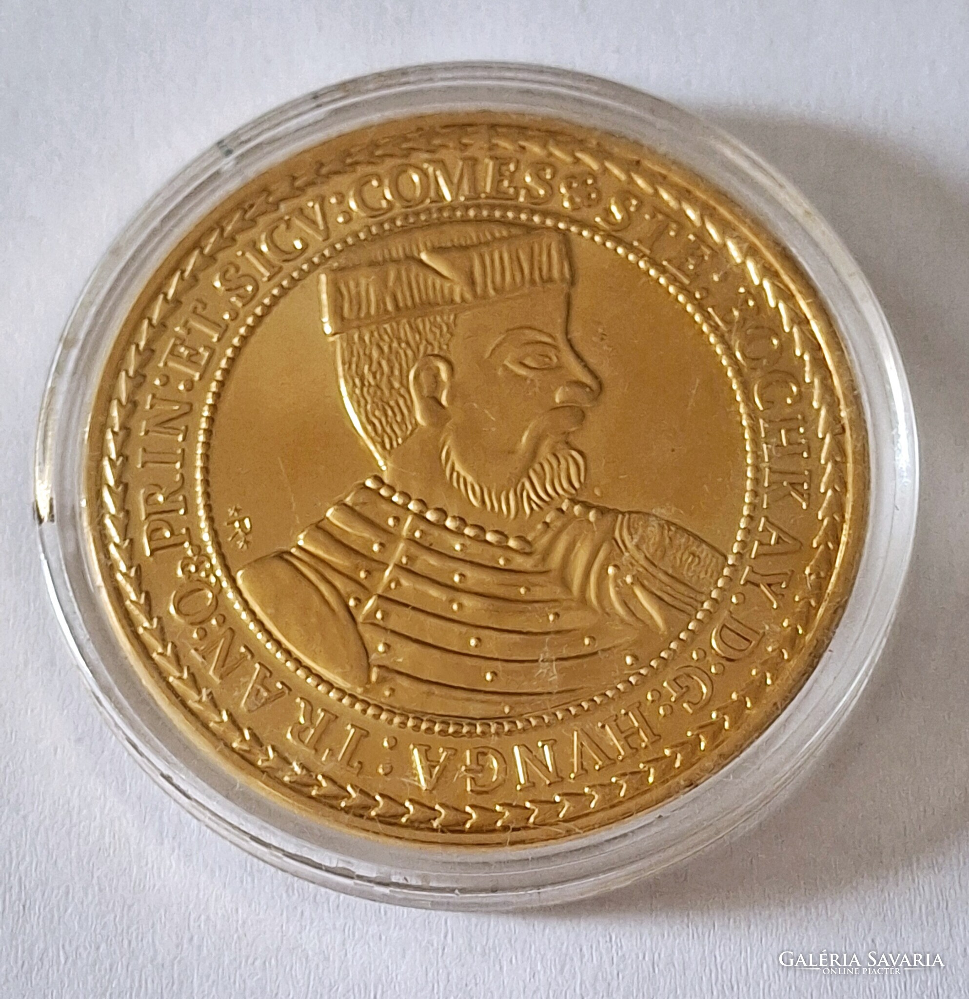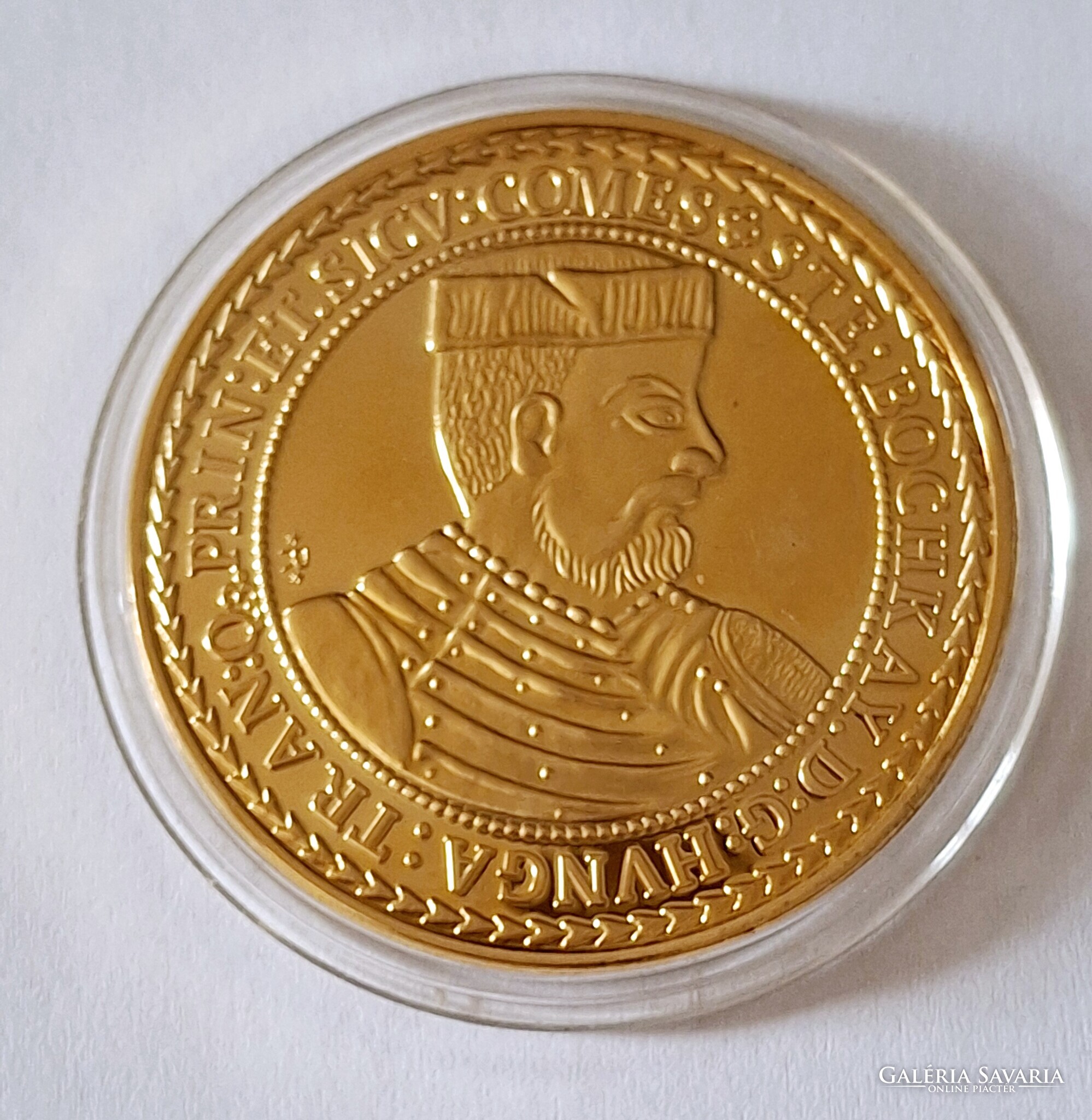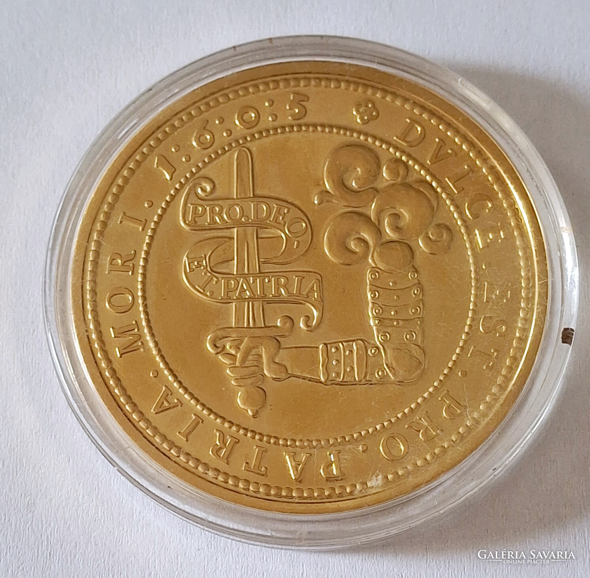Bocskai István10 dukát 1605 érem utánverete 24karátos arannyal bevont ,kapszulában