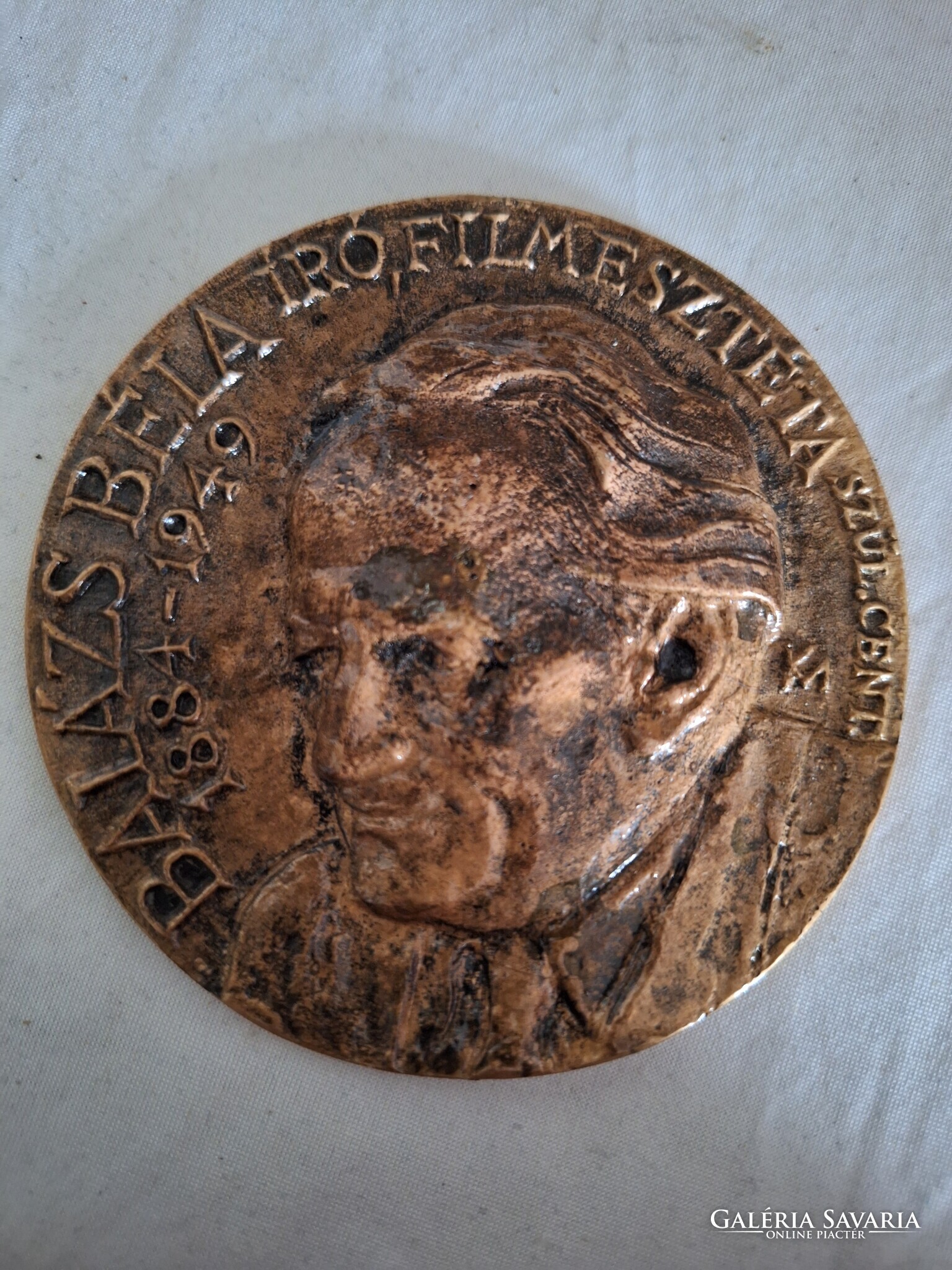 Kalmár Márton: Balázs Béla 1884-1949 egy oldalas Bronz plakett