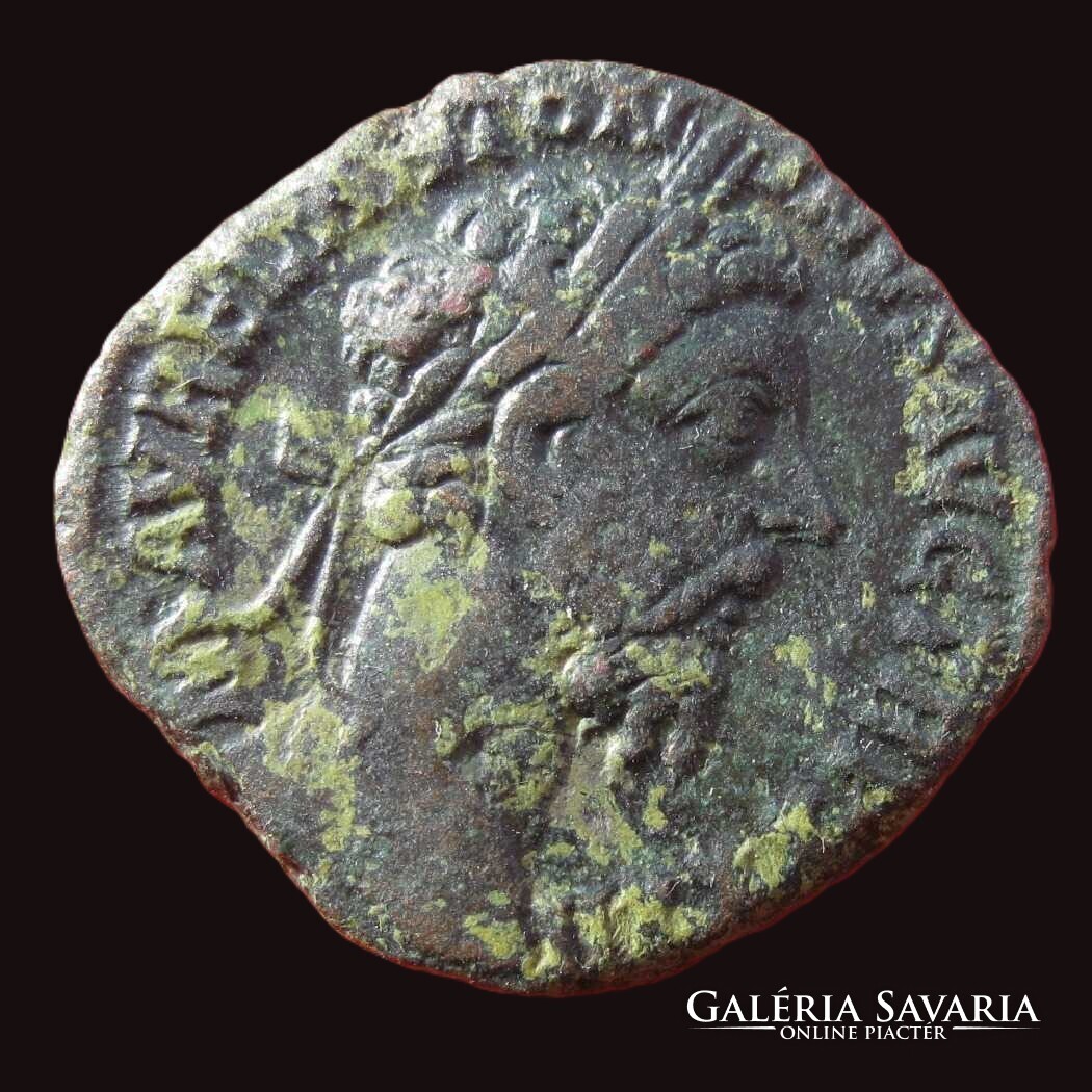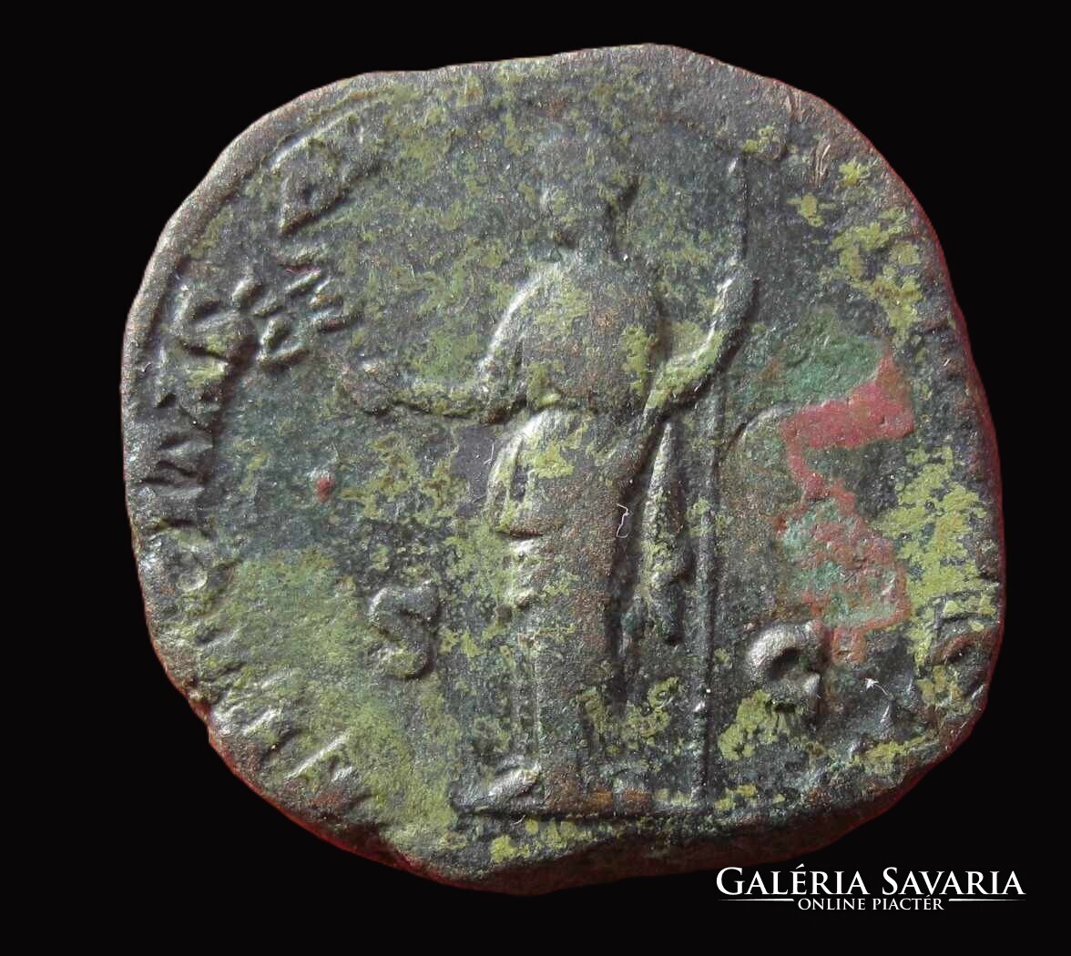 Római MARCUS AURELIUS SESTERTIUS Felicitas Caduceussal és lándzsával, 24,8 gr, Malachit patina