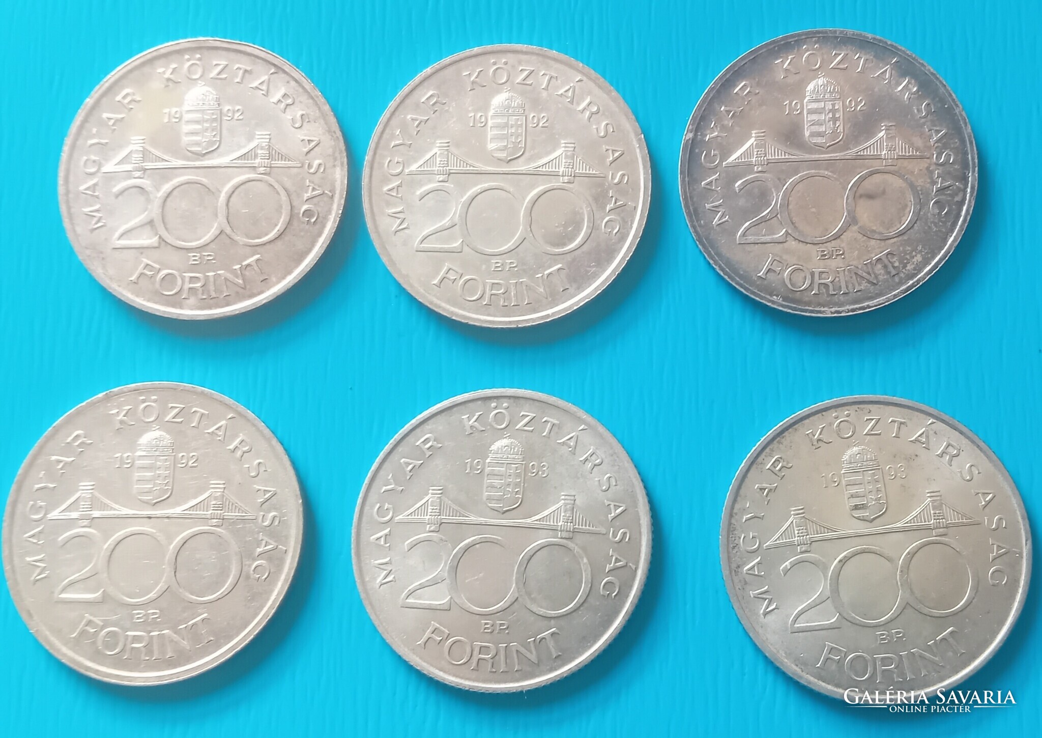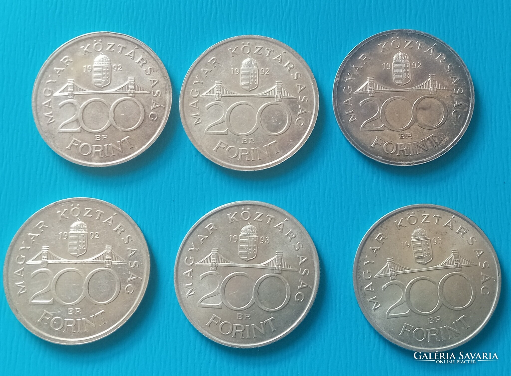 6 db 200 Forintos 5 db 1992 évi 1 db 1993 évi. aUNC , Fotók szerint..