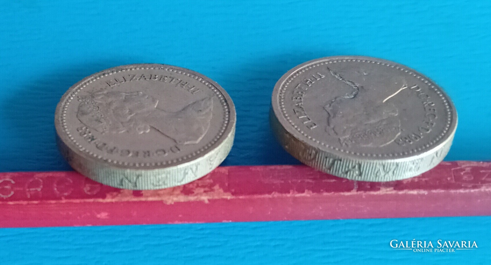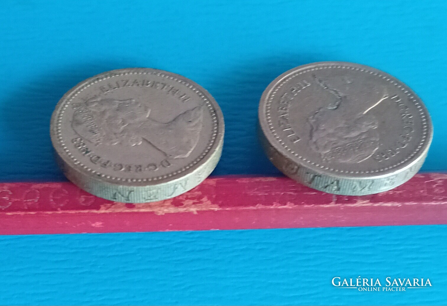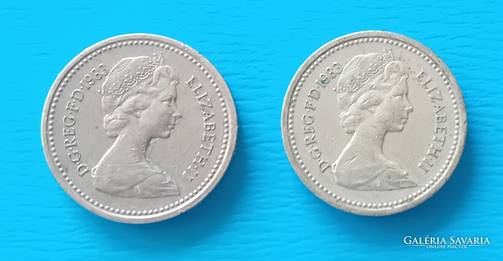 2 db ritka angol Font , 1983 évi. Az egyiken fordított peremírat. Réznikkel.