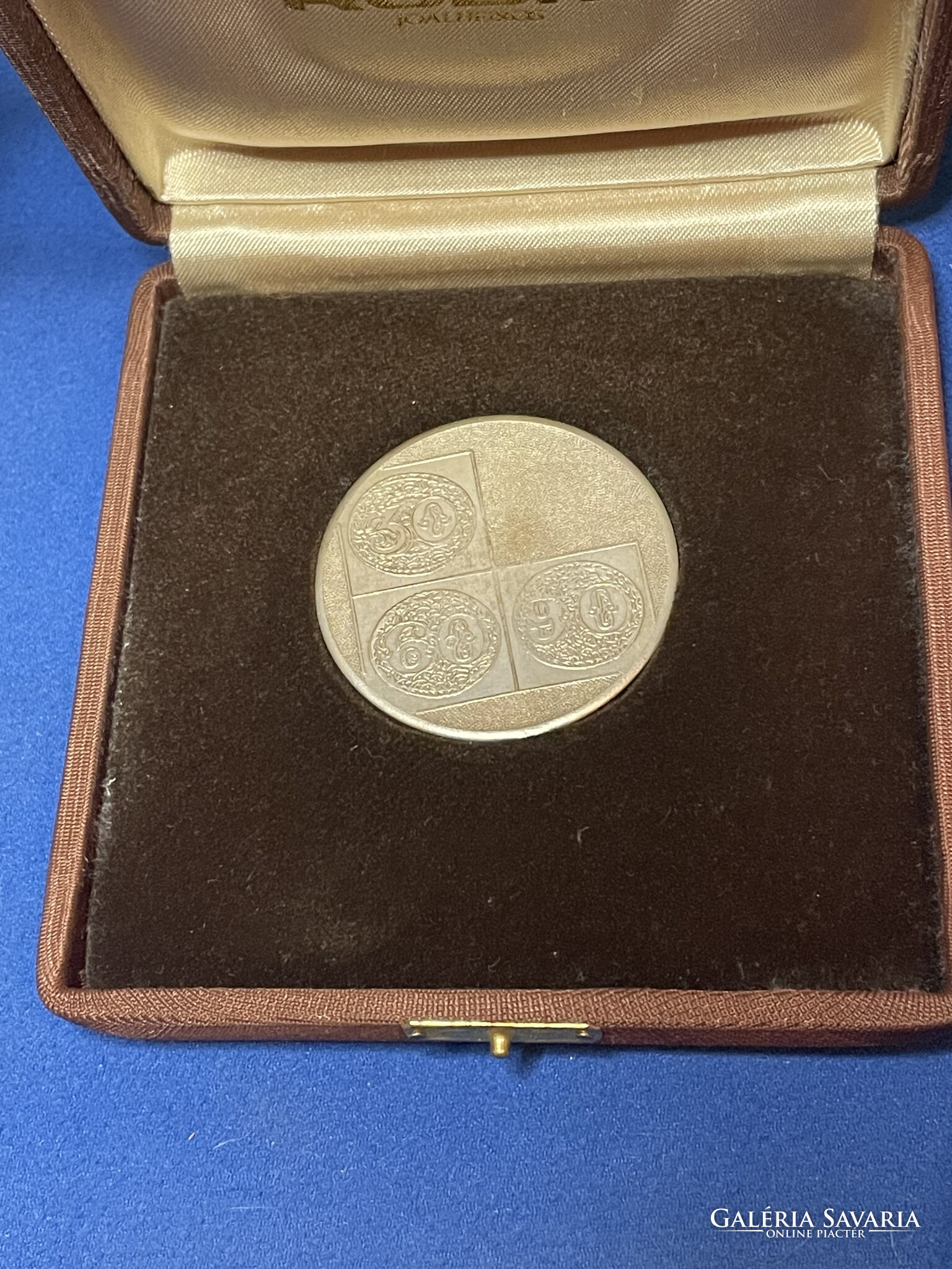 40 mm átmérőjű, két oldalas érme, saját díszdobozában.