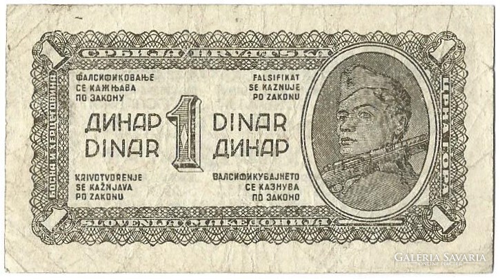 1 dinár 1944 Jugoszlávia Partizán bankjegy 2.