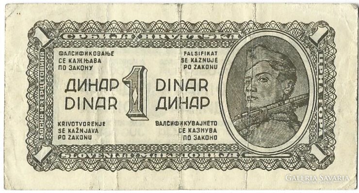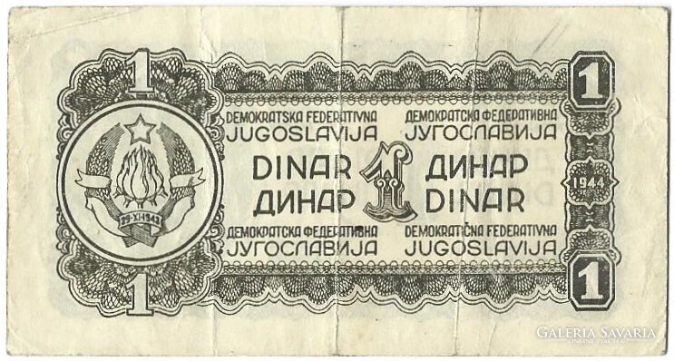 1 dinár 1944 Jugoszlávia Partizán bankjegy 3.