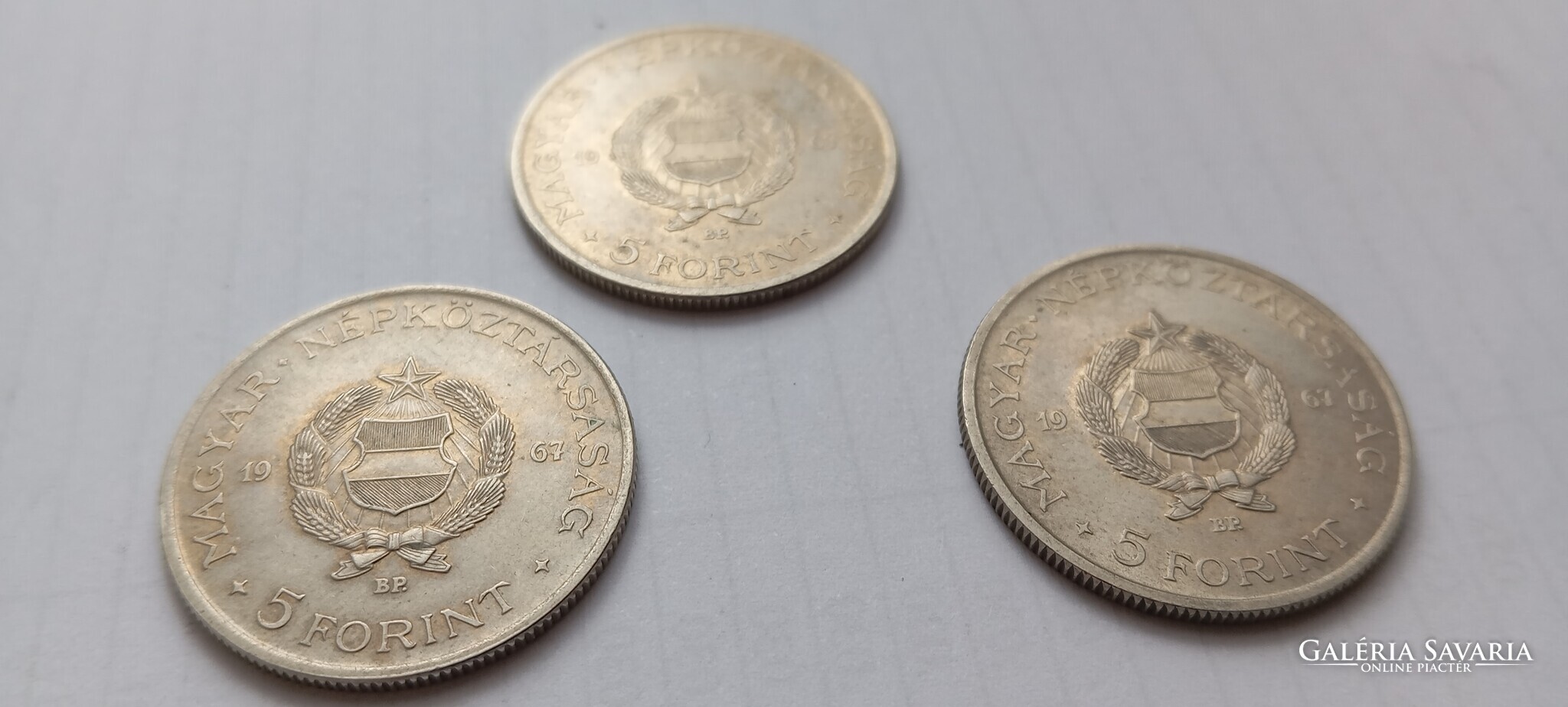 3 db 1967-es Kossuth 5 Forint, (2.)