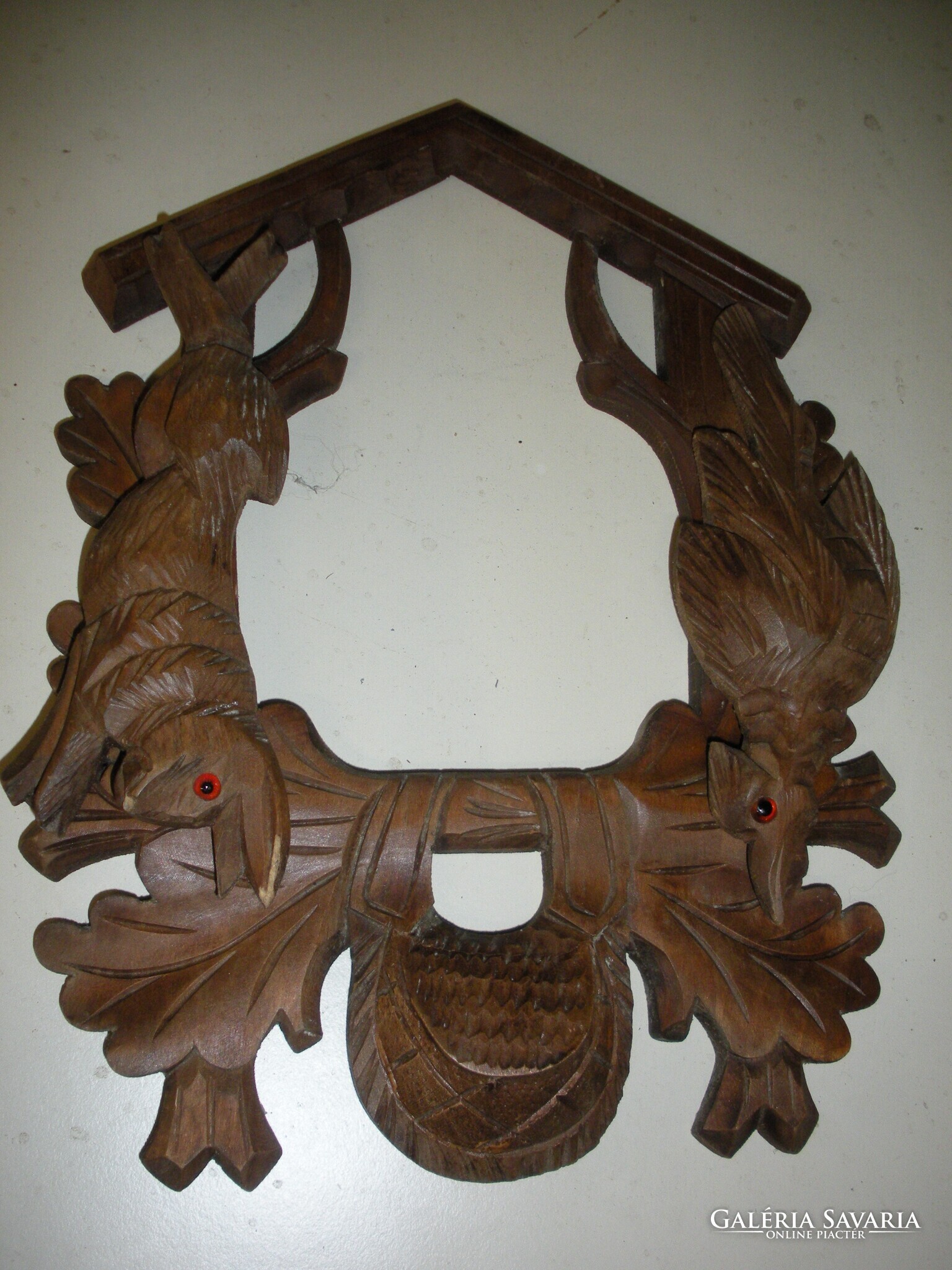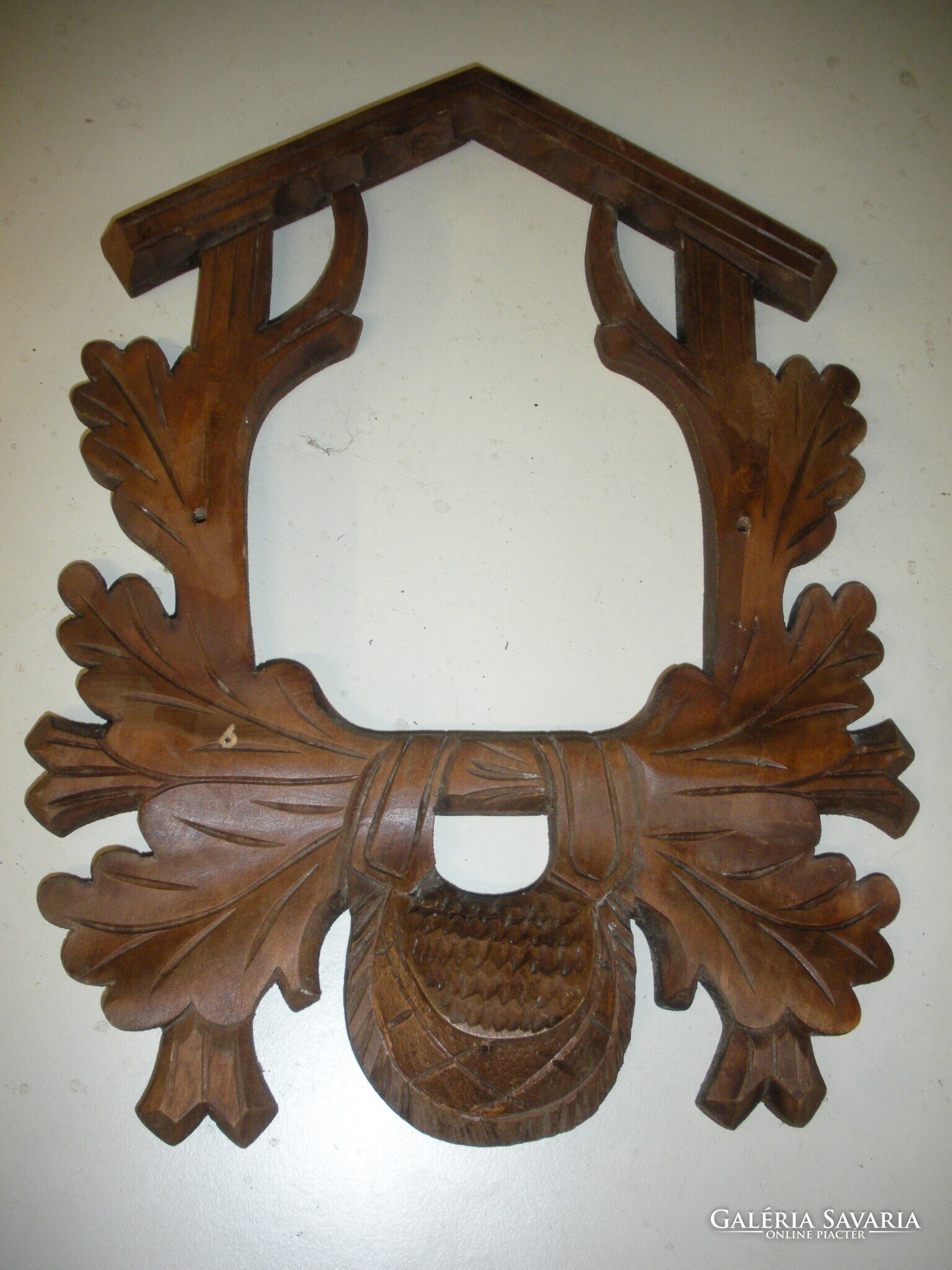 Kakukkos óra eleje faragás sajnos a többi nincs meg. 27x 20 cm.
