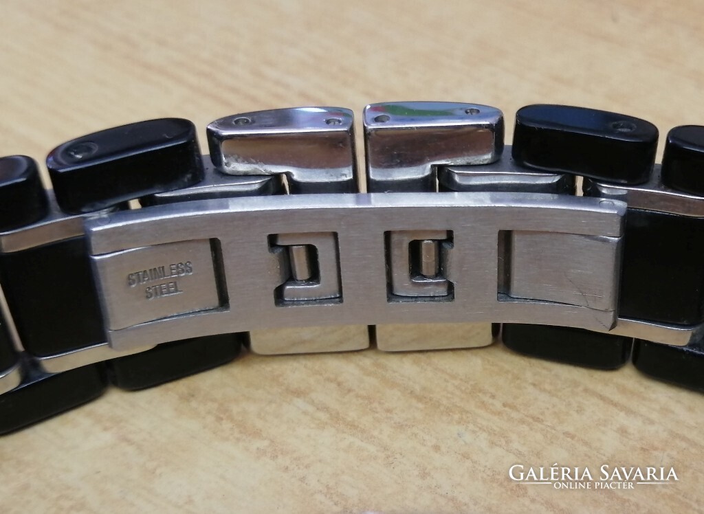 Divatos márkás ékszeróra hölgyeknek. Fekete kerámia csat, Kristályokkal