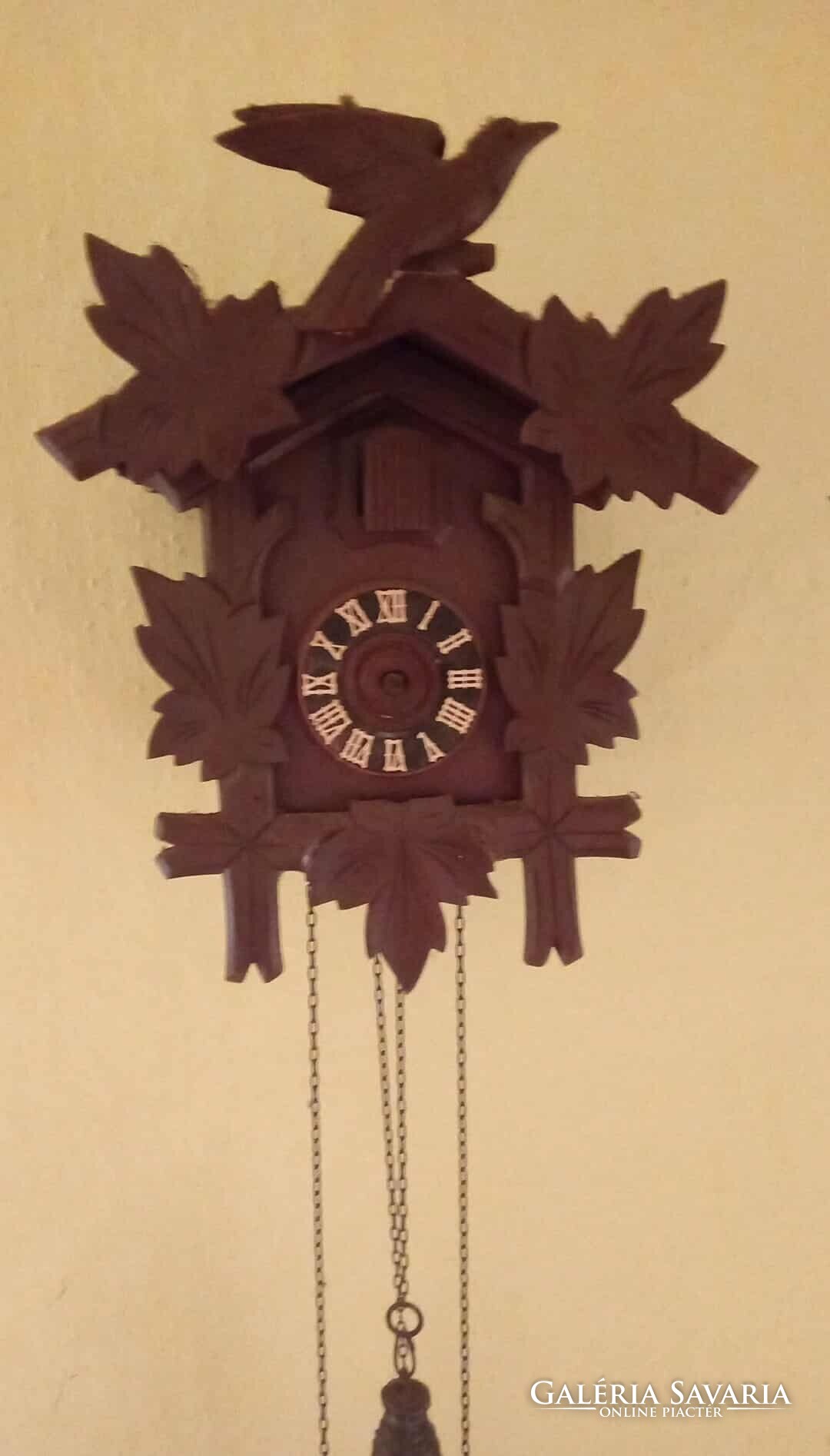 Kakukkos óra eladó fekete erdő, német vintage fából faragott, súlyozott ingahajtasu kakukkos óra 1960-as évekből. Hiányos a mutatója.
