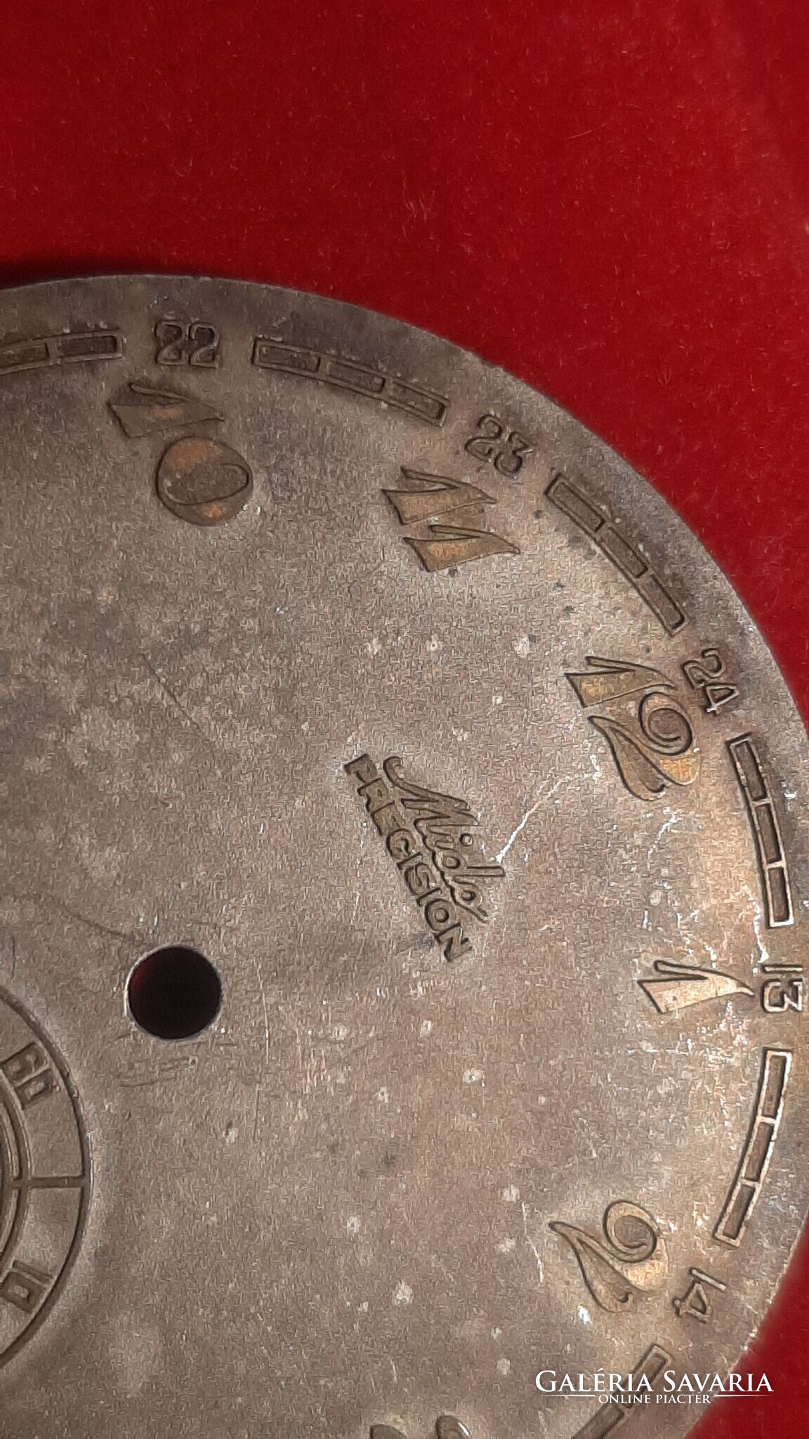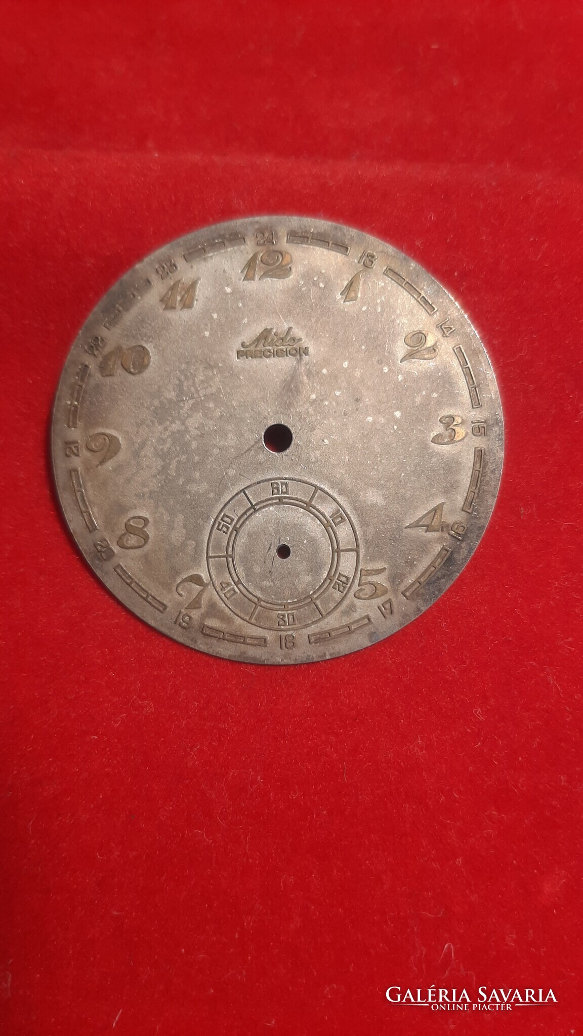 Eladó a képeken látható Mido fém zsebóra számlap. Átmérője 40 mm, lyukak közötti távolság 10 mm.