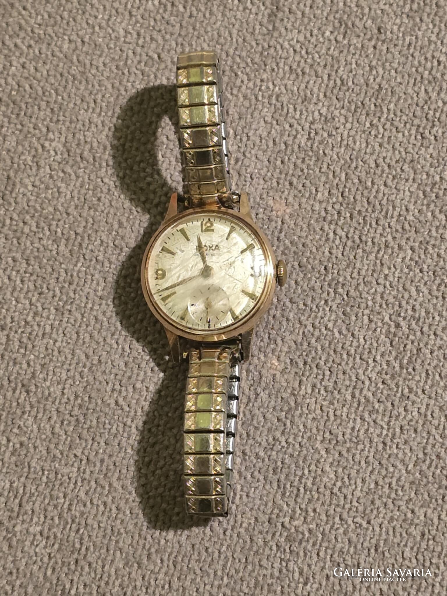 Arany Doxa női karóra átmérője kb 2 cm, müködik üvege karcos.