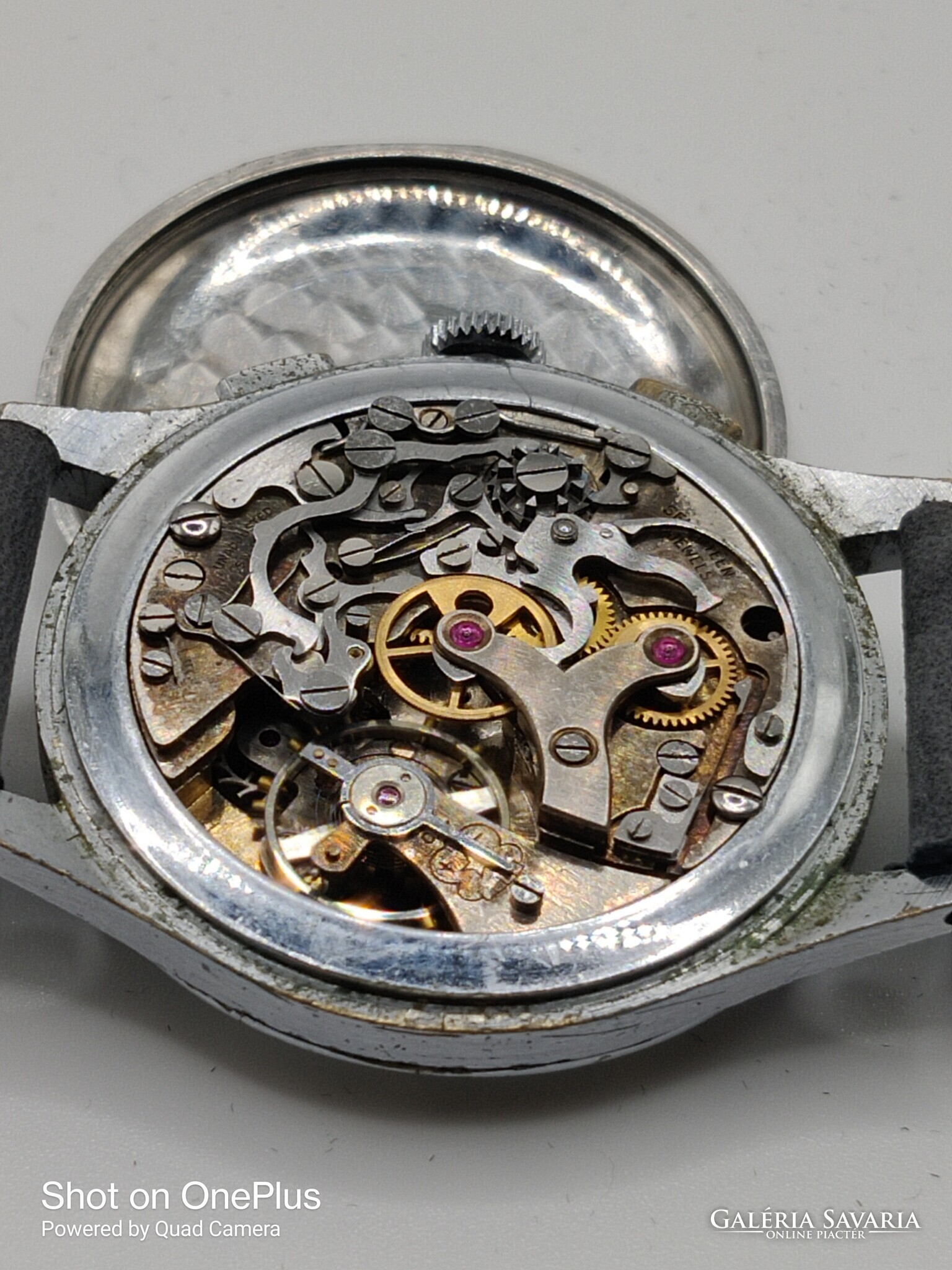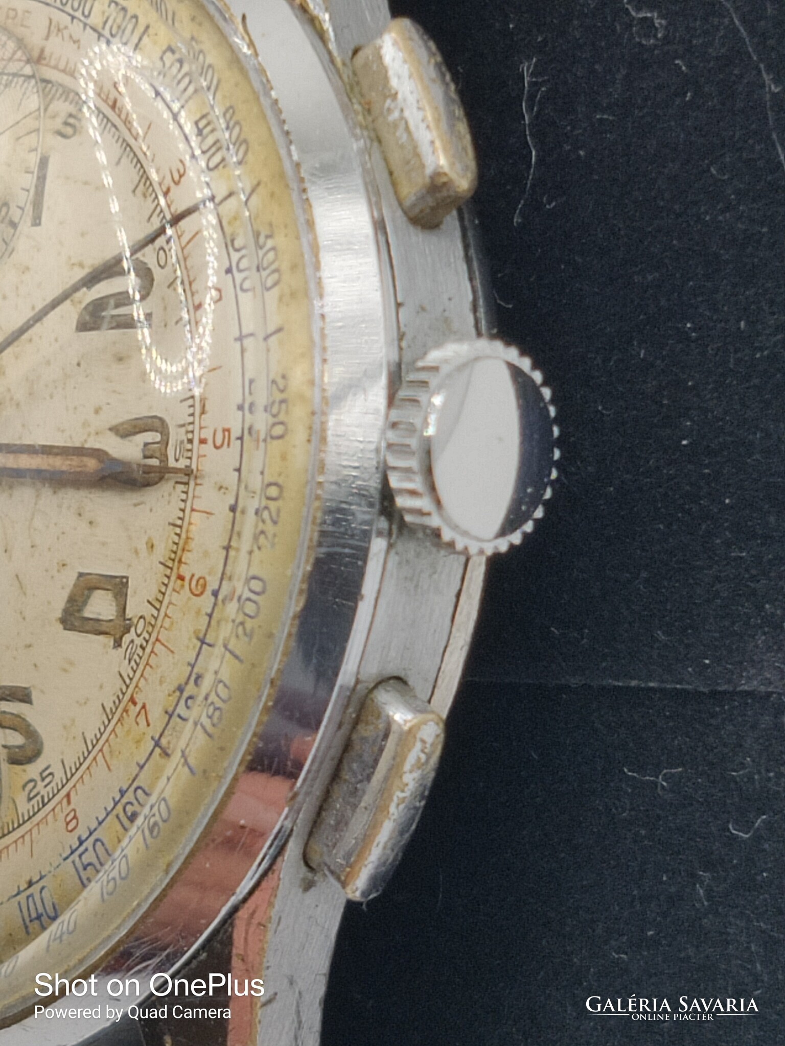 Az 1940-es évekből származó óra korának megfelelő gyönyörű patinával, Venus 170 szerkezettel.
