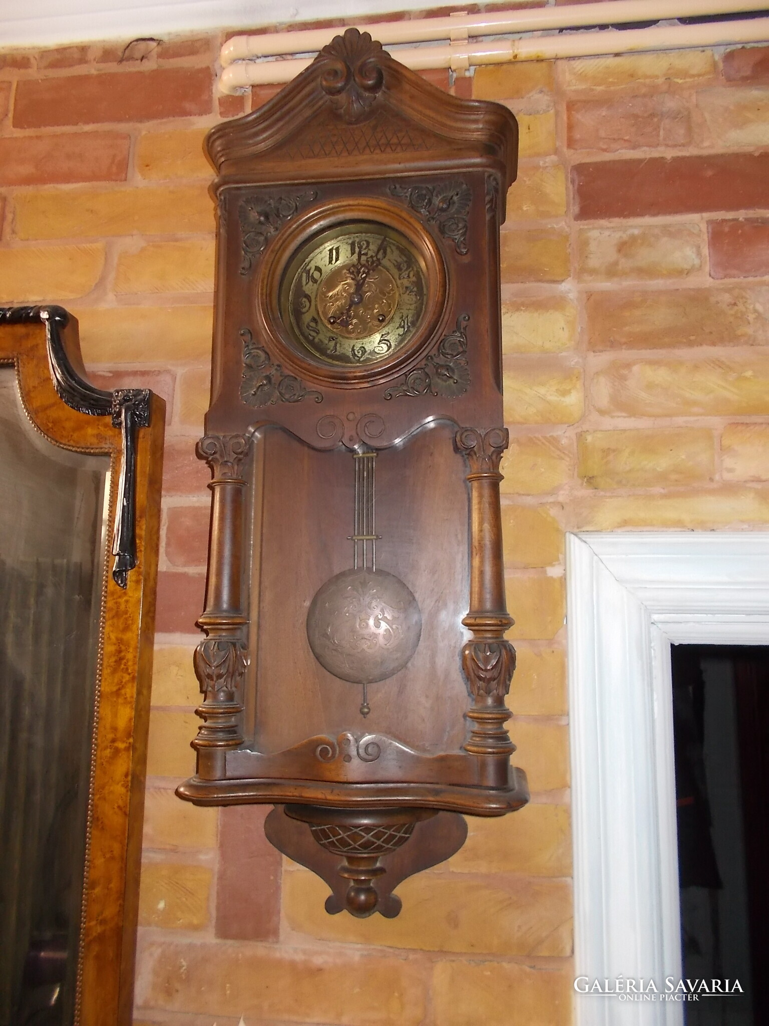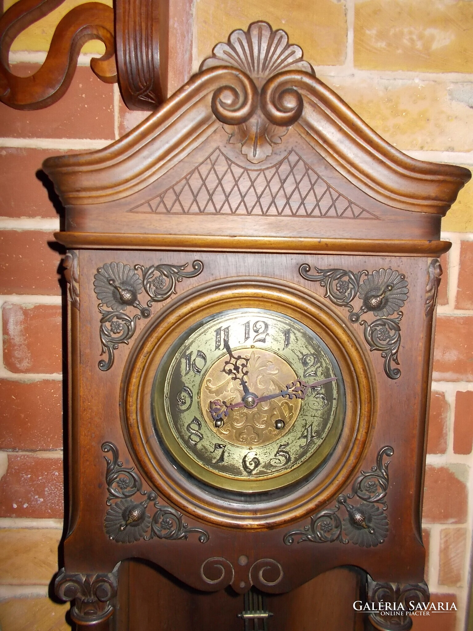 Bécsi barokk falióra, dekorációnak és használatra, képek alapján, teljesen eredeti állapotban fennmaradt óra.2 hétig is jár, de valamikor megáll. 19század végi.