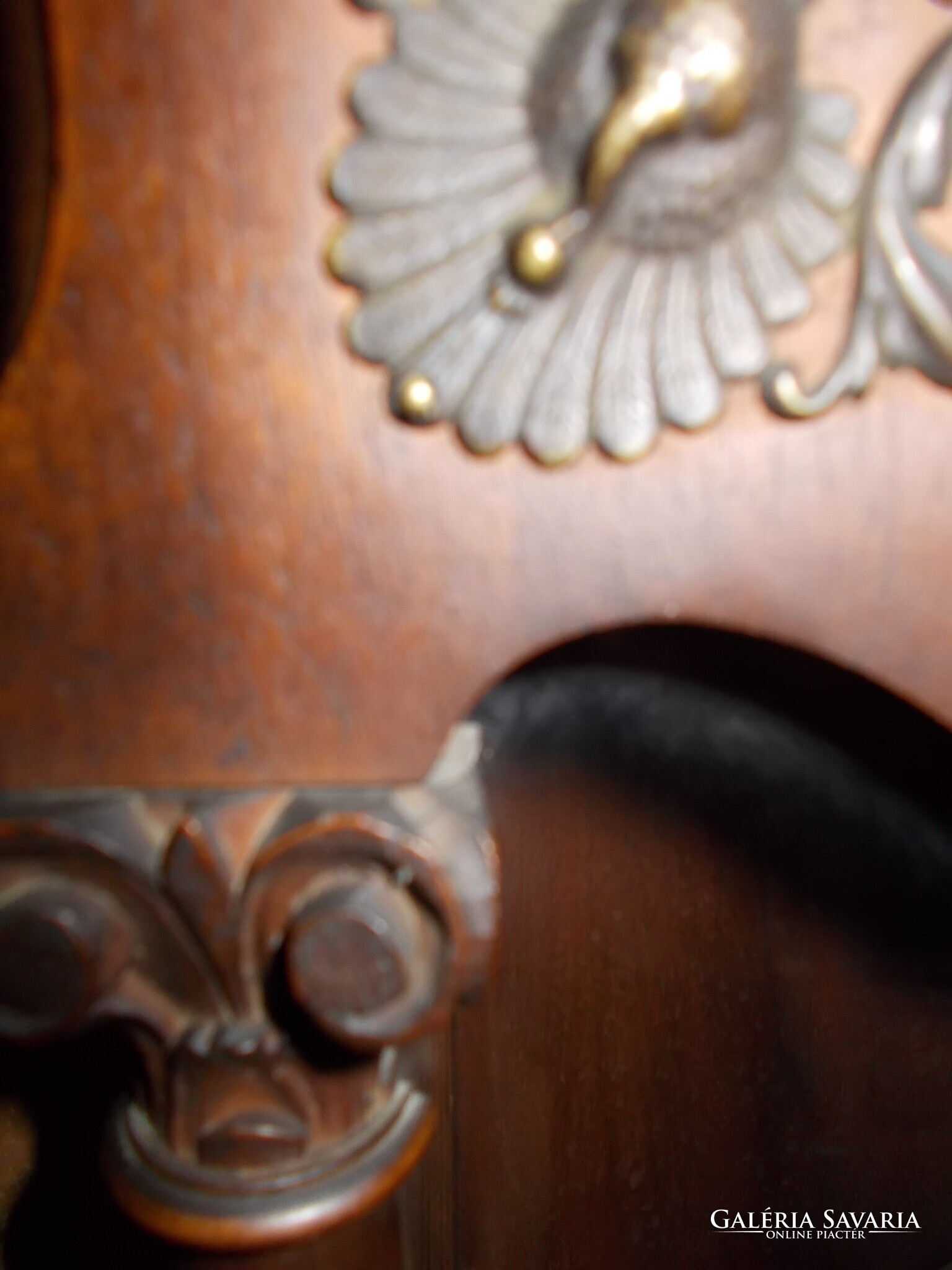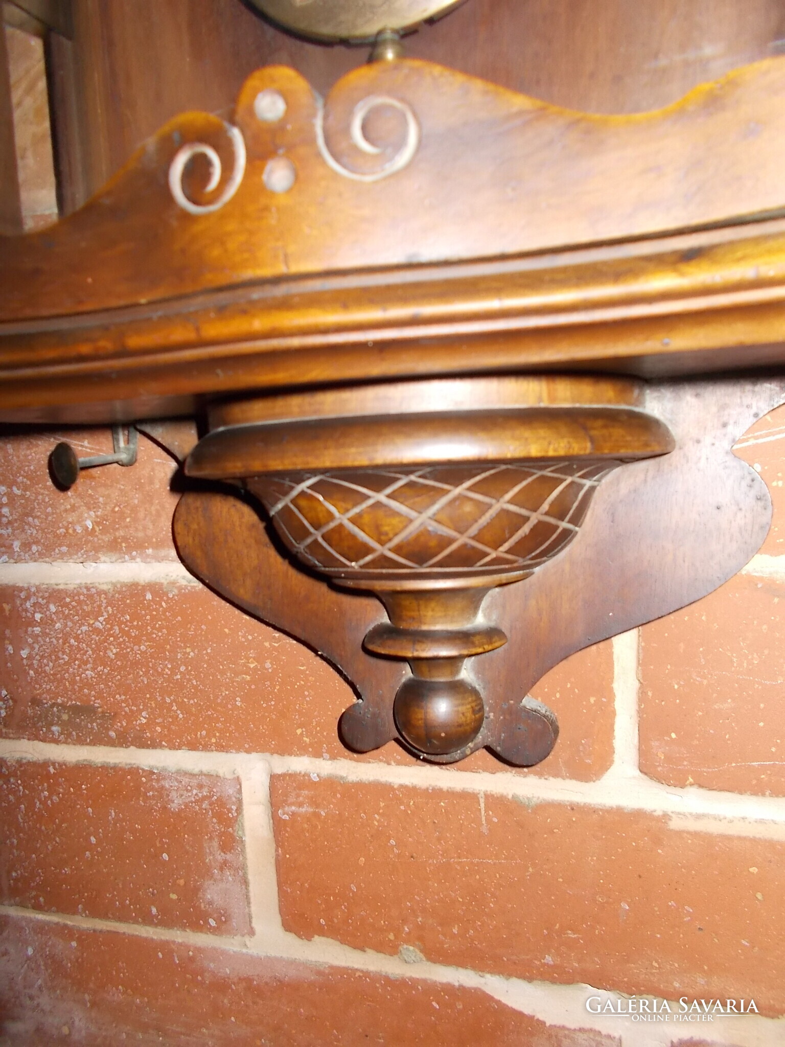 Felül faragott, íves díszítés (csigavonalak, legyezőmotívum).