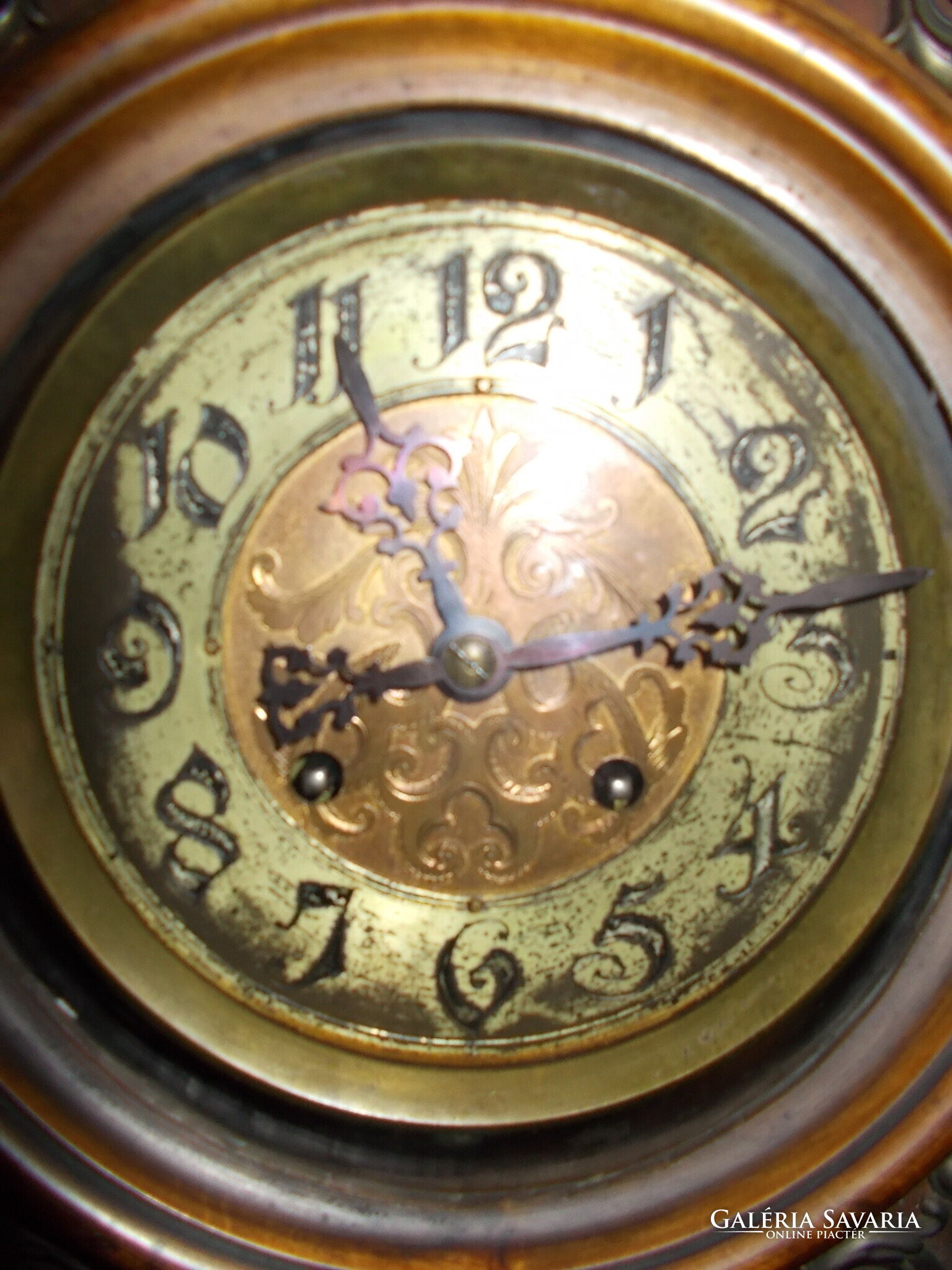 A számlapot körülvevő és a tokon elhelyezett fém virág- és indadíszek.