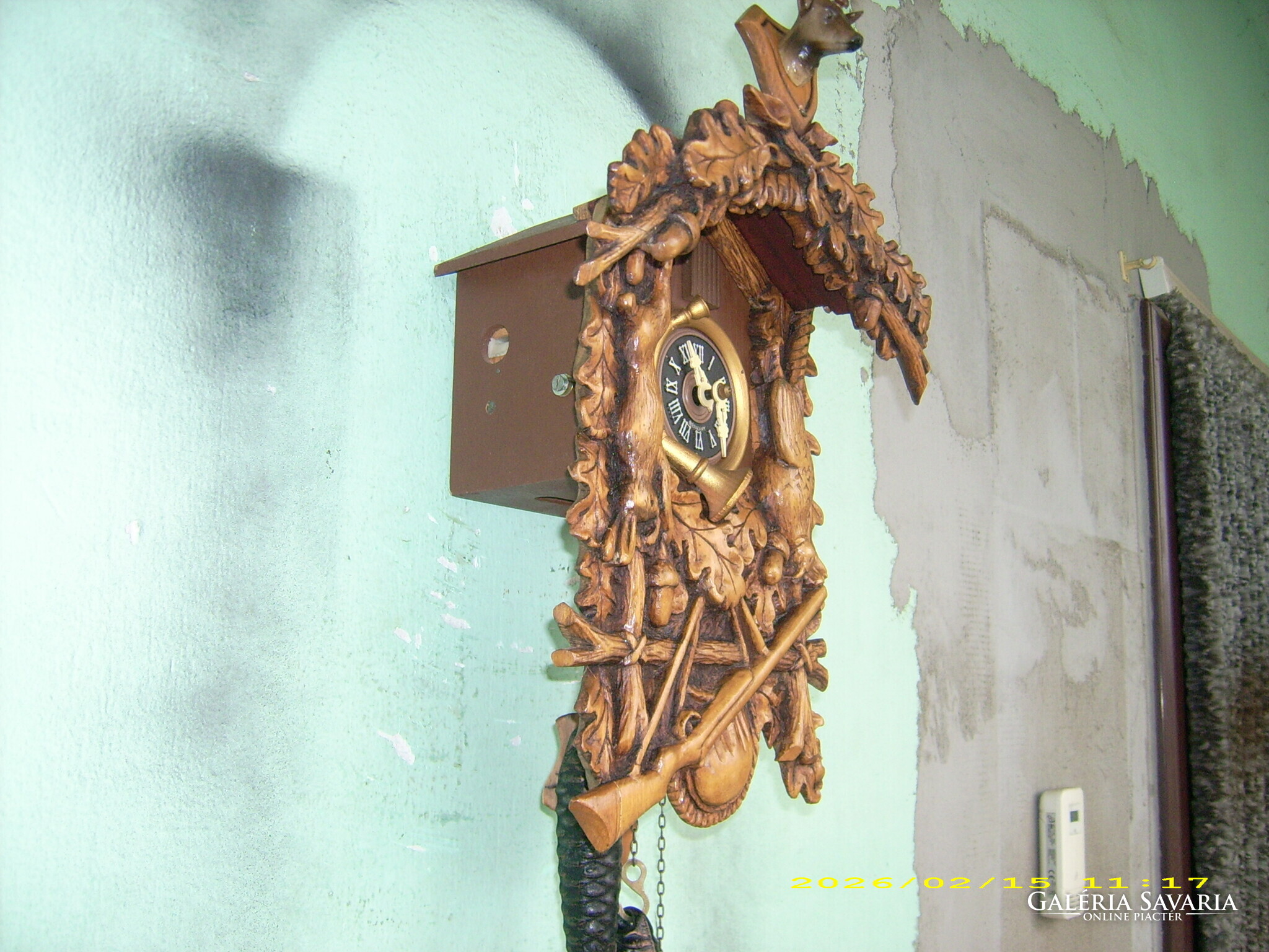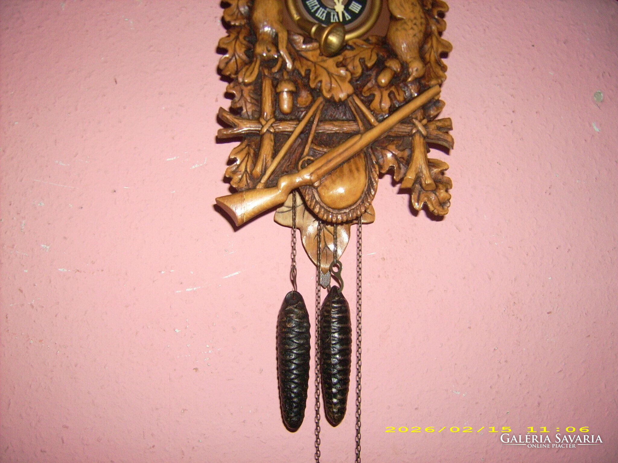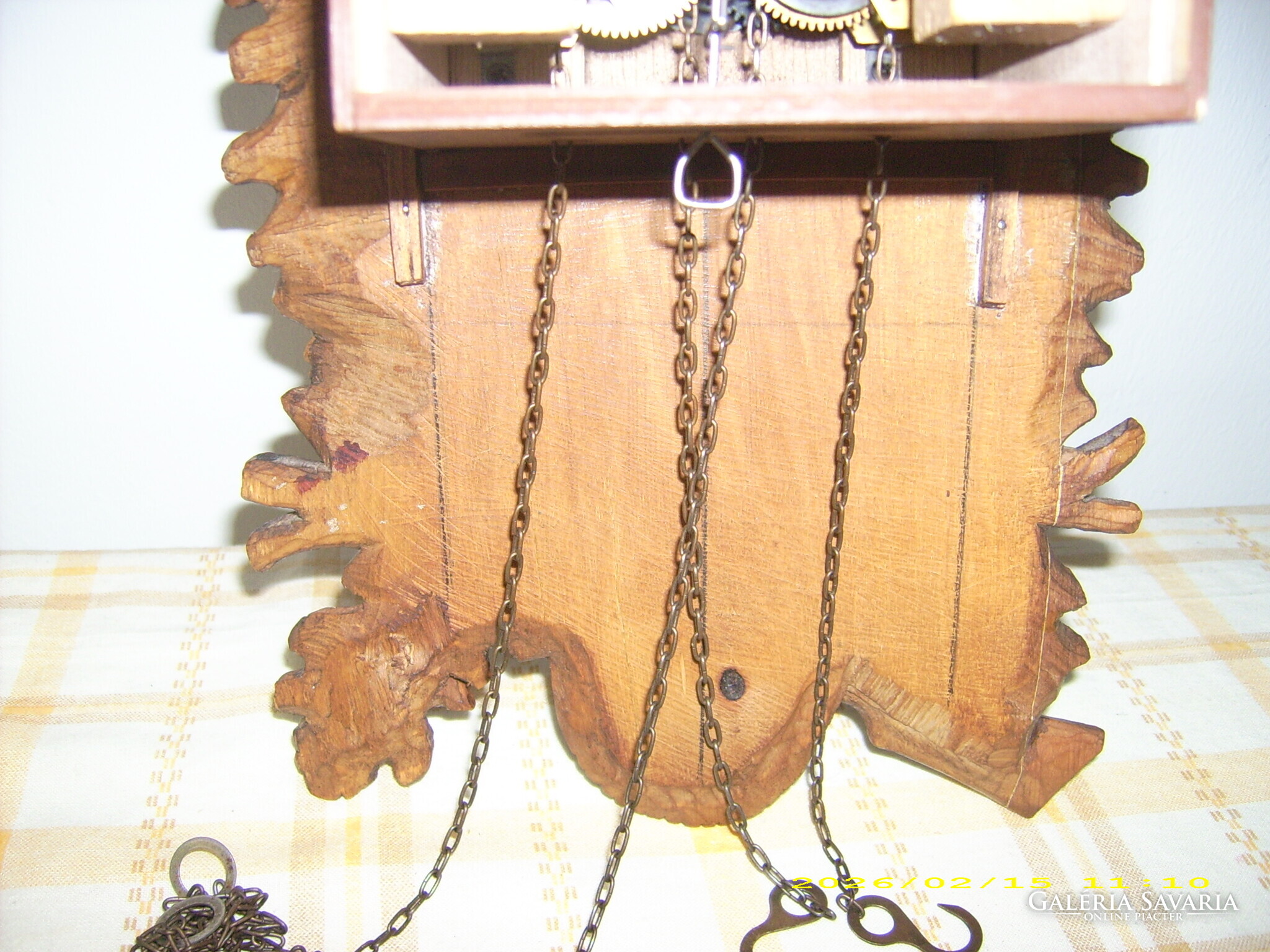 ELADÓ EGY CSODÁLATOS FARAGÁSÚ JÓL MŰKÖDŐ NÉMET KAKUKKOS ÓRA! A FRONT ÉS A TORONY SZERINTEM EGY NAGYON ÜGYES KEZŰ FARAGÓ TÖKÉLETES MUNKÁJA! ( nem műanyag!) ÁLLAPOTA A KÉPEKEN LÁTHATÓ! MÉRETE: 35X27 cm.