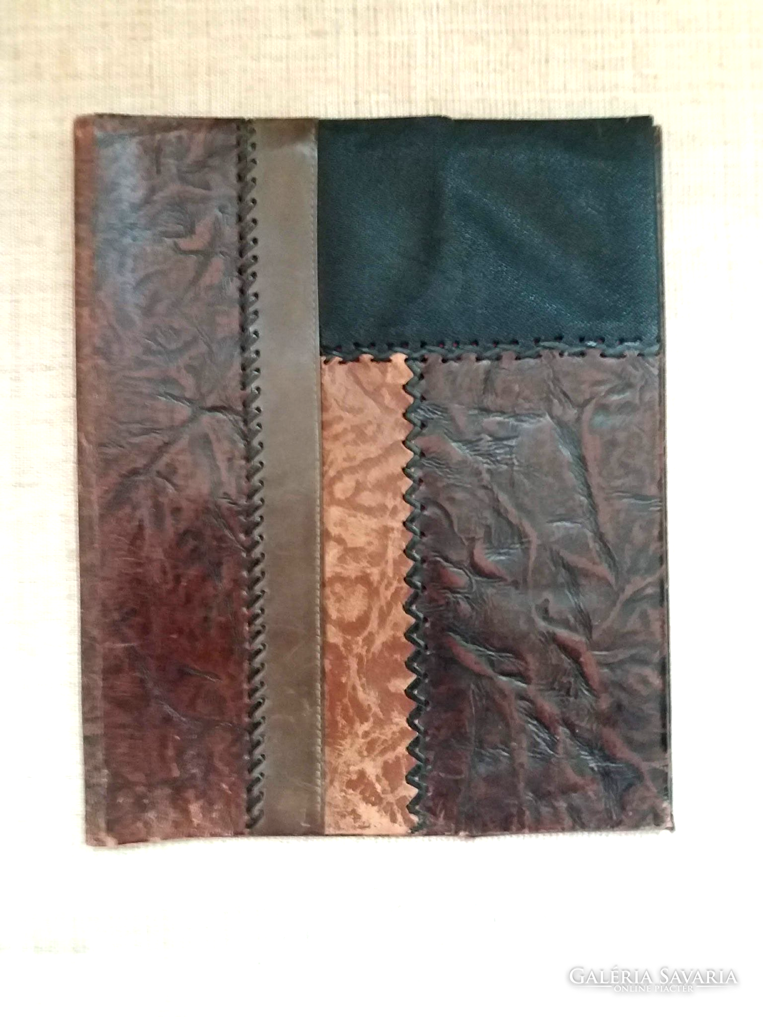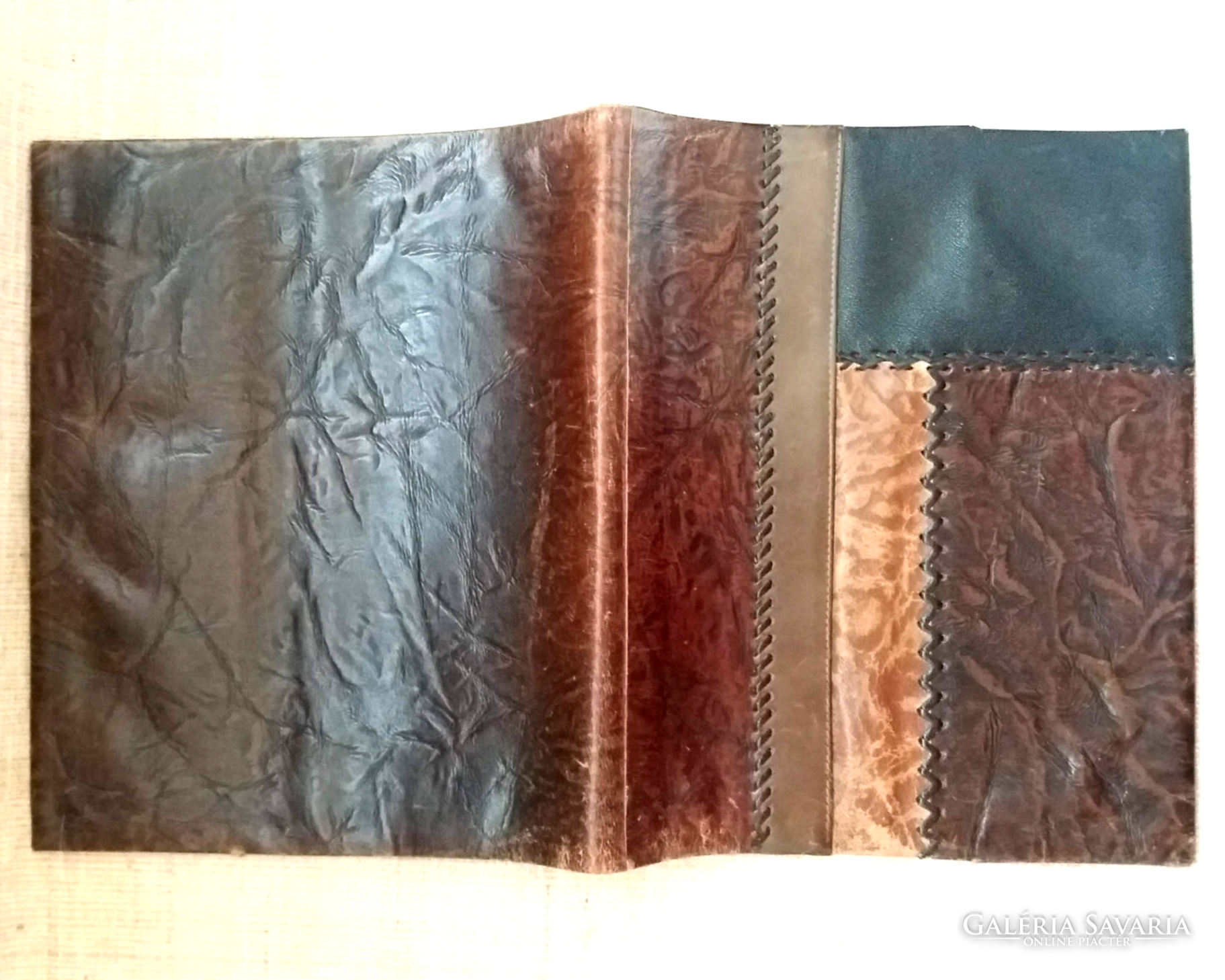 KÉZZEL KÉSZÍTETT SELYEM BÉLÉSES BŐR DOSSZIÉ KÖNYV BORÍTÓ