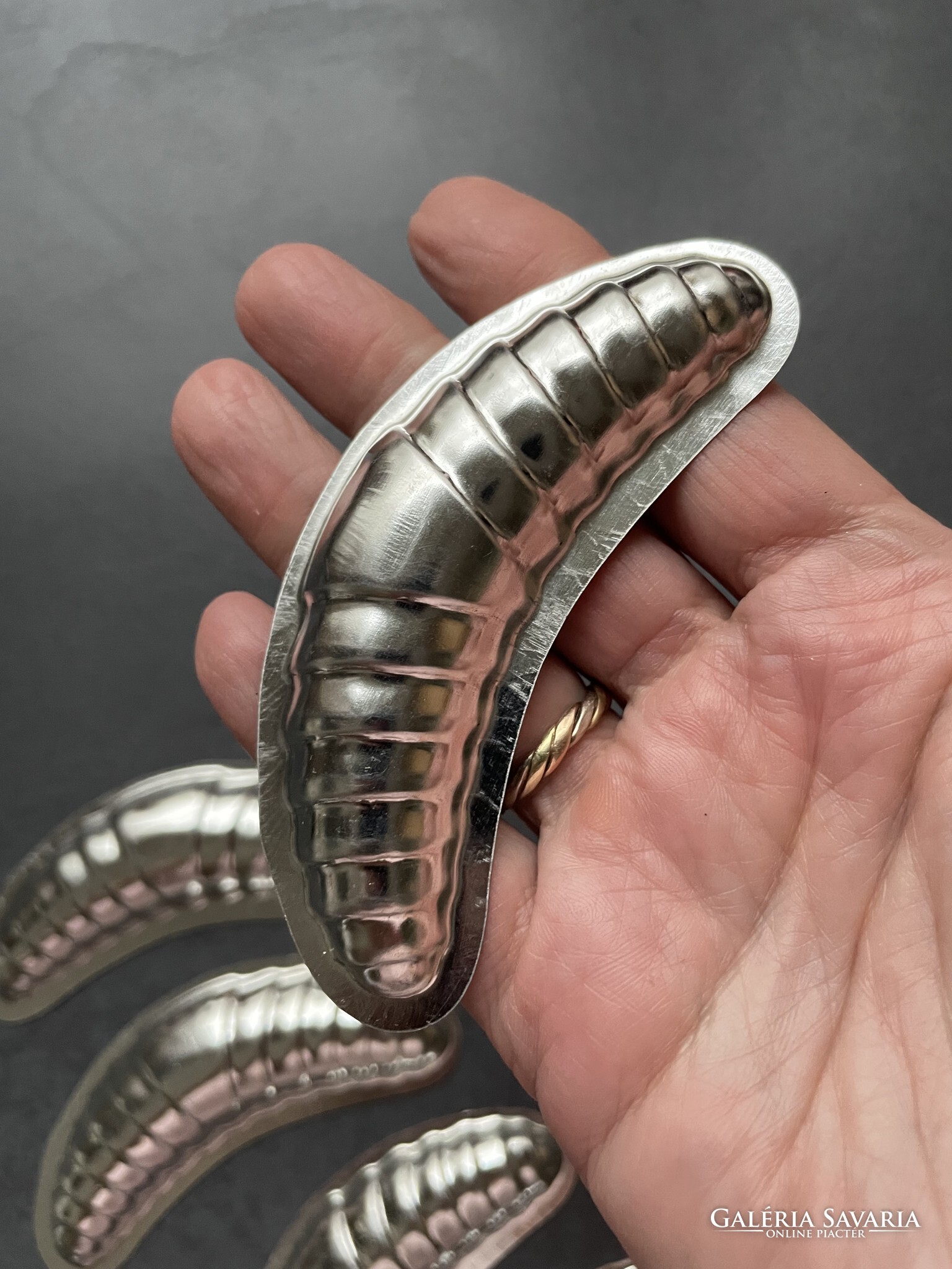 5 db régi fém sütemény sütőforma, csoki öntőforma, - kifli.