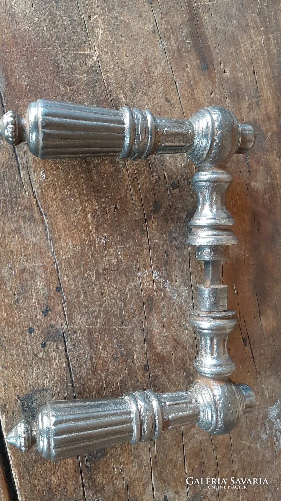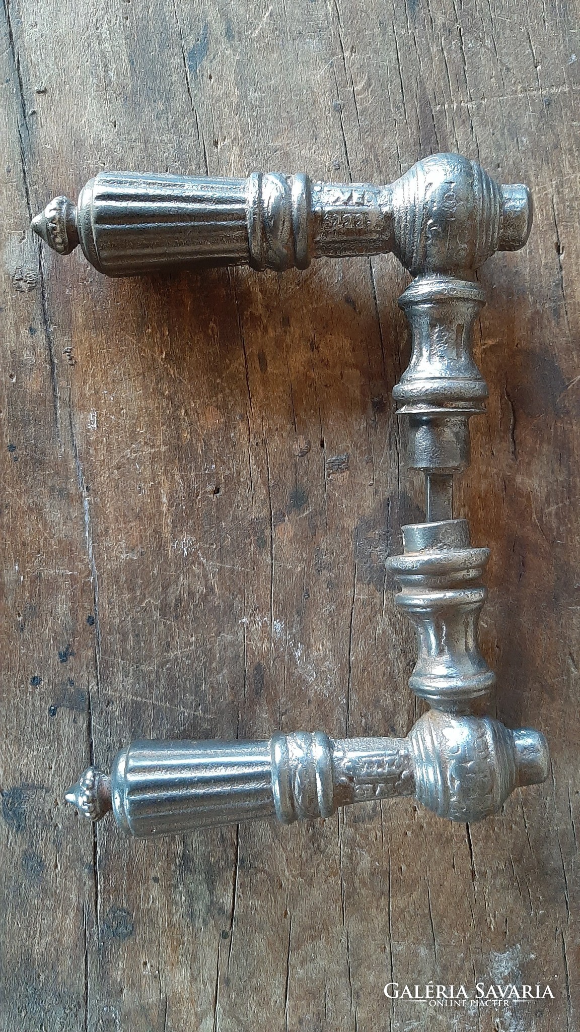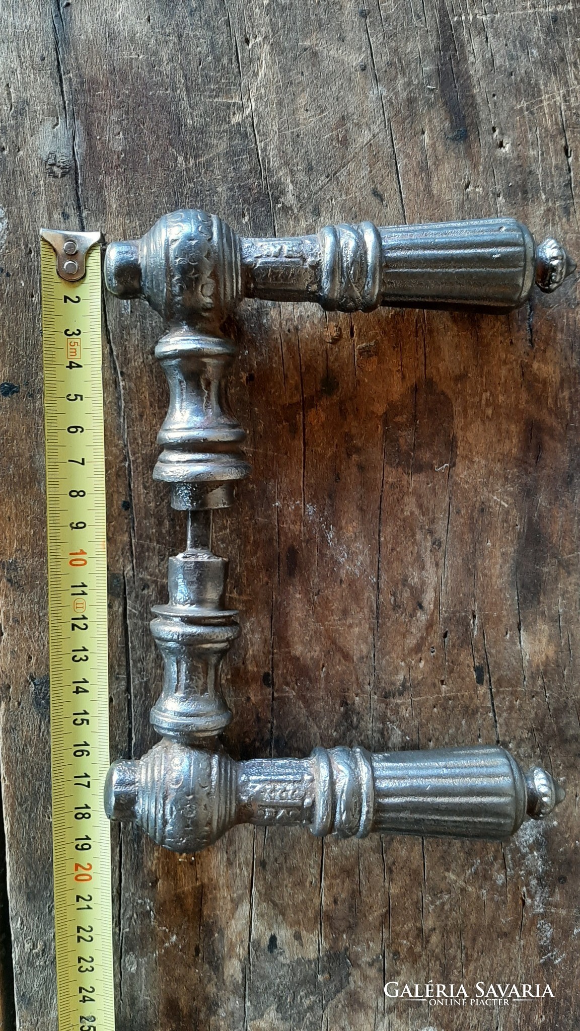Nagyméretű, nehéz, valószínűleg kapuhoz méretezett vas kilincs a század elejéről. Tisztított, azonnal használható állapot. Méret a képeken.