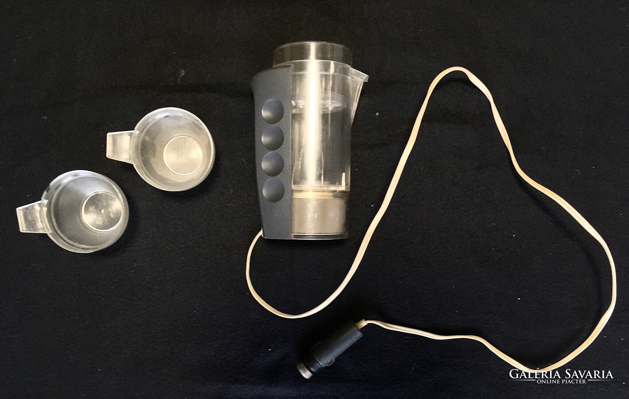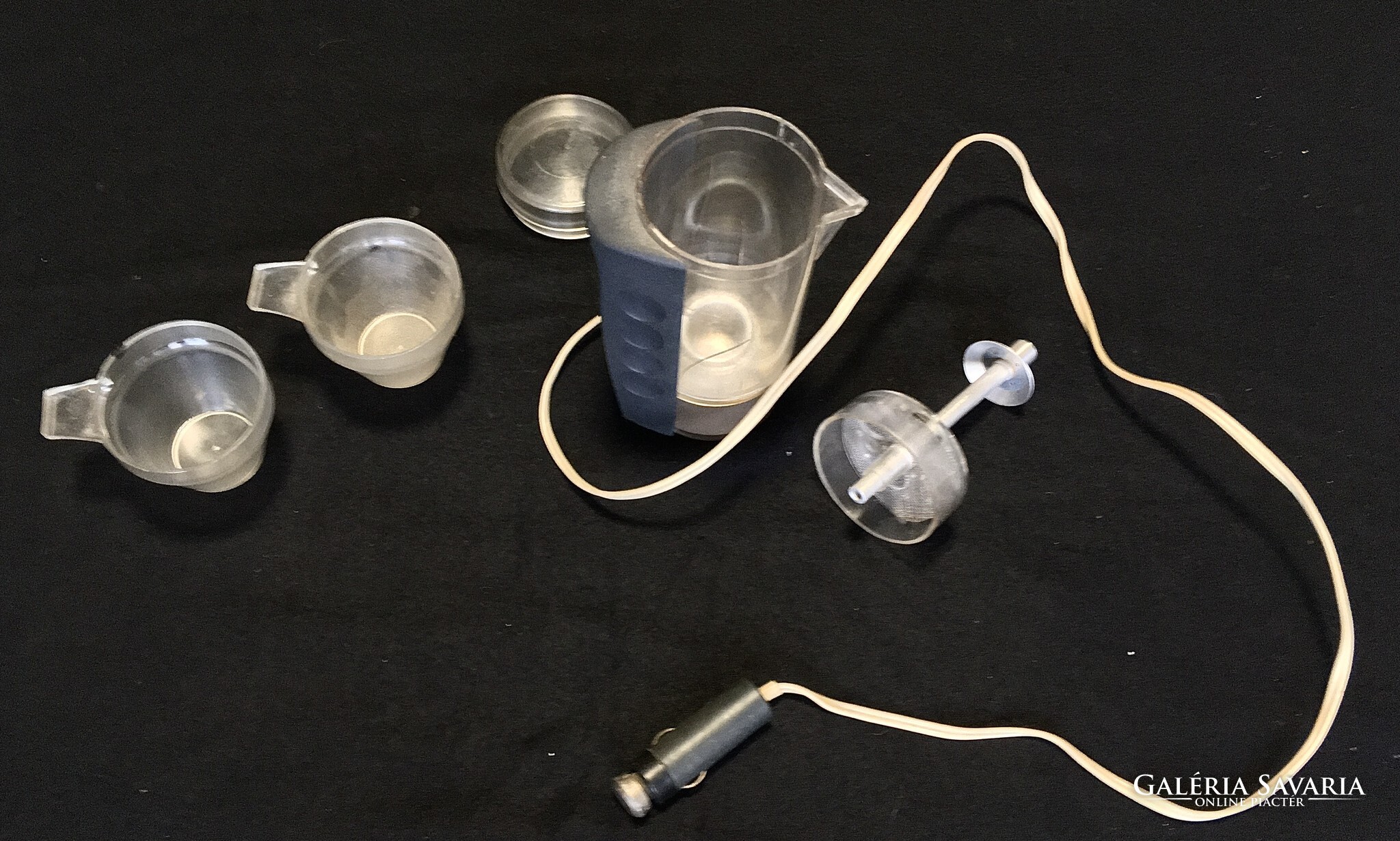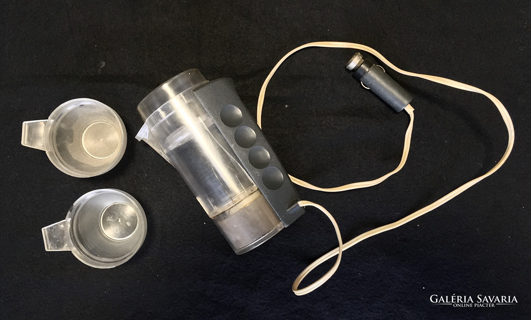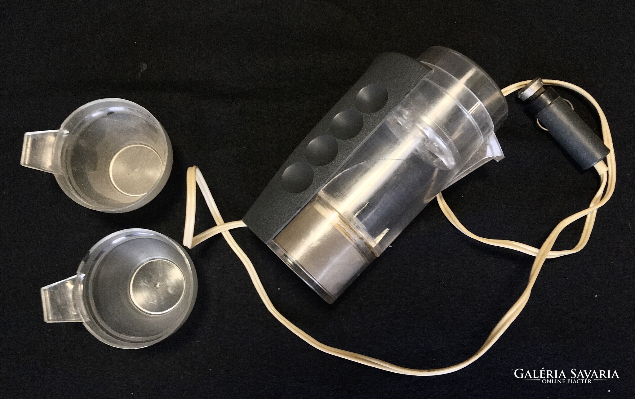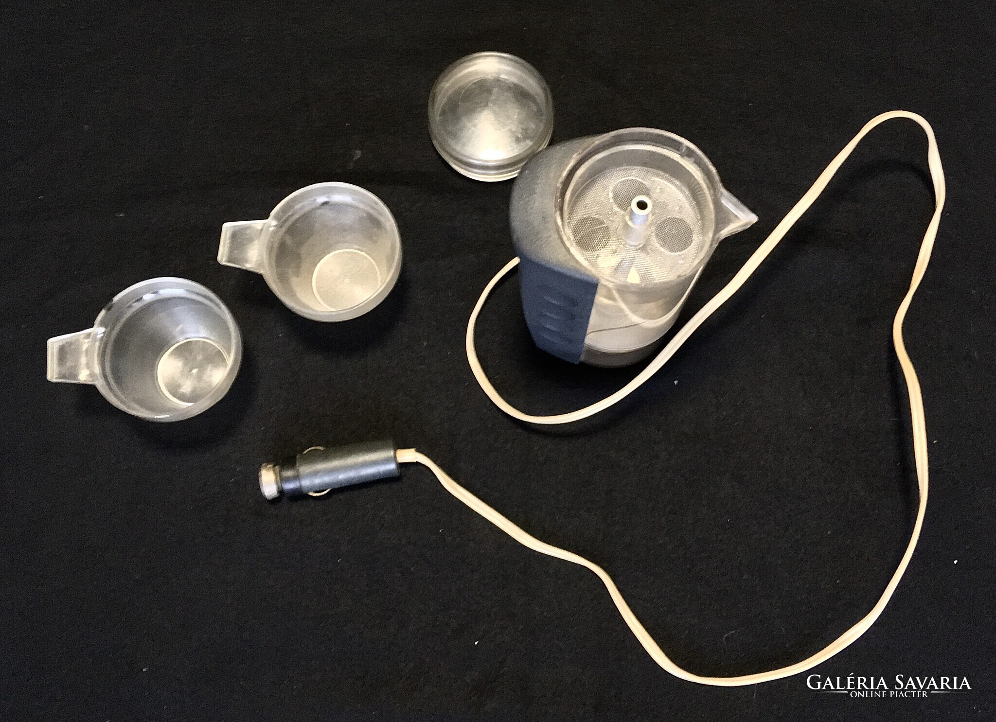 Régi és ritka Orosz autós kotyogós kávéfőző, ami szivargyújtóról működött. A képeken ( nagyítható ) látható teljes szett csészékkel , a fellelt állapotban eladó ! Retro gyűjtői darab! Postán maradó sima csomagként a postaköltség csak 1500 Ft!