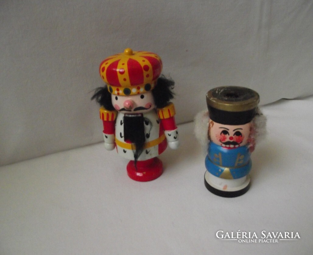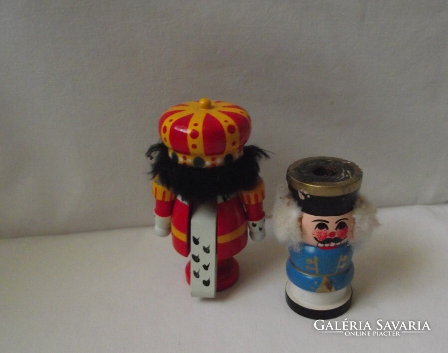 Fából készült diótörő figura,és gyertyatartó,magasság 13-9cm.Van rajtuk festékhiány,és a gyertyatartón gyanta.