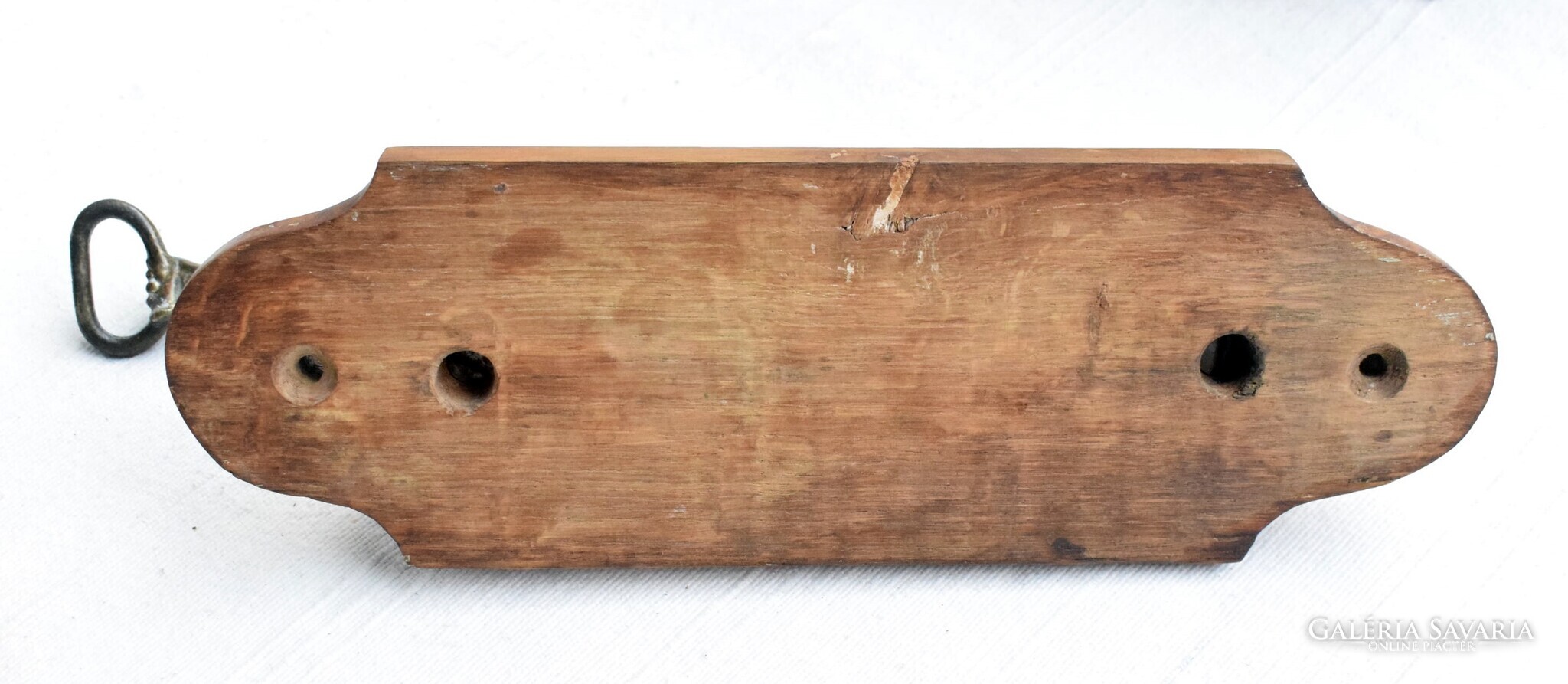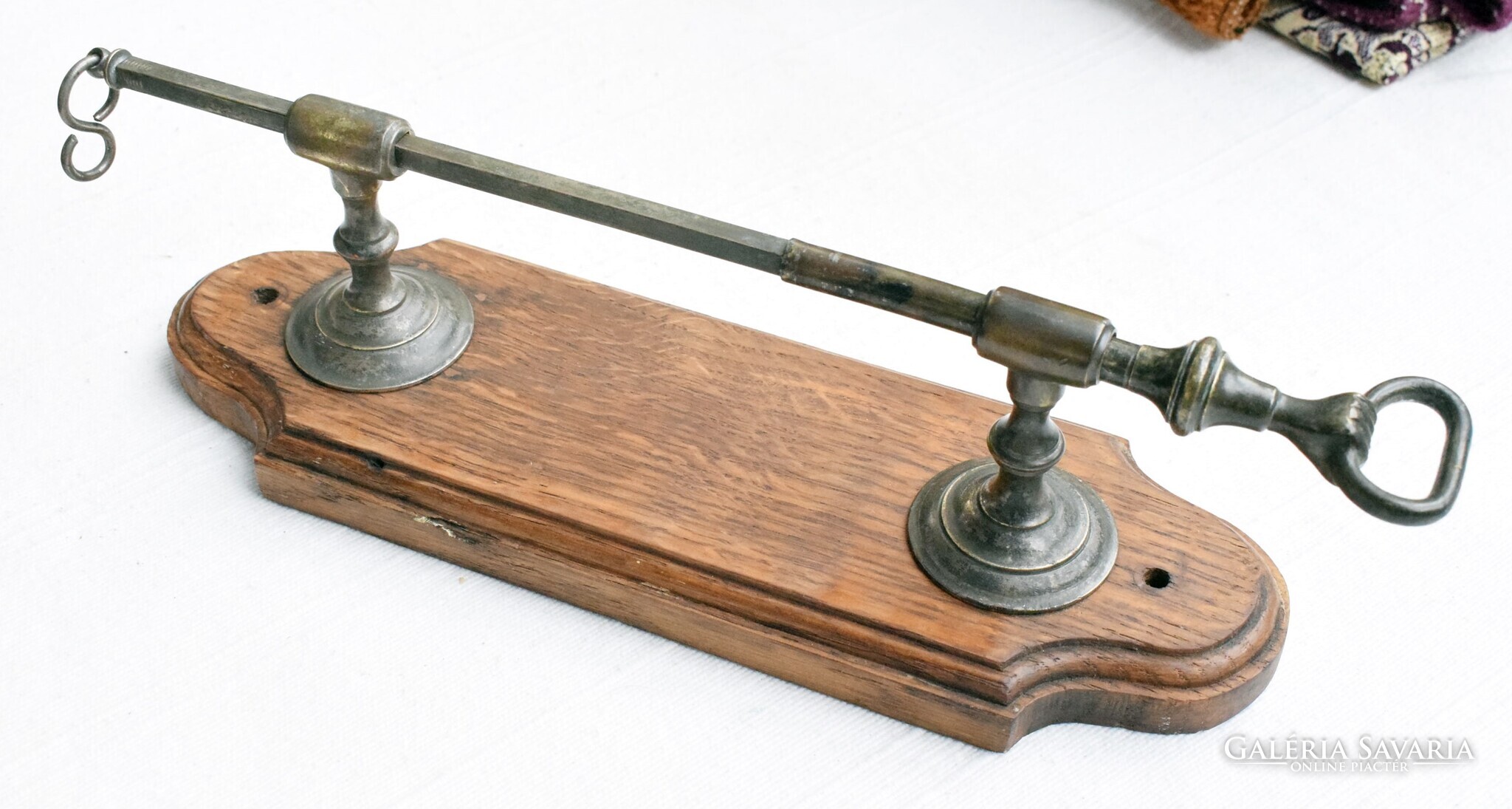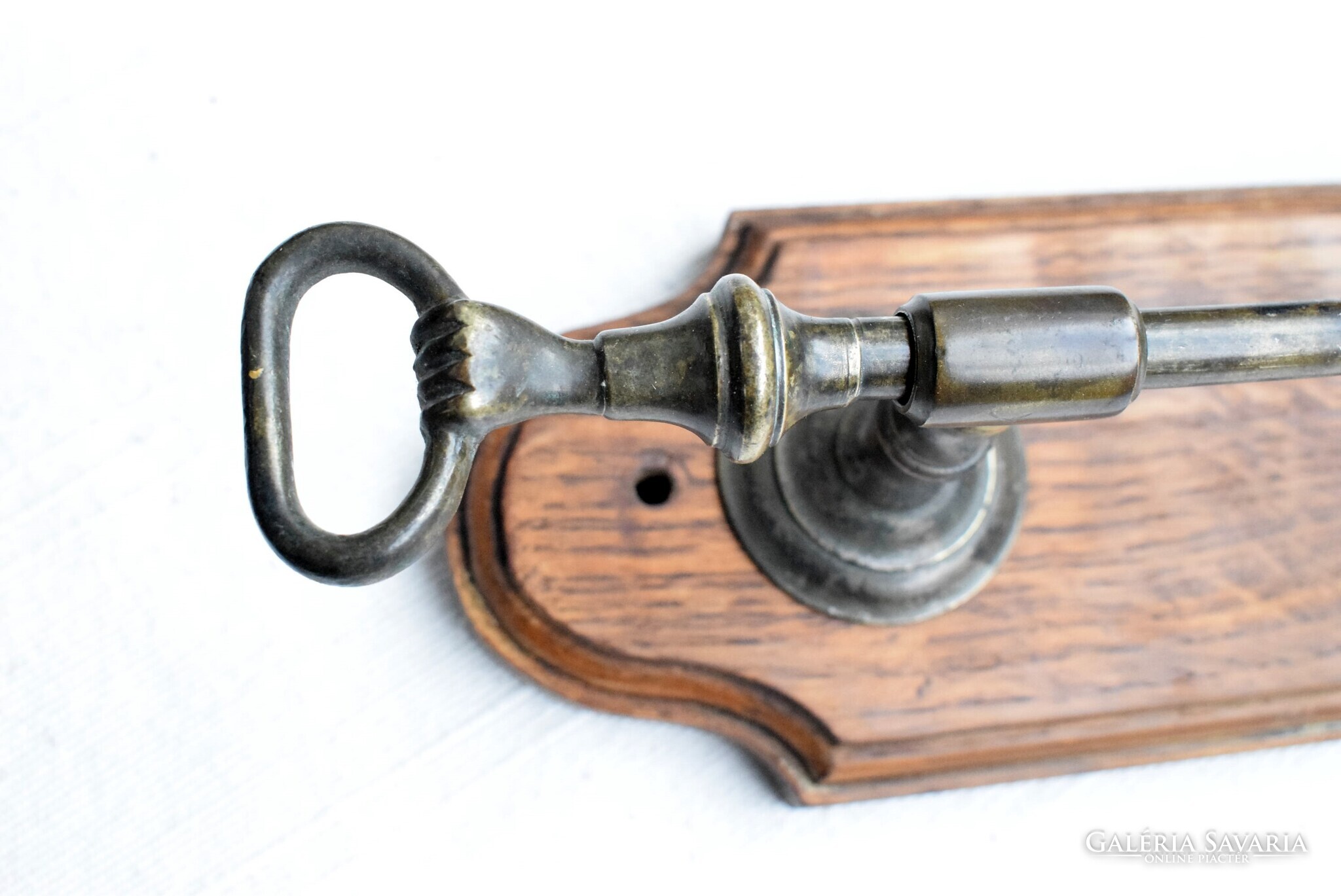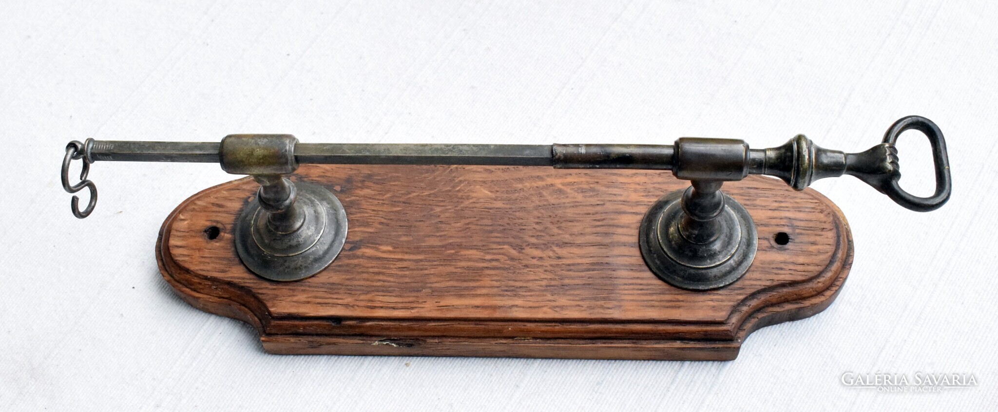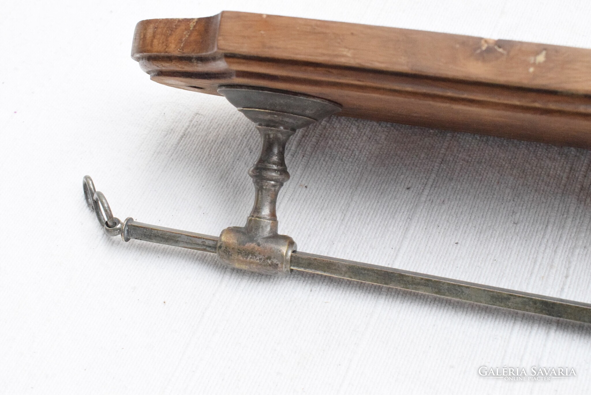 Bronz kéz forma antik Spitzer Salamon féle WC tartály lehúzó kar 33,5 x 7 cm + tölgyfa talpazat