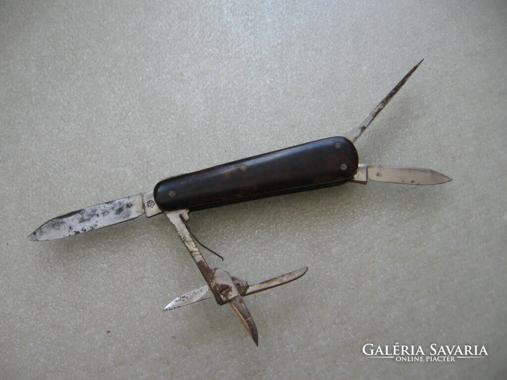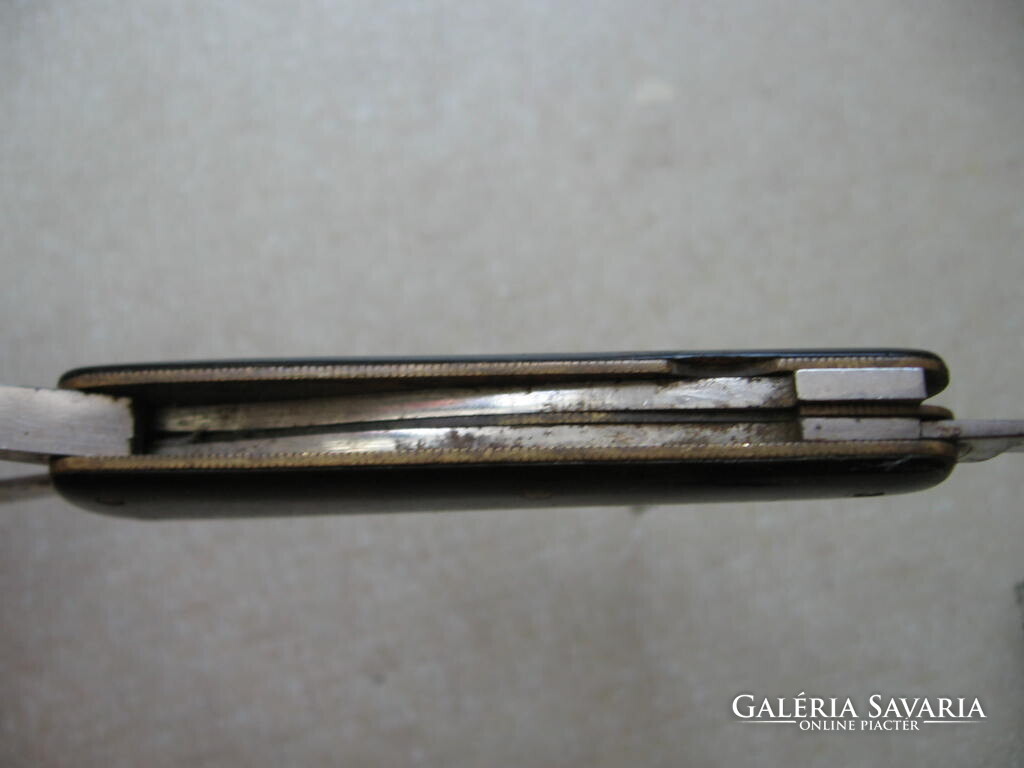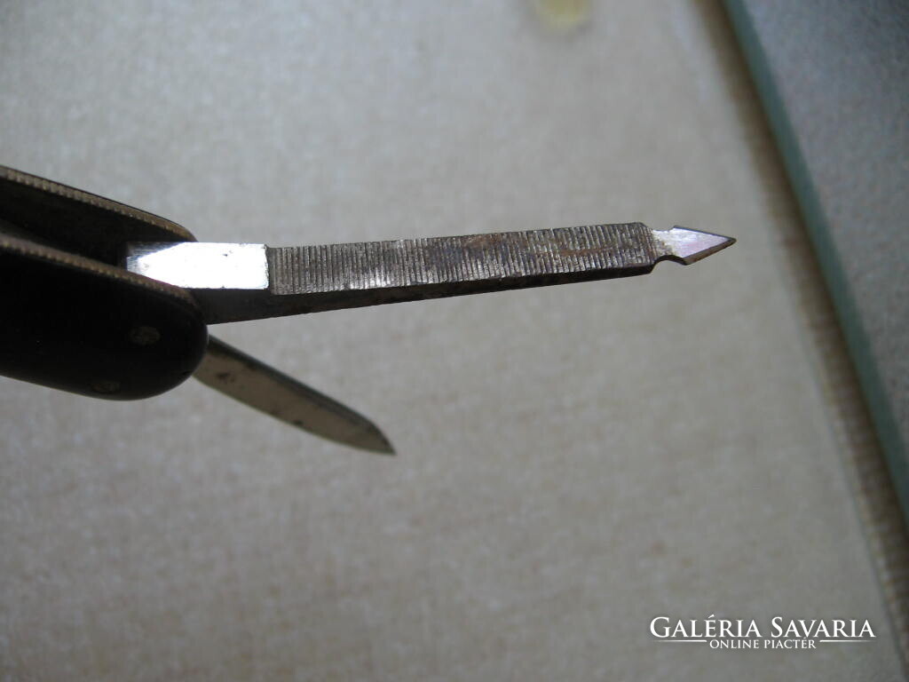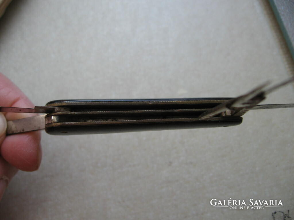 10 x 1,5 x 1 cm-es csukva . Apró jelzés, 2 kés, 1 olló, 1 reszelő .