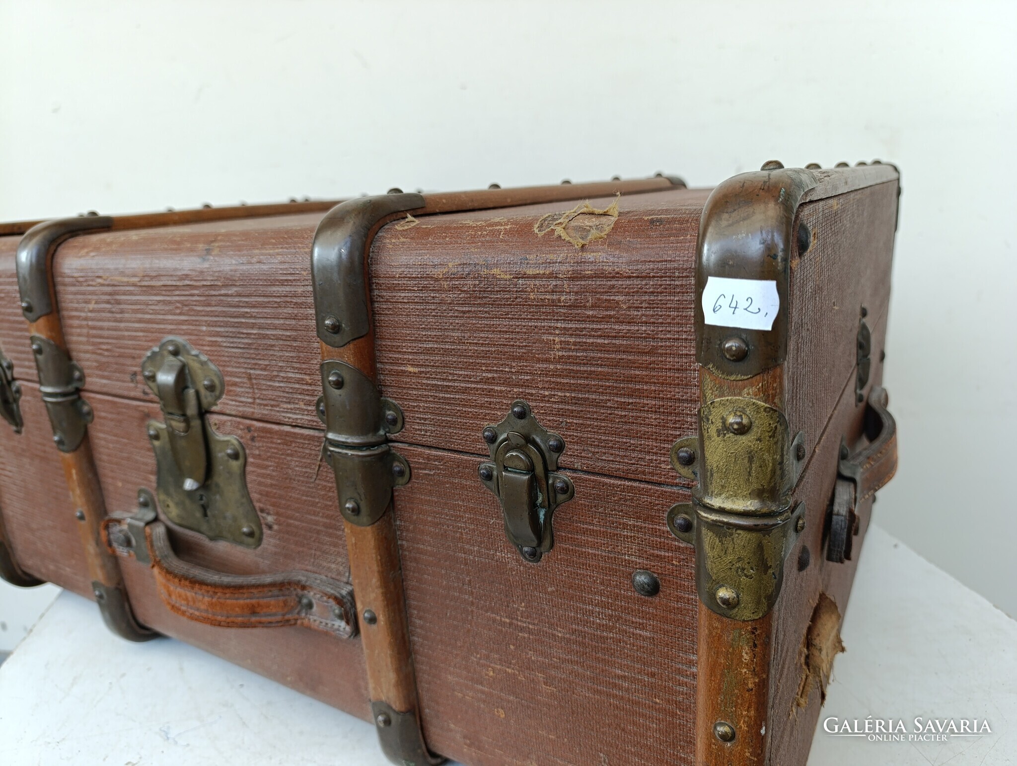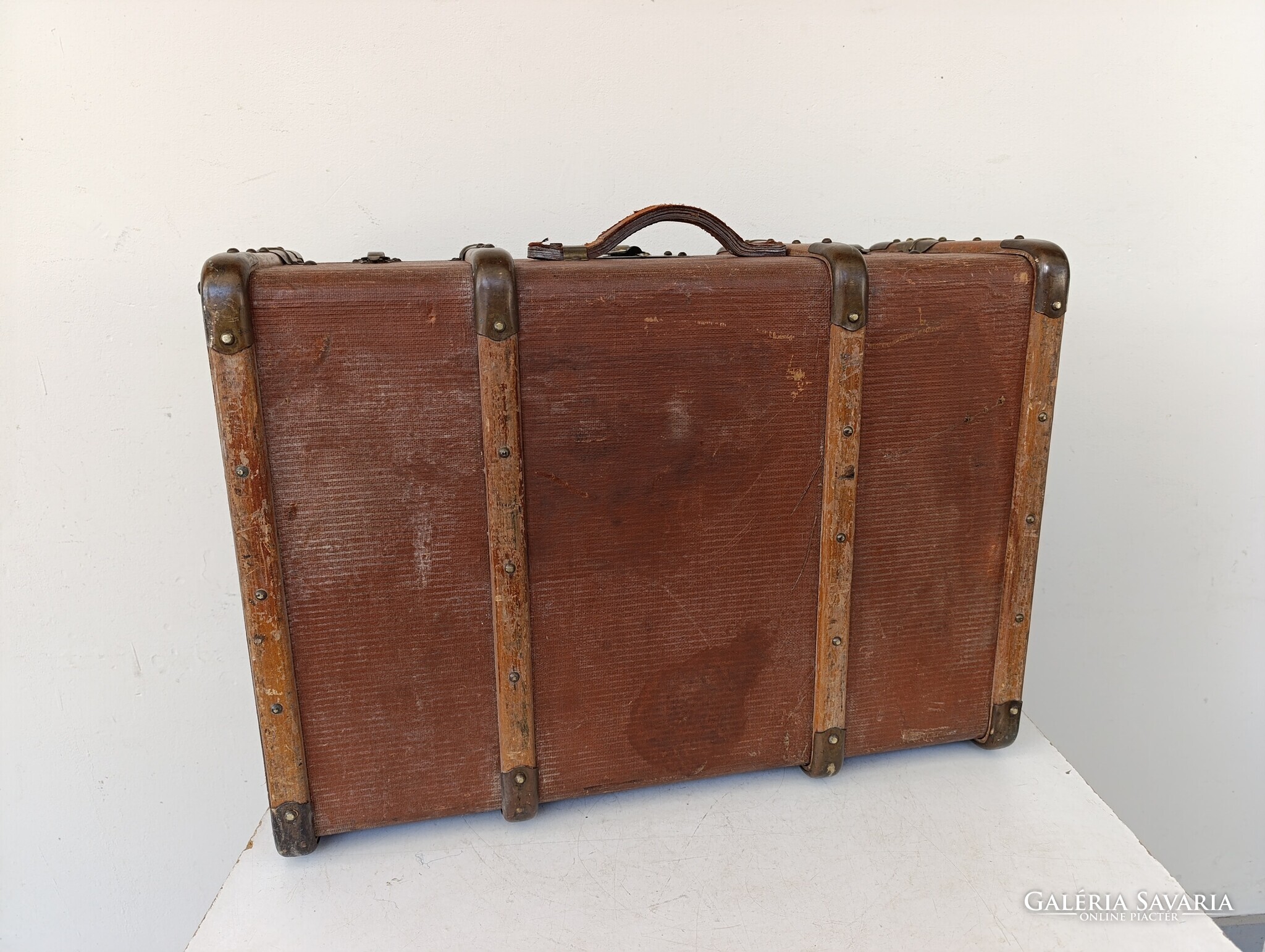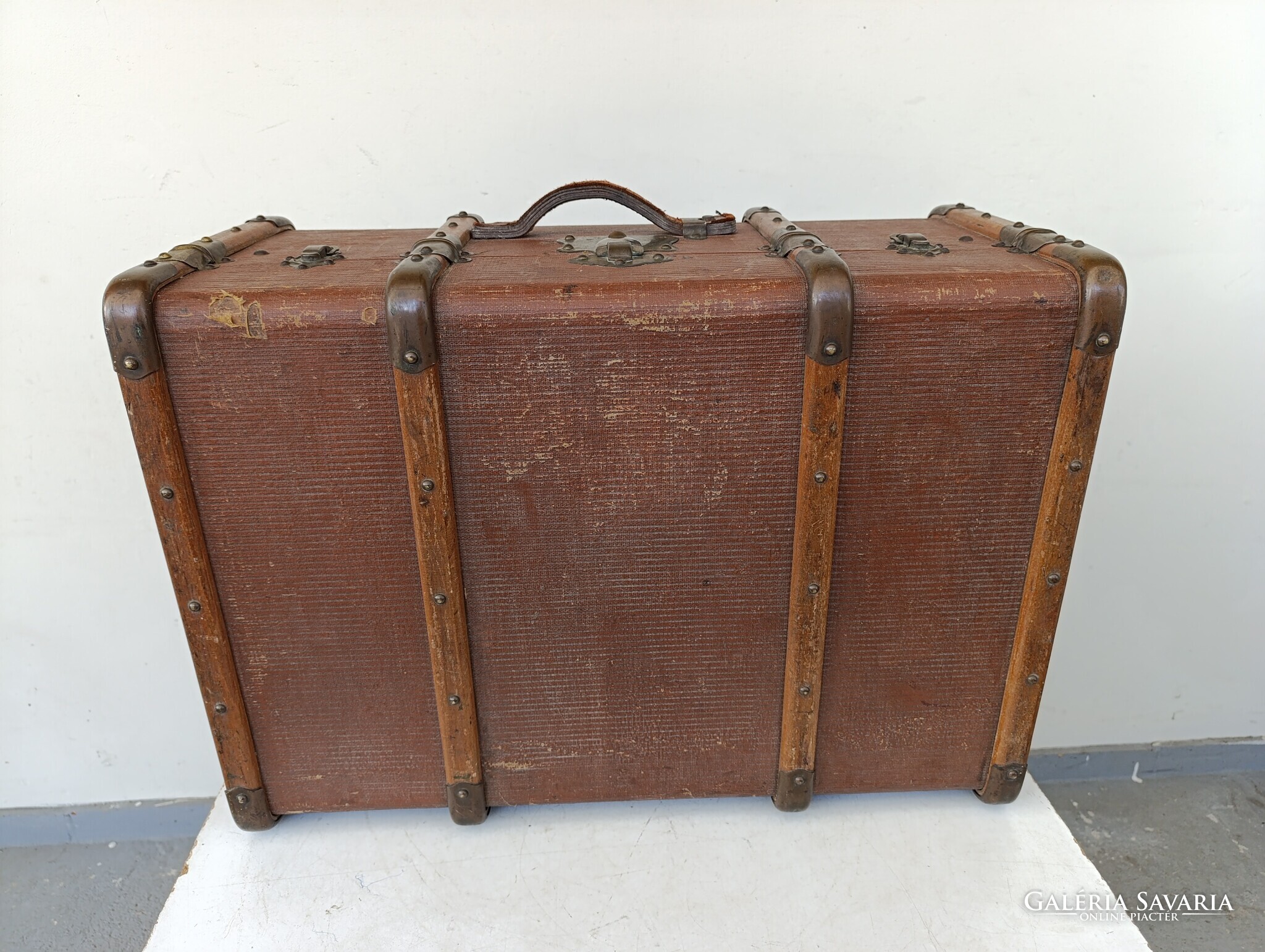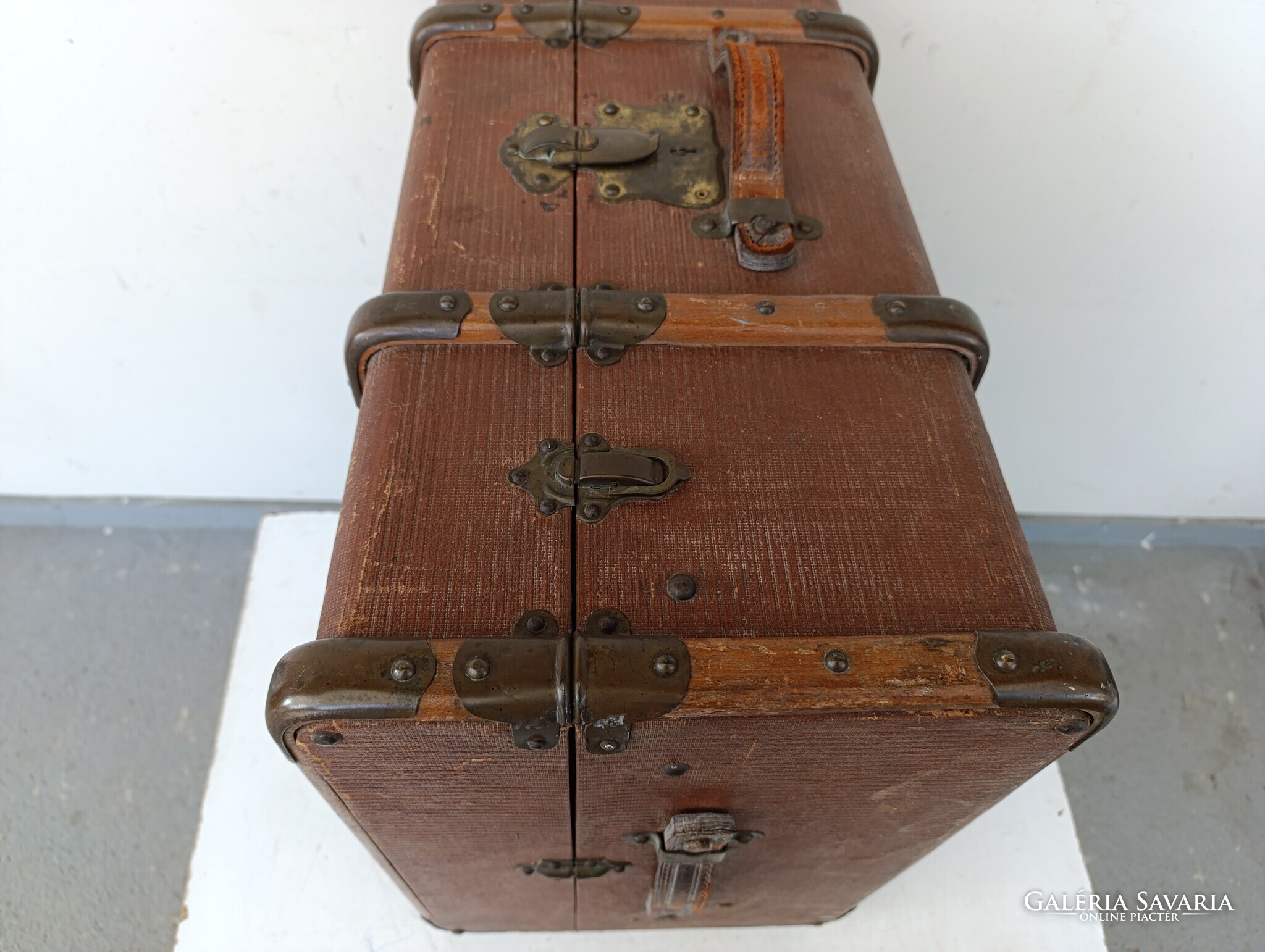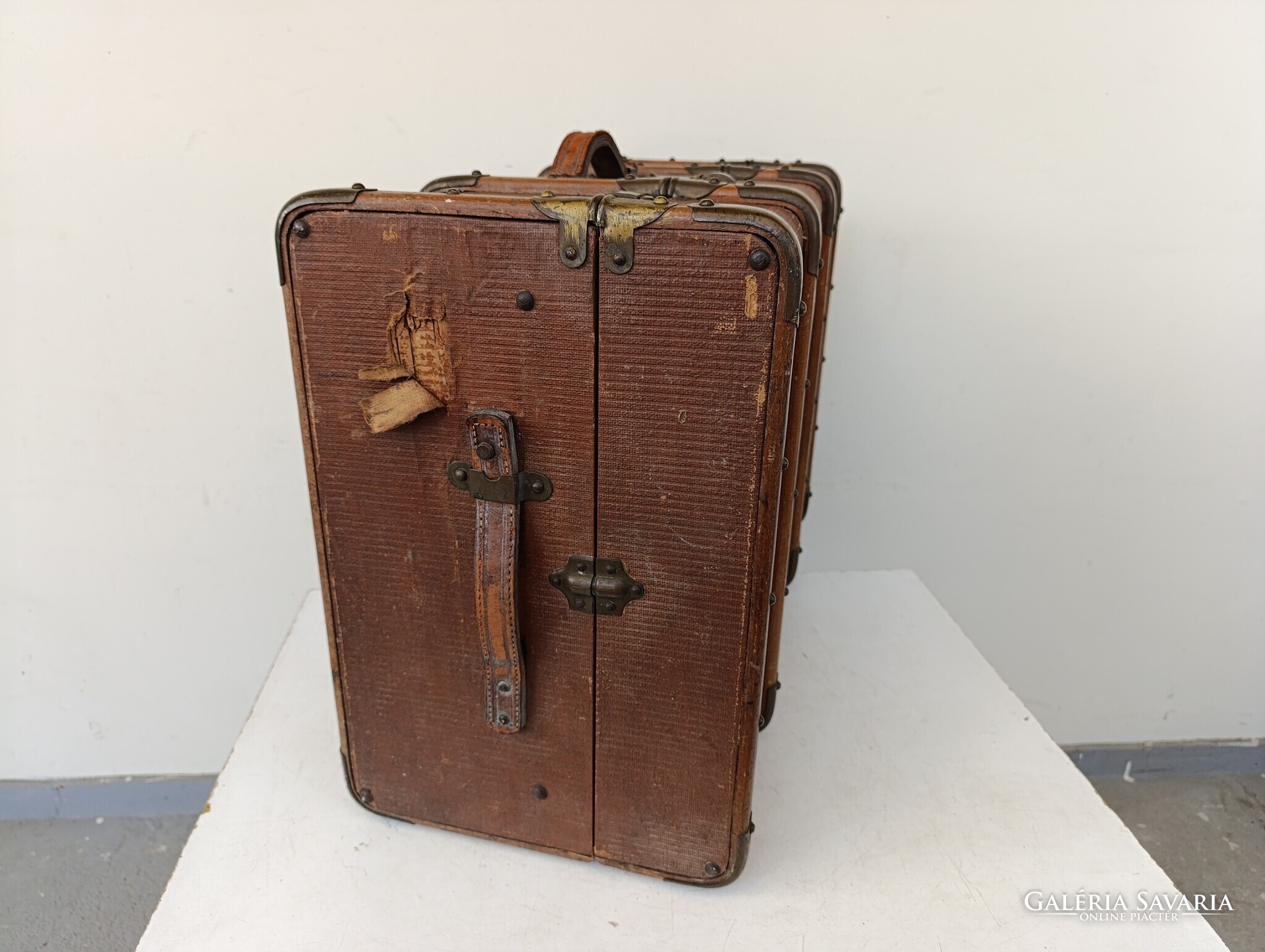 Antik koffer nagy ruhás bőrönd utazó láda jelmez film színház kellék 642 1688