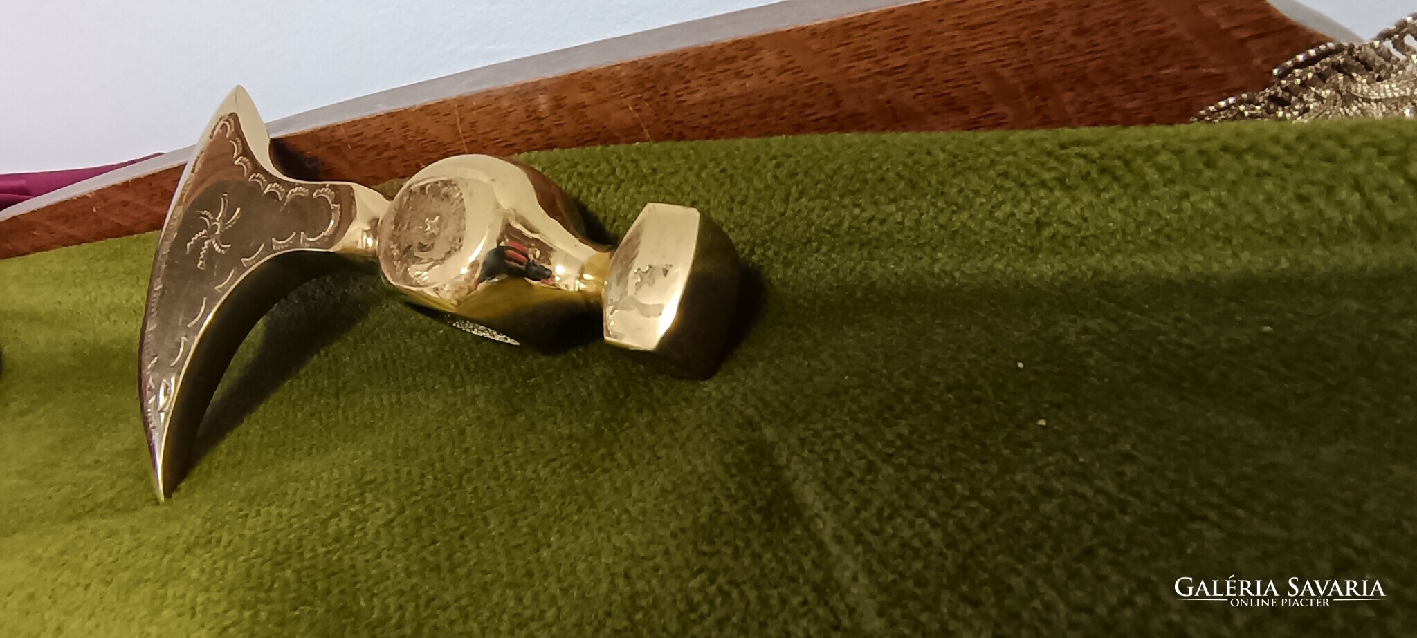 Fotókon látható fellelt szép állapotú réz fokos fej, "Szoboszlai" jelzéssel / Szoboszlai Gábor /. Annyira új állapotú, hogy nyél sosem volt a fejbe téve. Teljes hossza 13 cm, a hegyes végeknél 9.2 cm magas. 334 gramm. Személyesen is átvehető Debrecenben, vagy postázom házhoz, postán maradóra vagy mpl csomagautomatába. Utalás előtt kérem egyeztetni az aktuális szállítási díjat. BANKSZÁMLÁMRA KÉSZPÉNZES BEFIZETÉST A BANKBAN NEM FOGADOK, CSAK ÁTUTALÁST. Kata-s vállalkozóként csak magánszemélyeknek tudok számlát kiállítani.