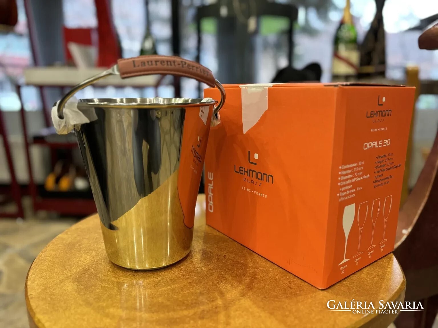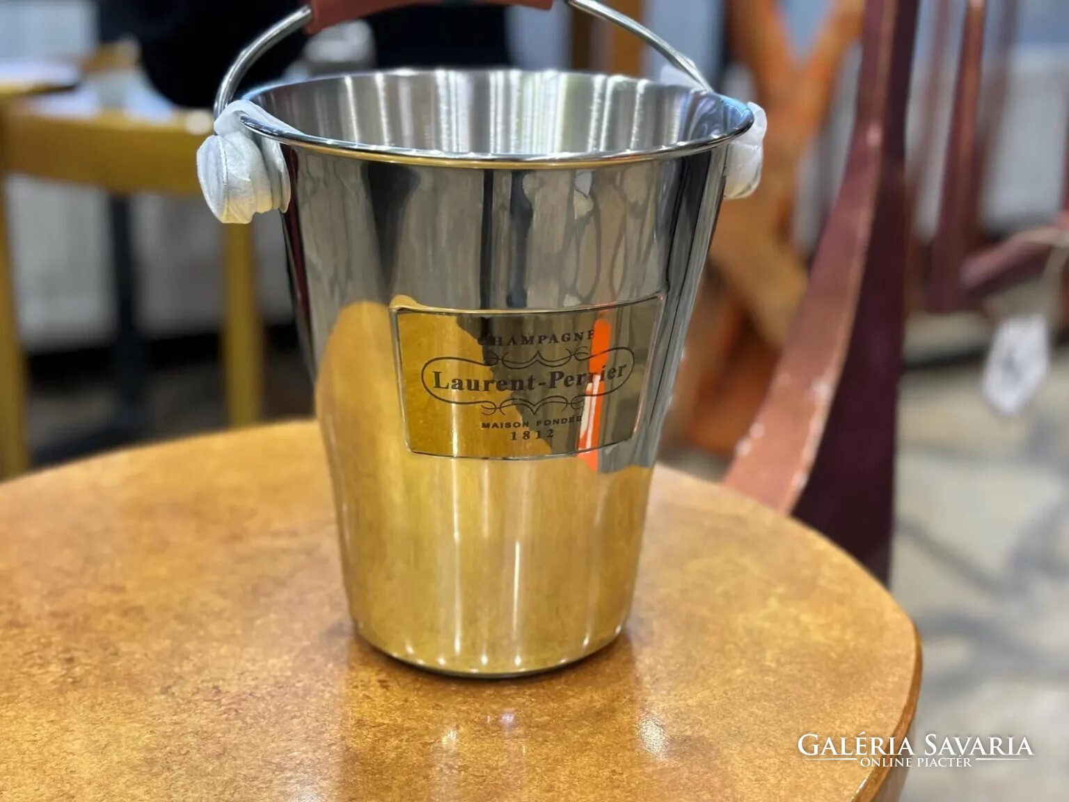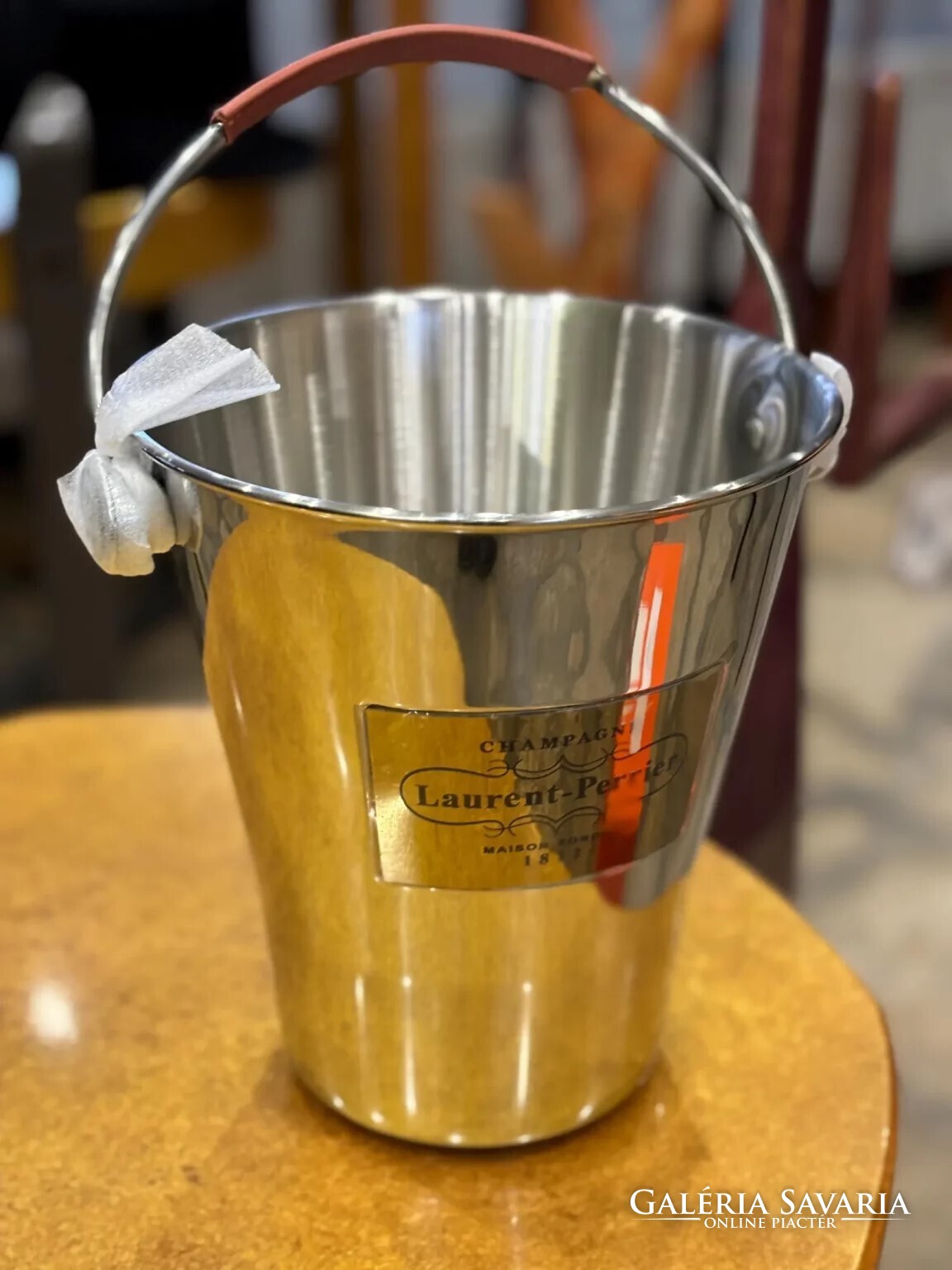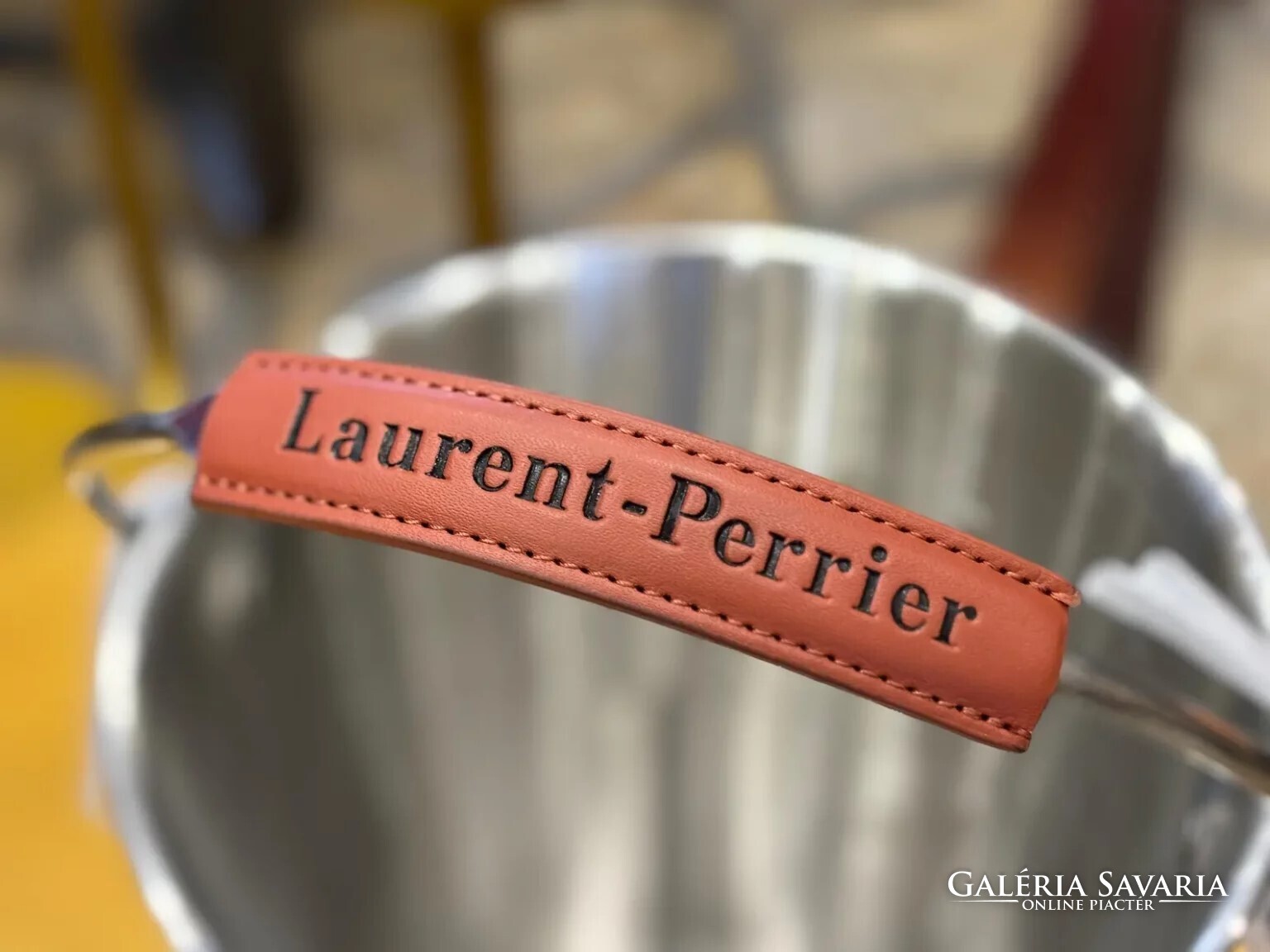– 1 db Laurent-Perrier rozsdamentes acél pezsgőhűtő veder bőrdíszítéssel, hordozható kivitelben