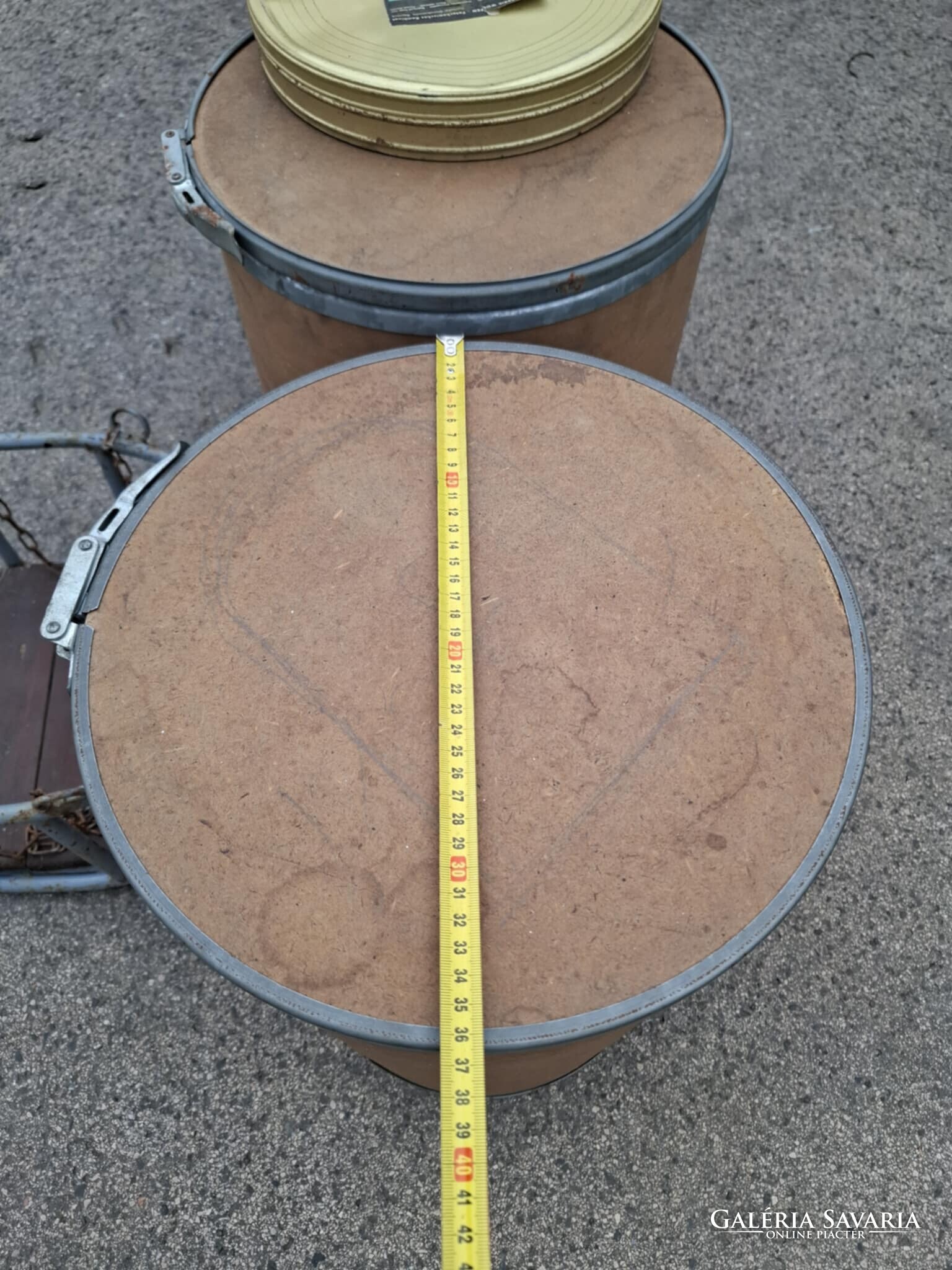 Régi, filmtekercs tároló dobozok, fém abroncs, Budapest felirat, ár/ darab