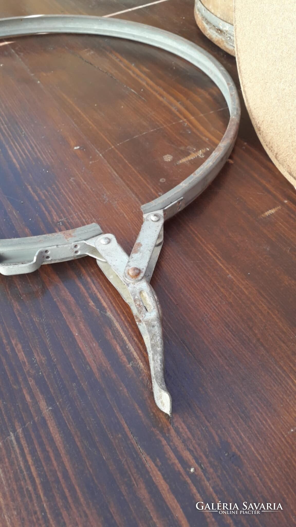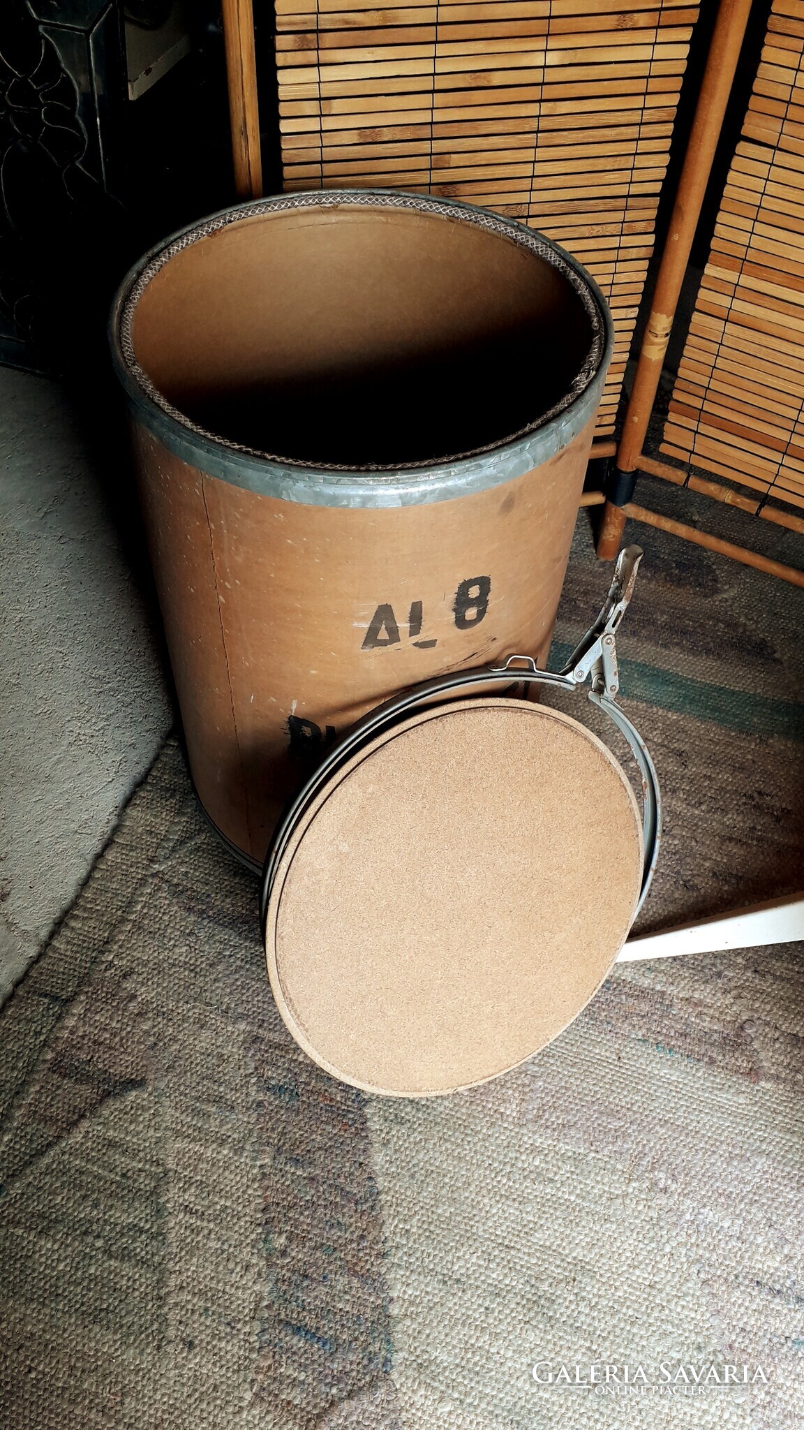 Alul és felül fém abroncs, a felső nyitható, így vehető le a teteje.