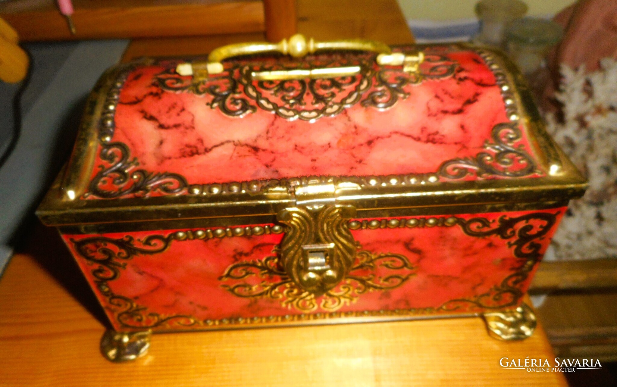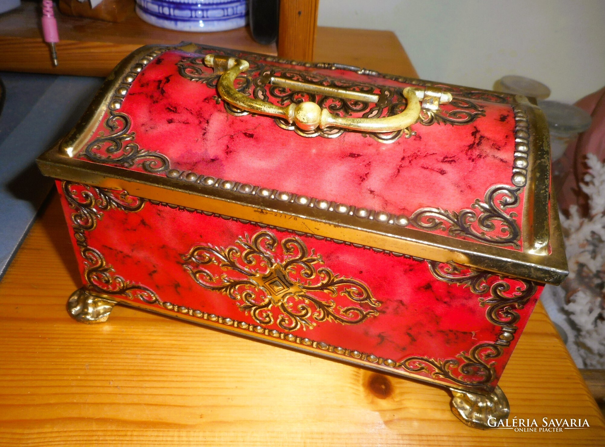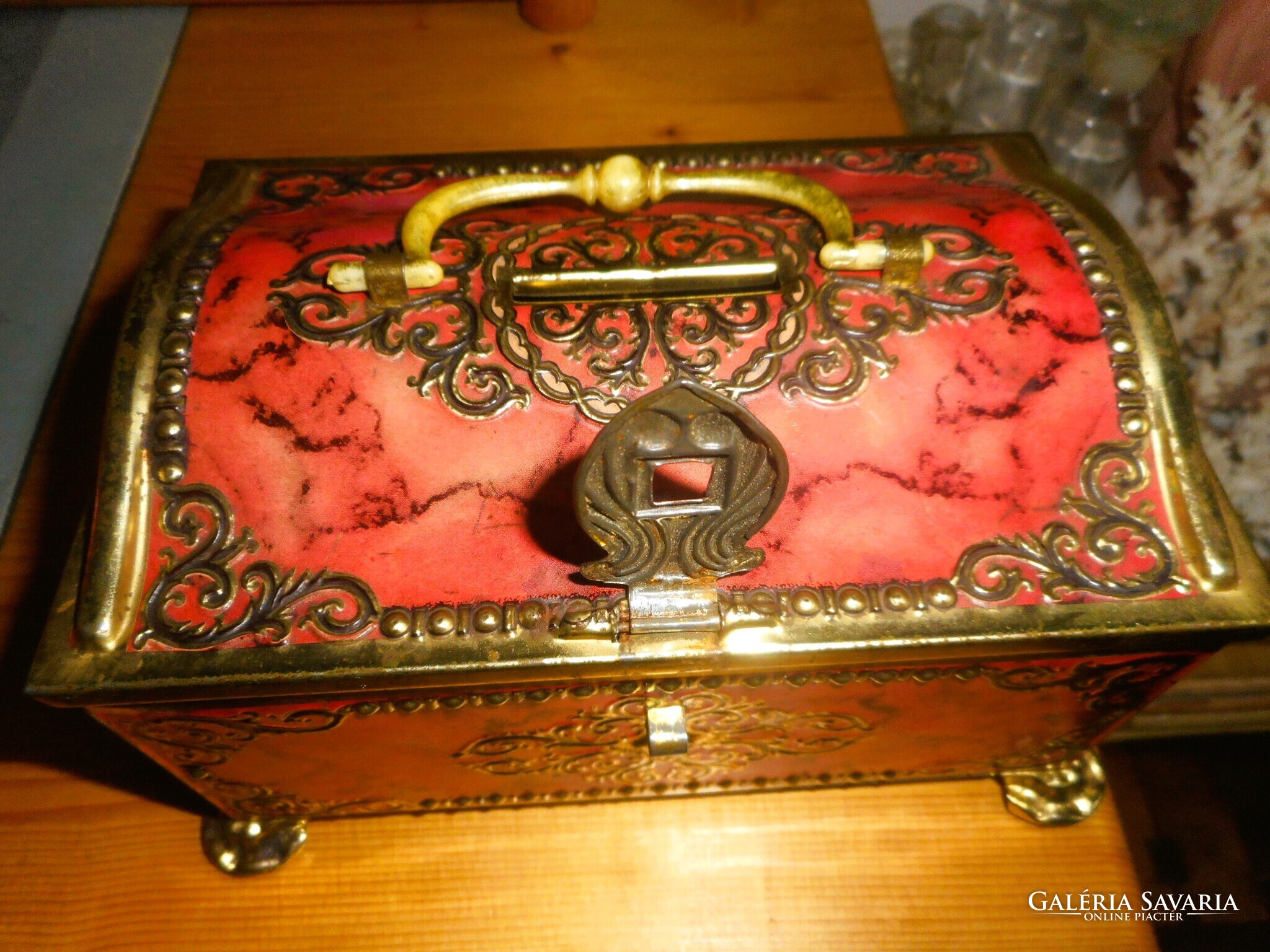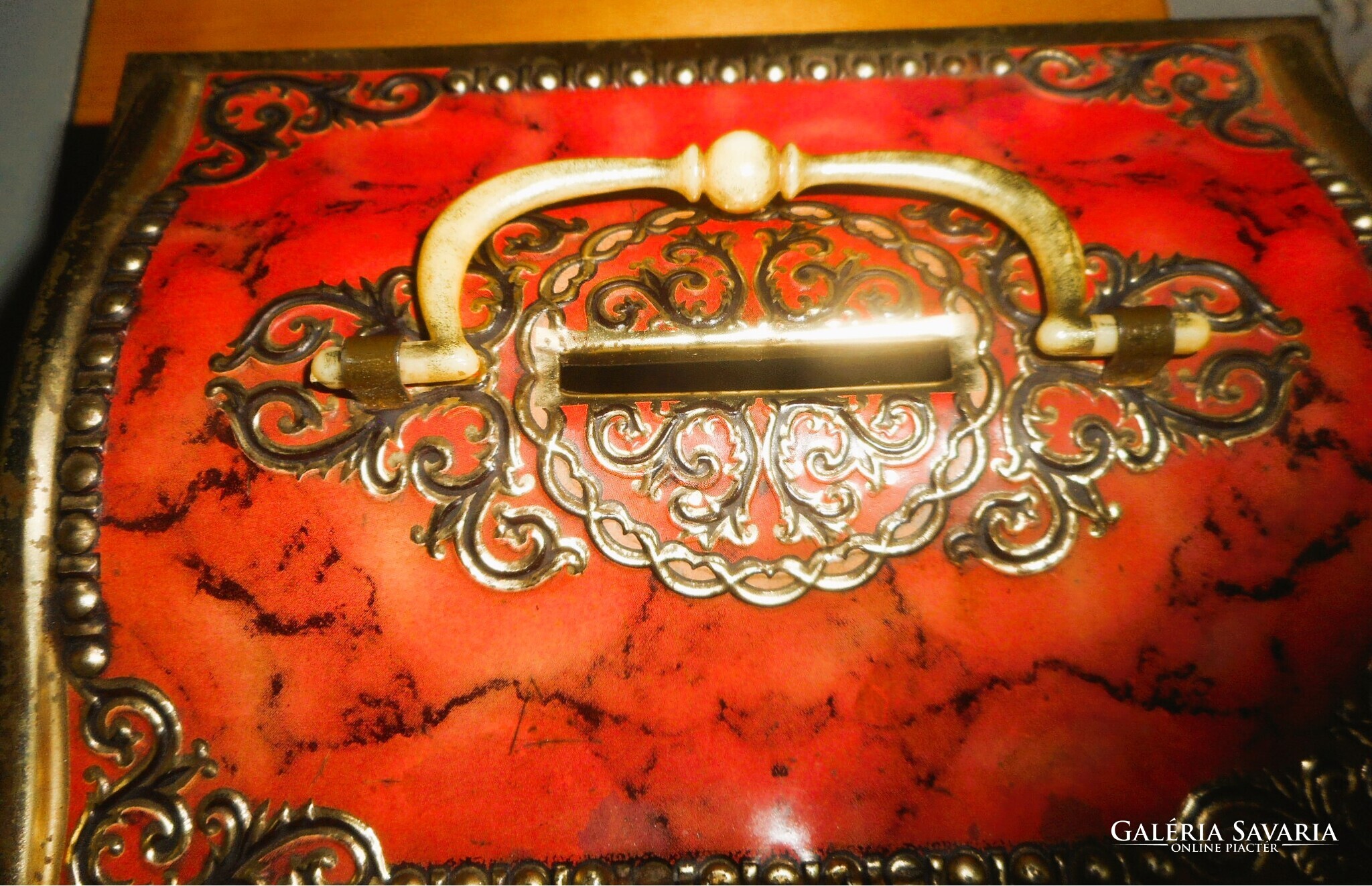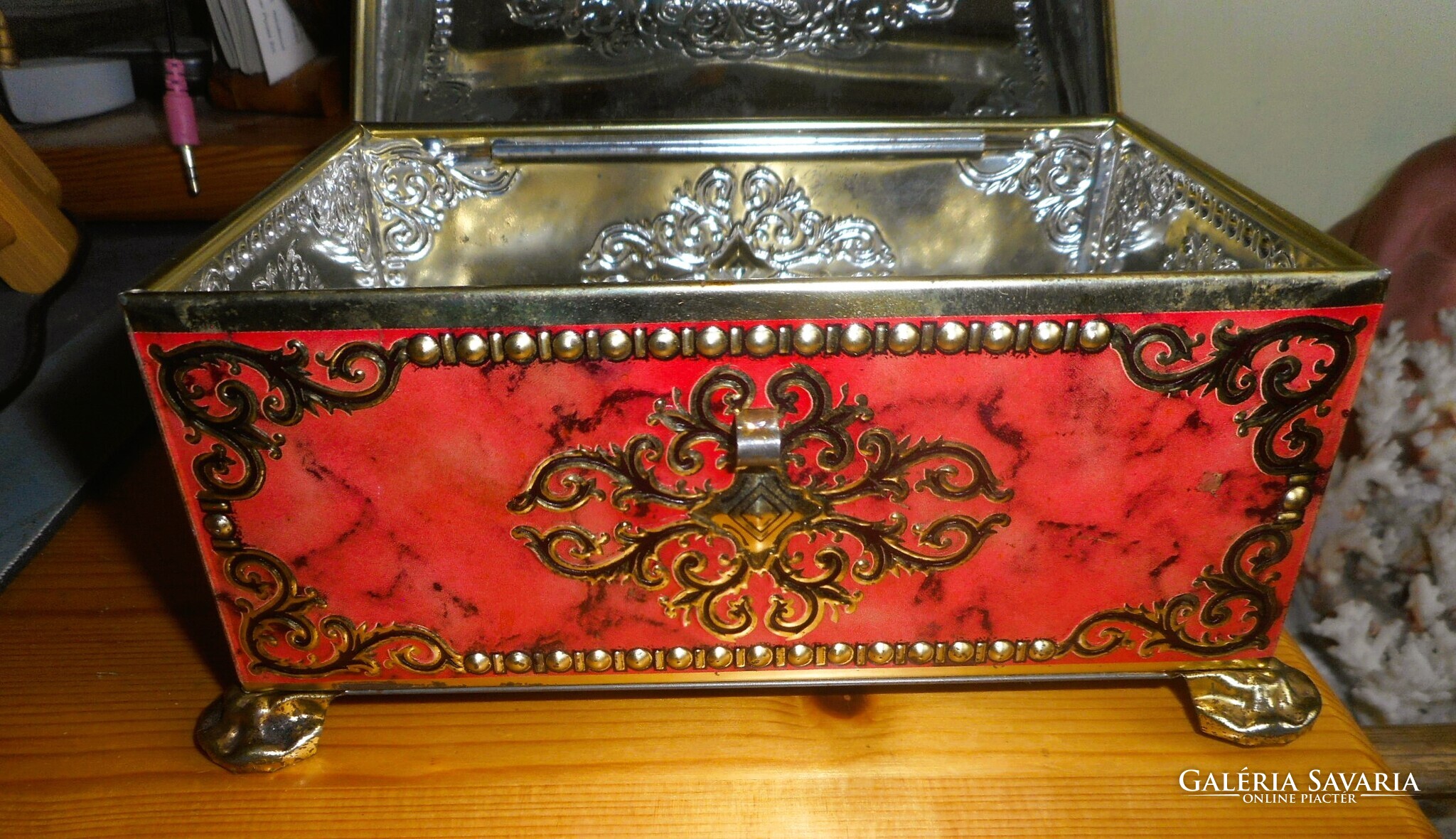 Antik fémdoboz persely (festett, dombornyomott)