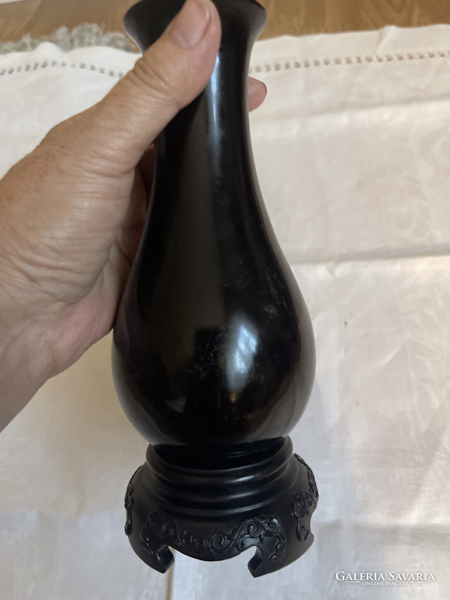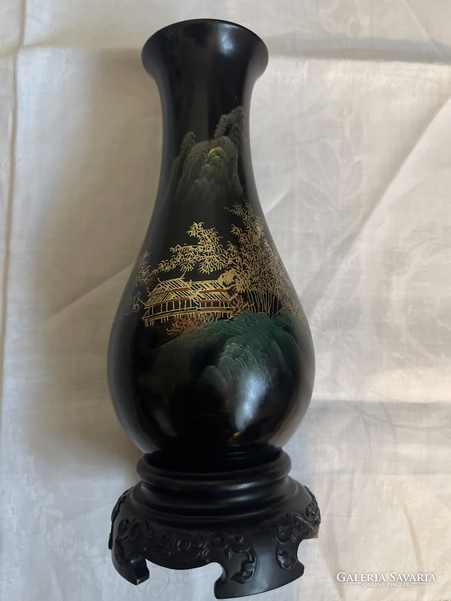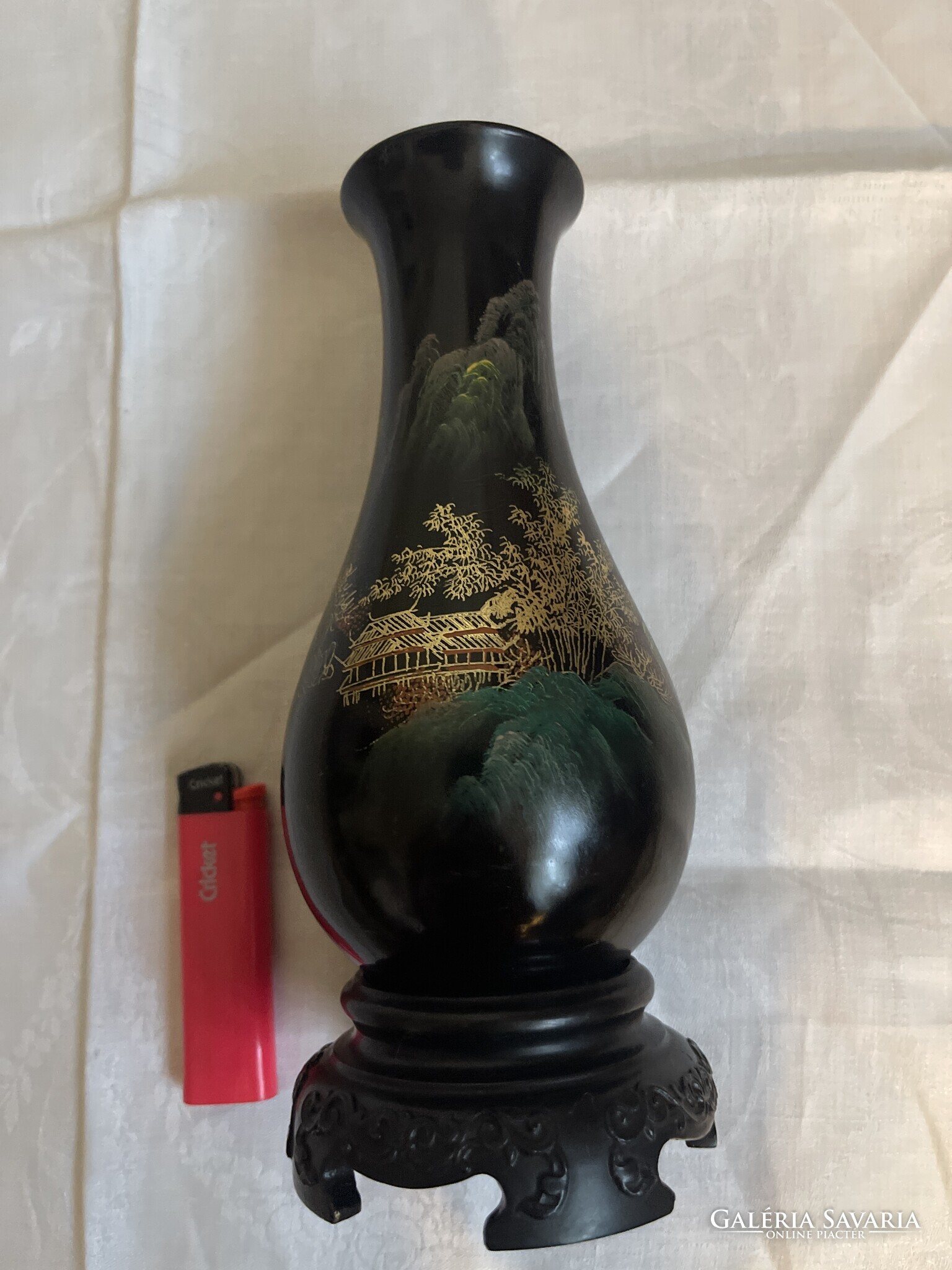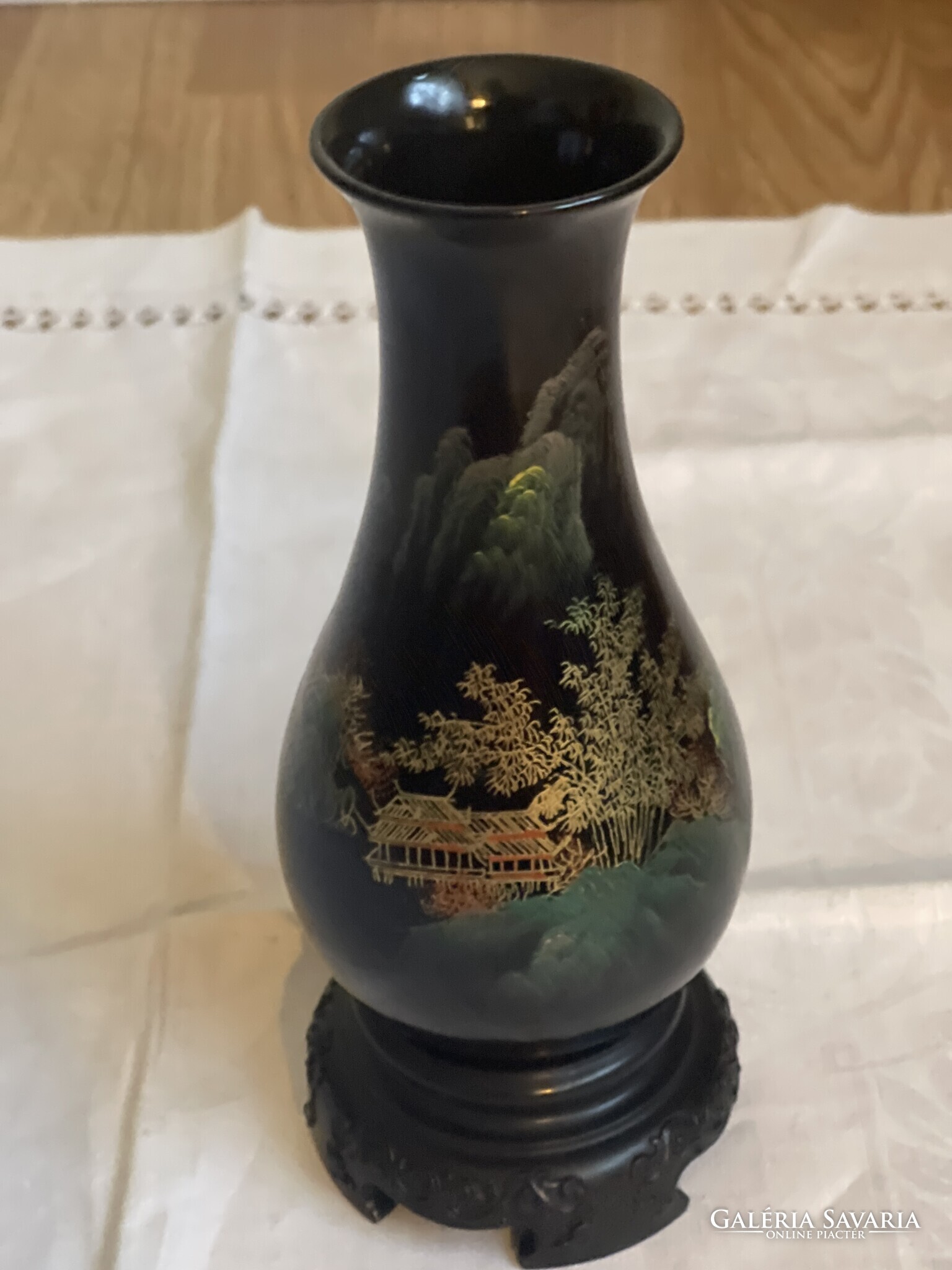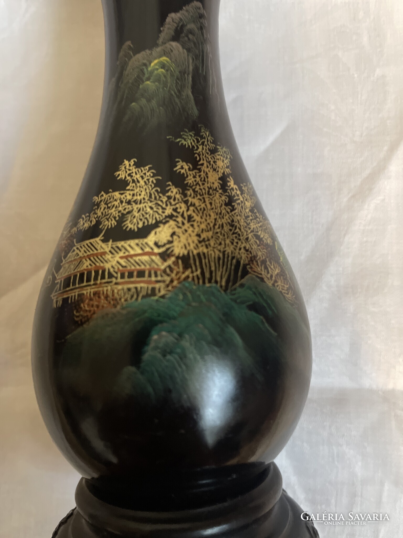 Nagyonszép Kinai kézzel festett lakk fa váza, nagy.