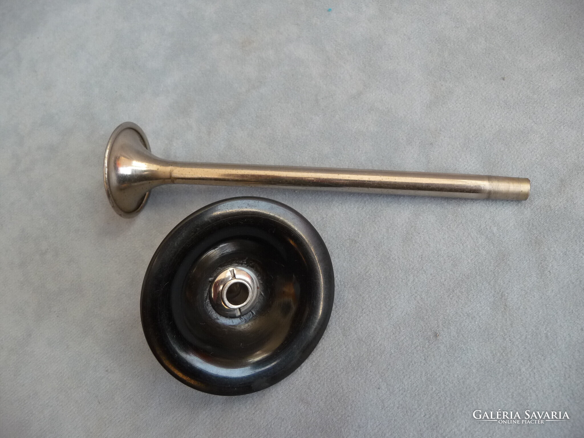 szép állapotú bakelit és nikkelezett réz orvosi sztetoszkóp,szétszedhető hordozható változat,1920 as 30 as évek,15 cm