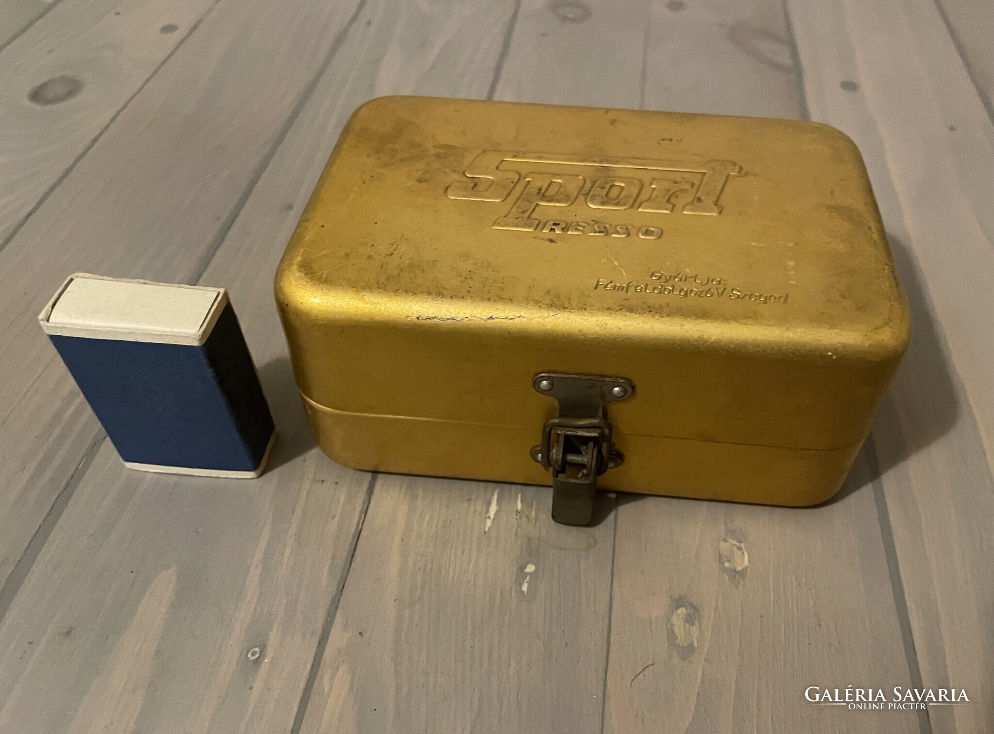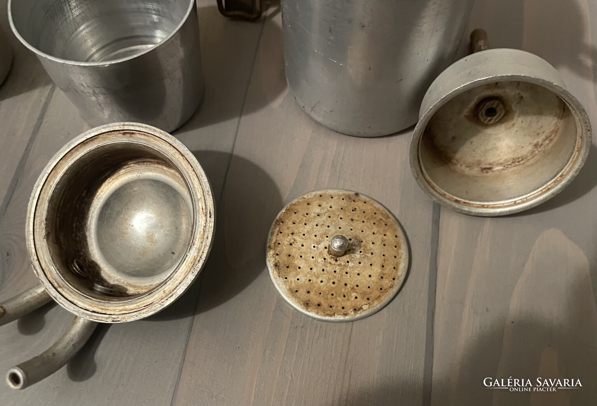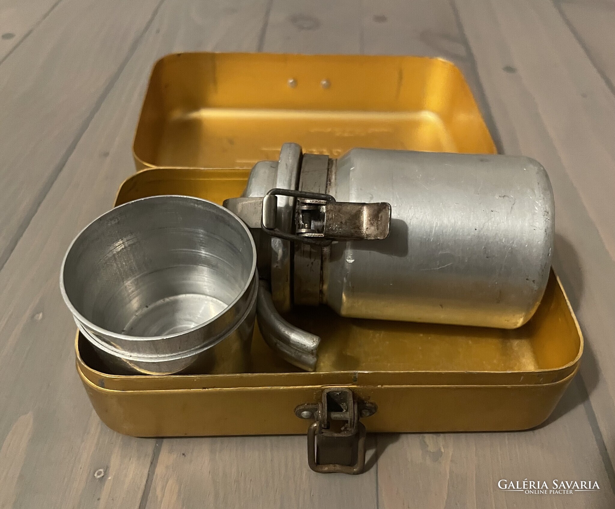 Két személyes Sport Presso kemping kávés készlet képek szerinti hiányos állapotban. A kávéfőzőből hiányzik a tömítés és sz alsó szűrő, egy alapos tisztítás ráfér. A tartozékokból csak a két pohár van meg. Doboz mérete: 14 x 9 x 6 cm.