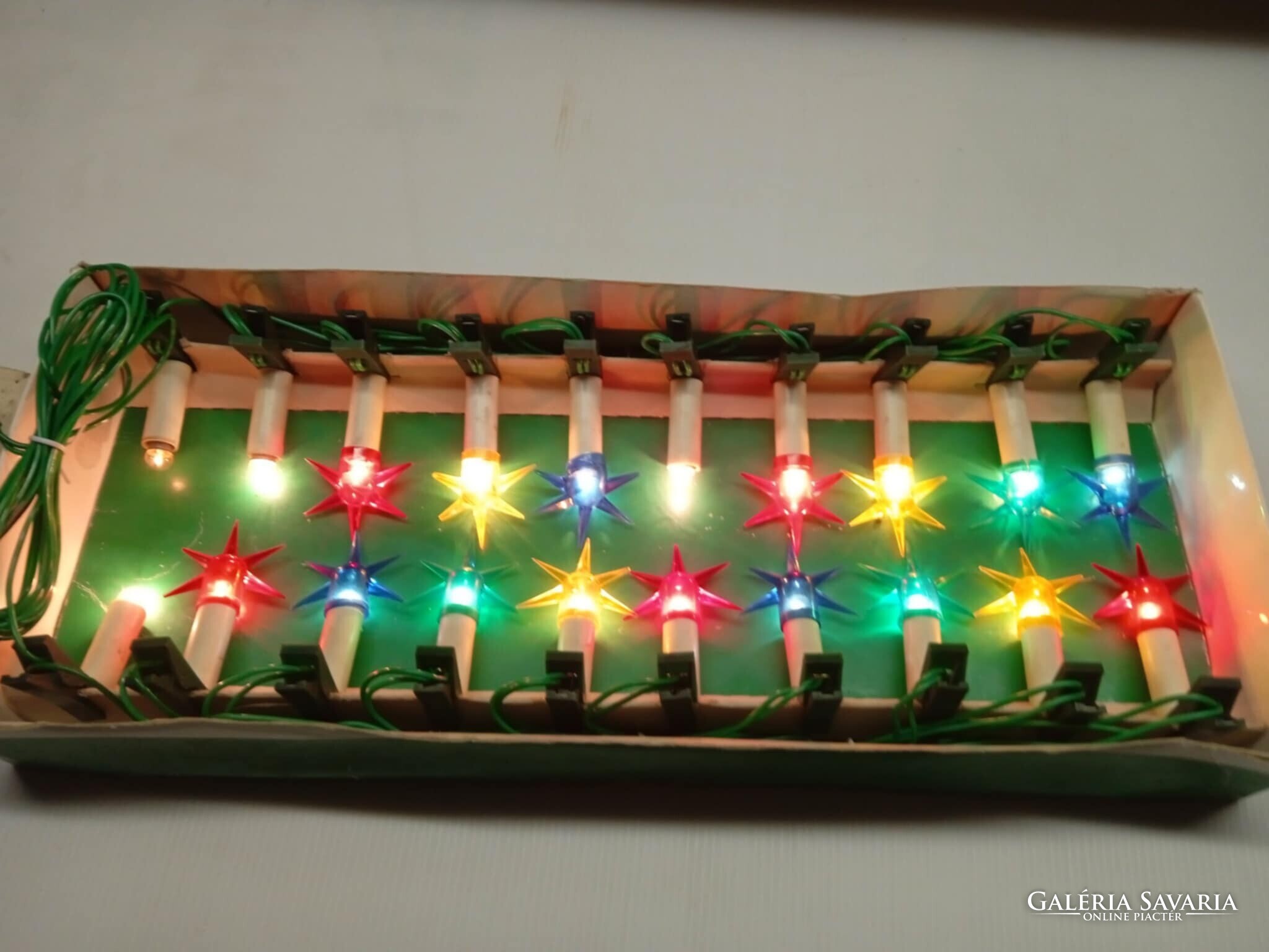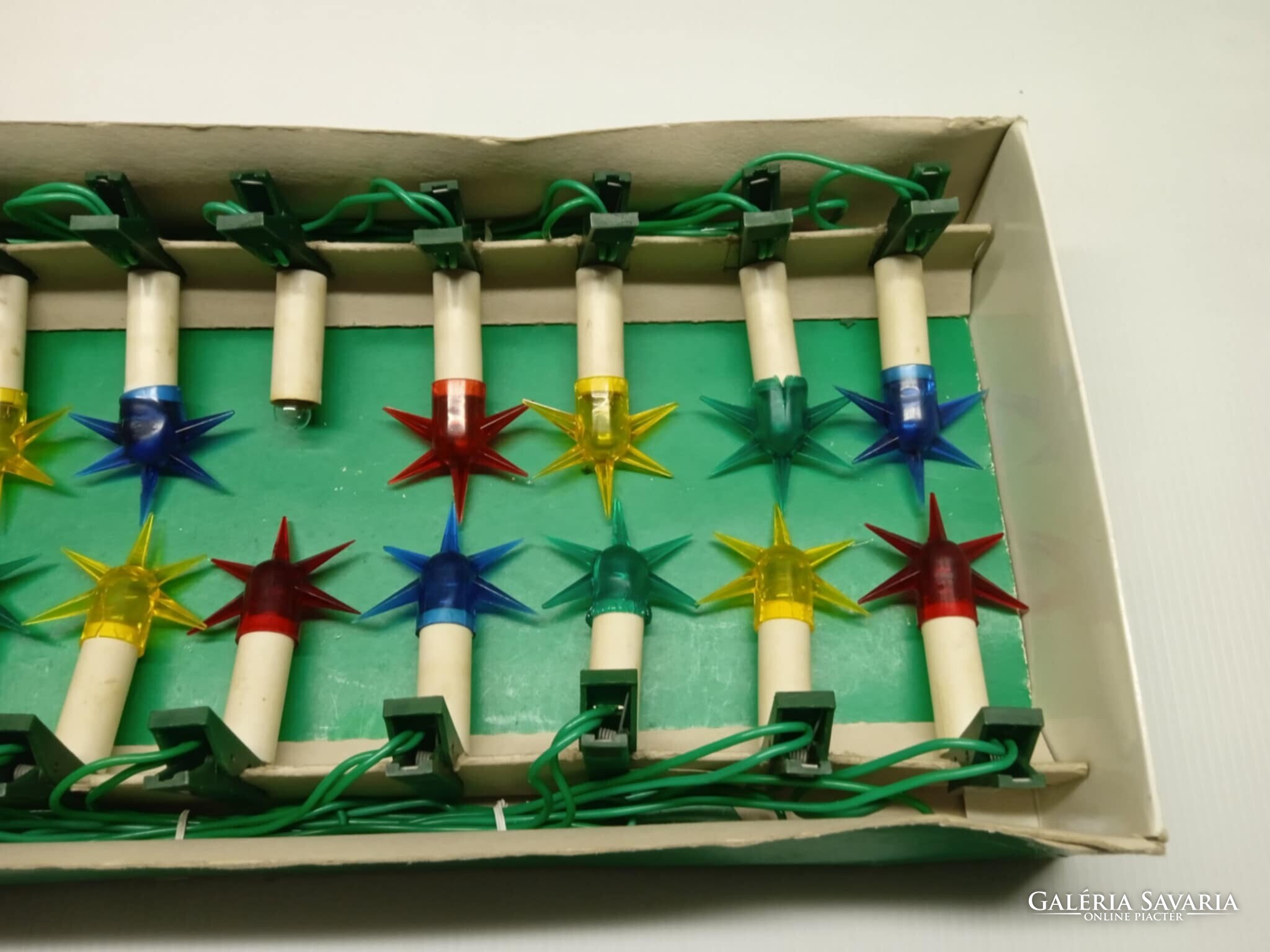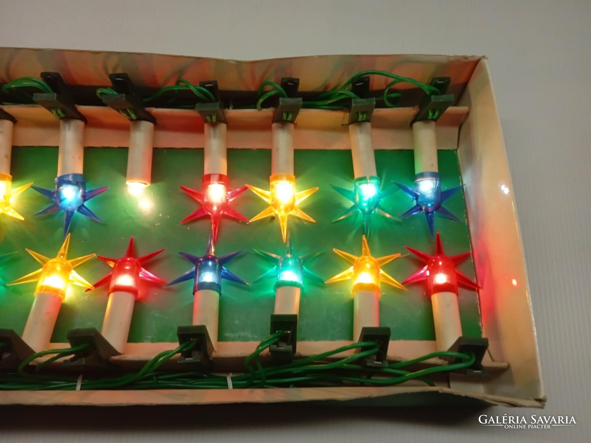 Régi, Magyar gyártmányú, szép állapotú, hagyományos csíptethető karácsonyfa izzó sor.