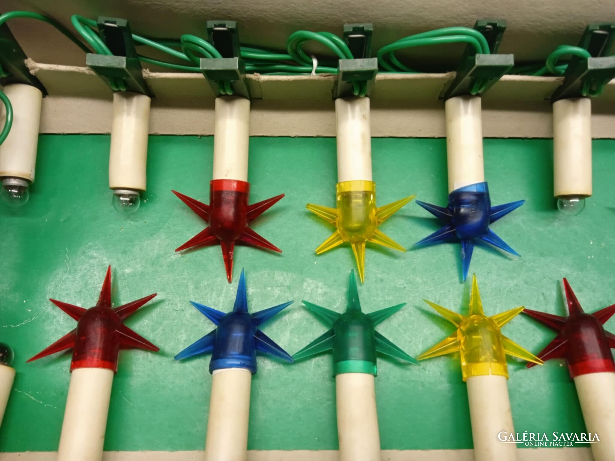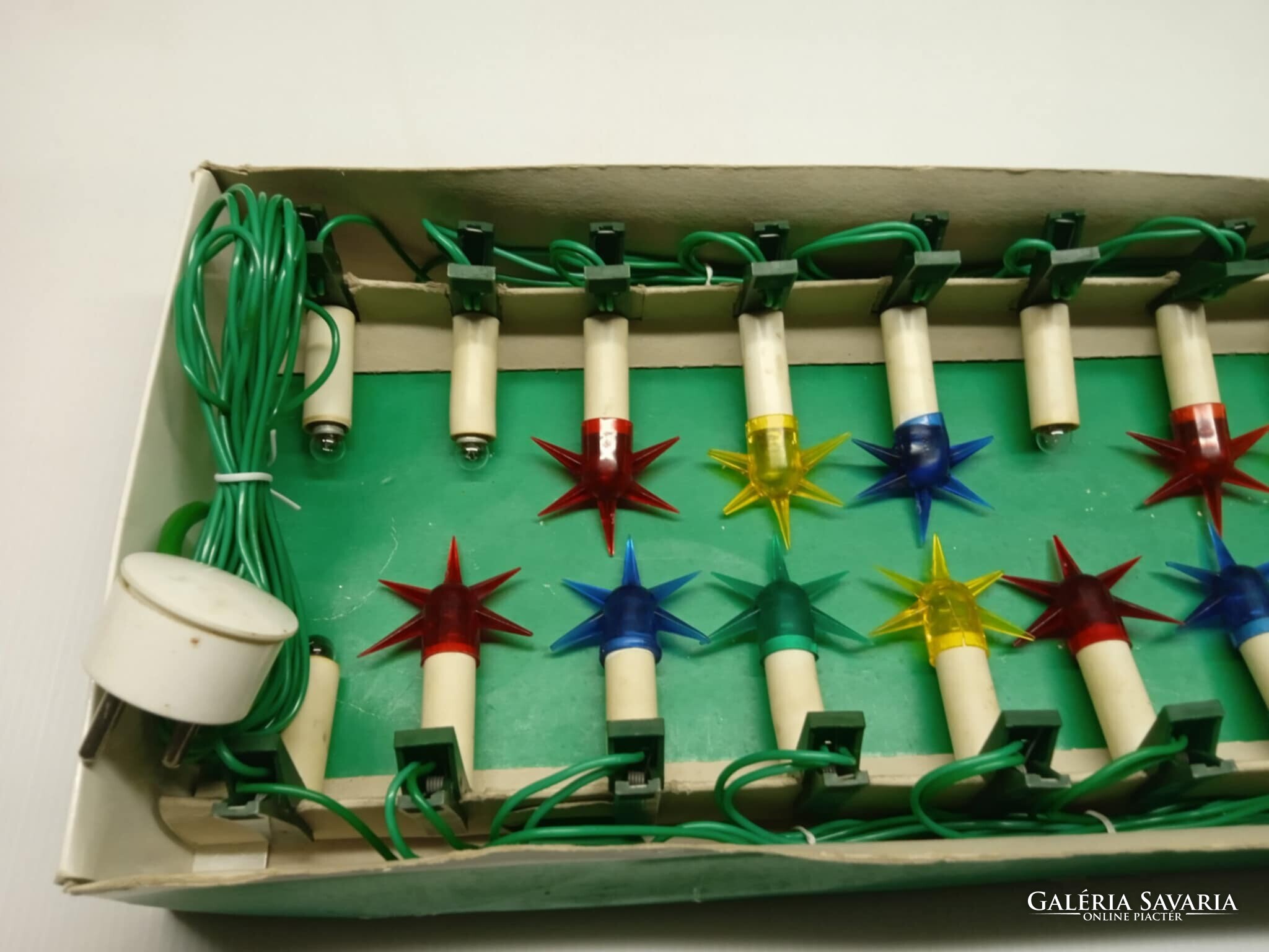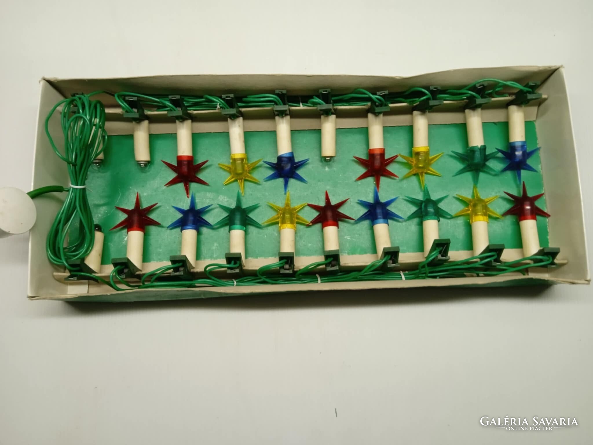 Régi, Magyar gyártmányú, szép állapotú, hagyományos csíptethető karácsonyfa izzó sor.