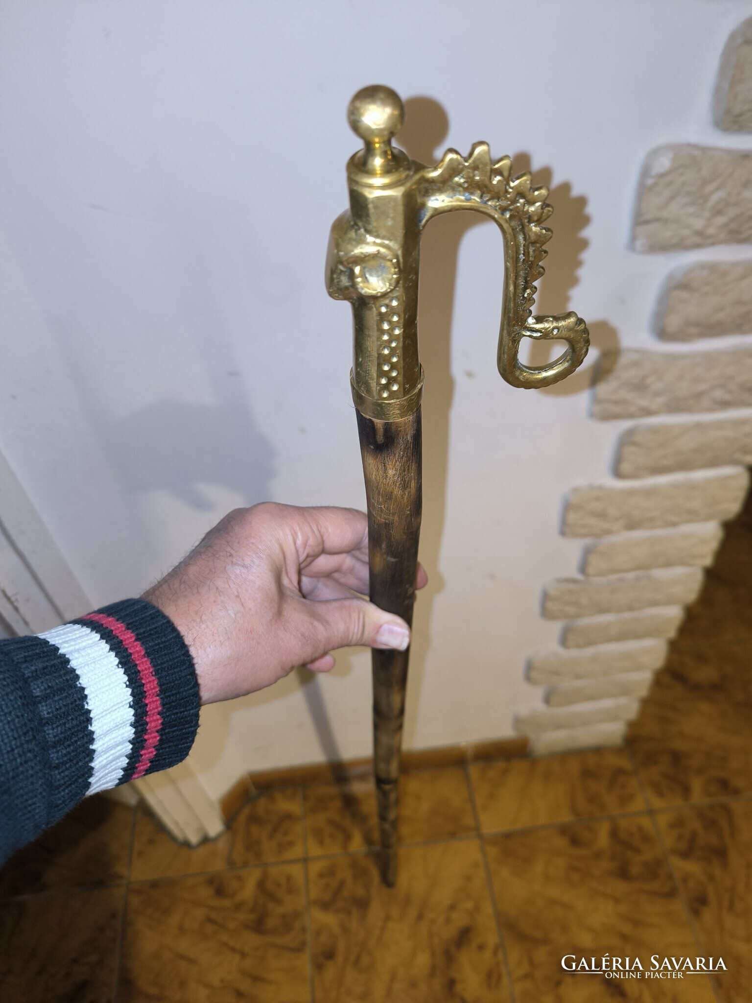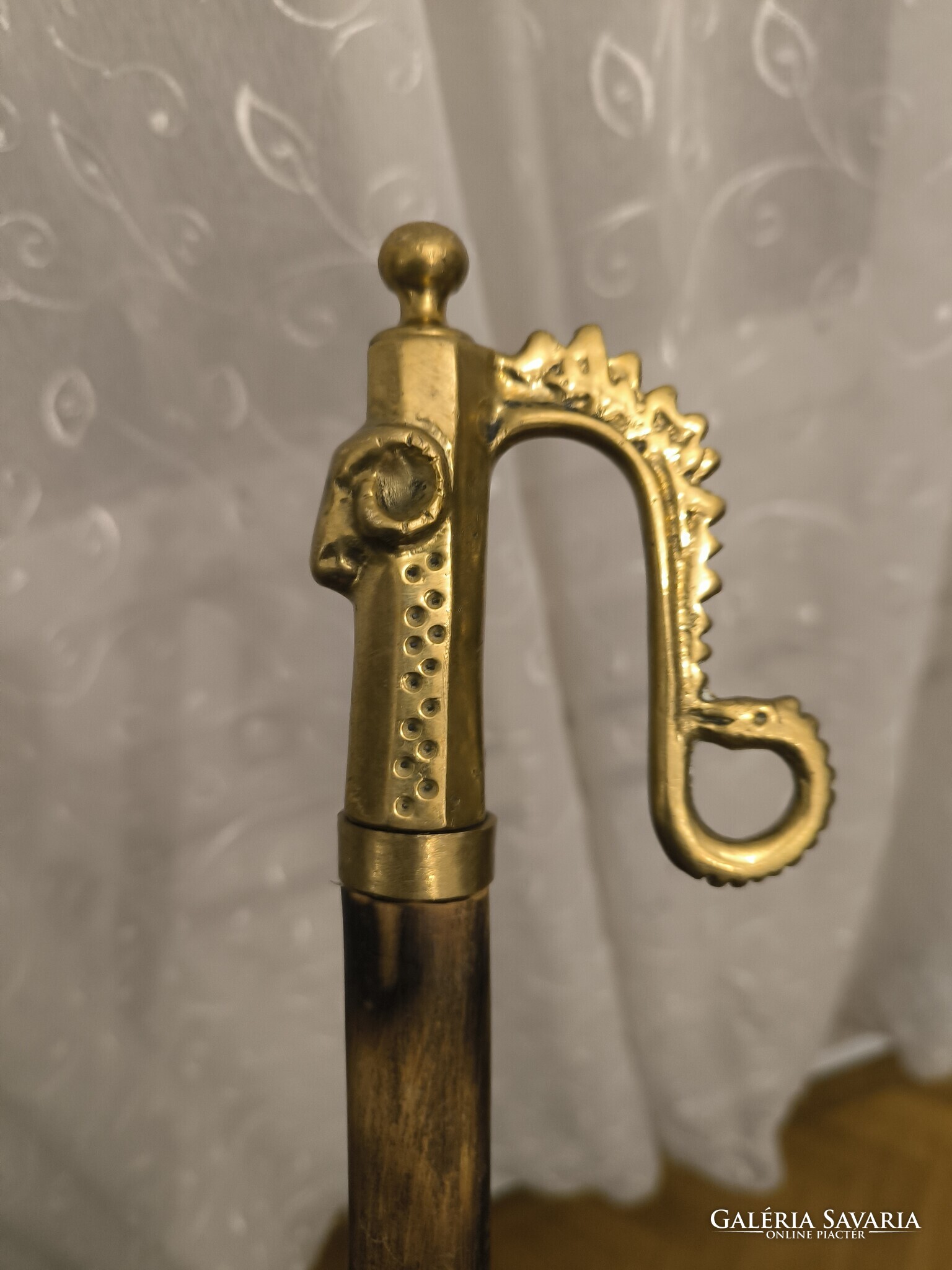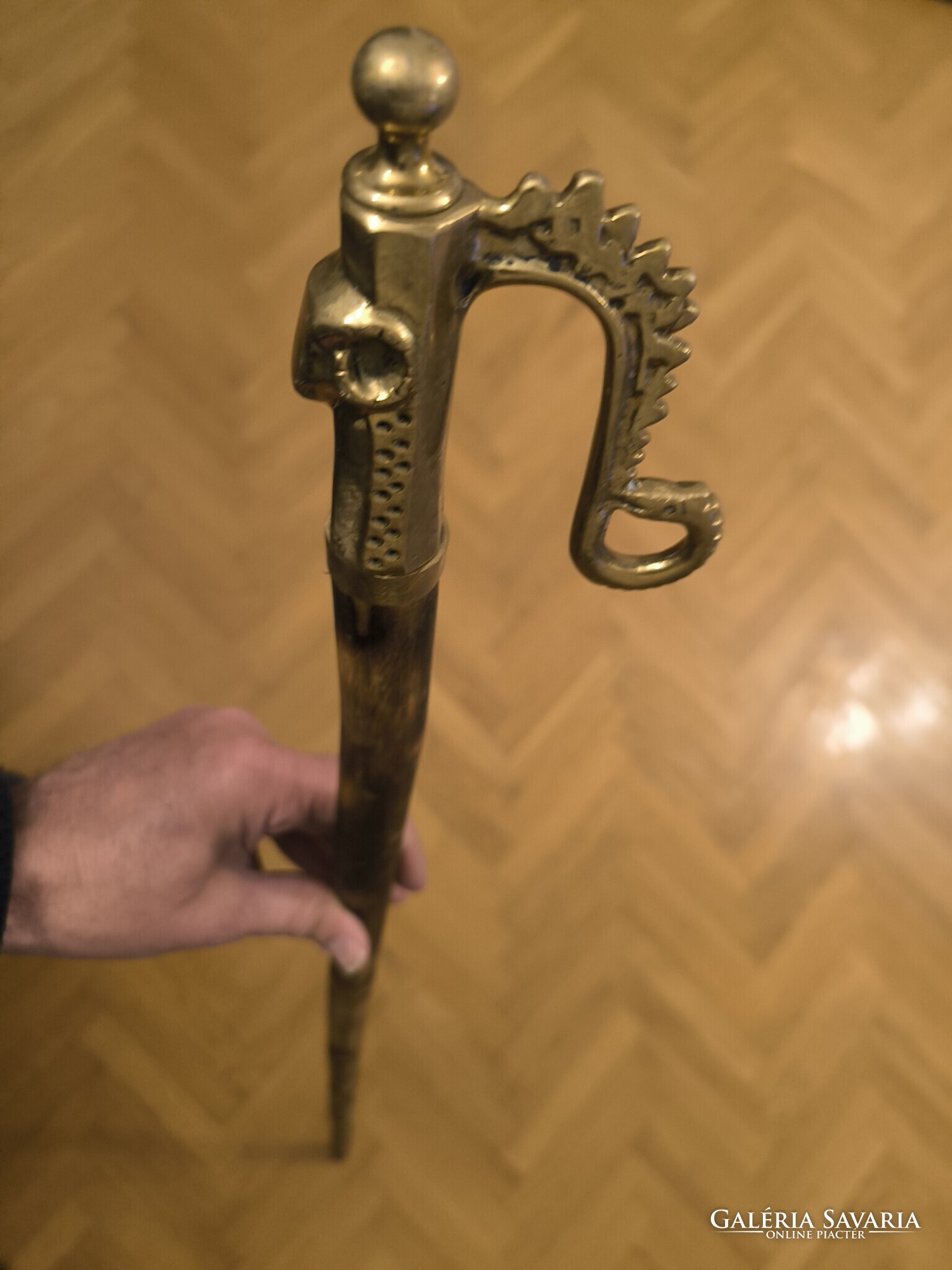 Réz öntvény fejjel túrabot jellegű juhász kampó Gamó bot , ahogy a fotókon látható hasznàlható jó állapotban van. Minden oldalról fotóztam. Hosszú fa résszel. Méretek is fotóztam. Személyes átvétel Budapesten 16 kerületben Jókai Mór utca megbeszélt időpontban