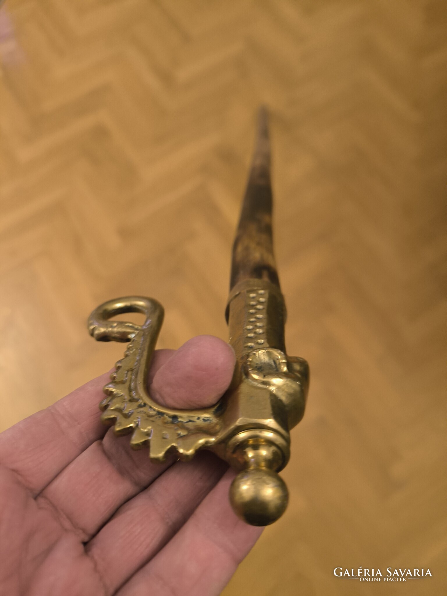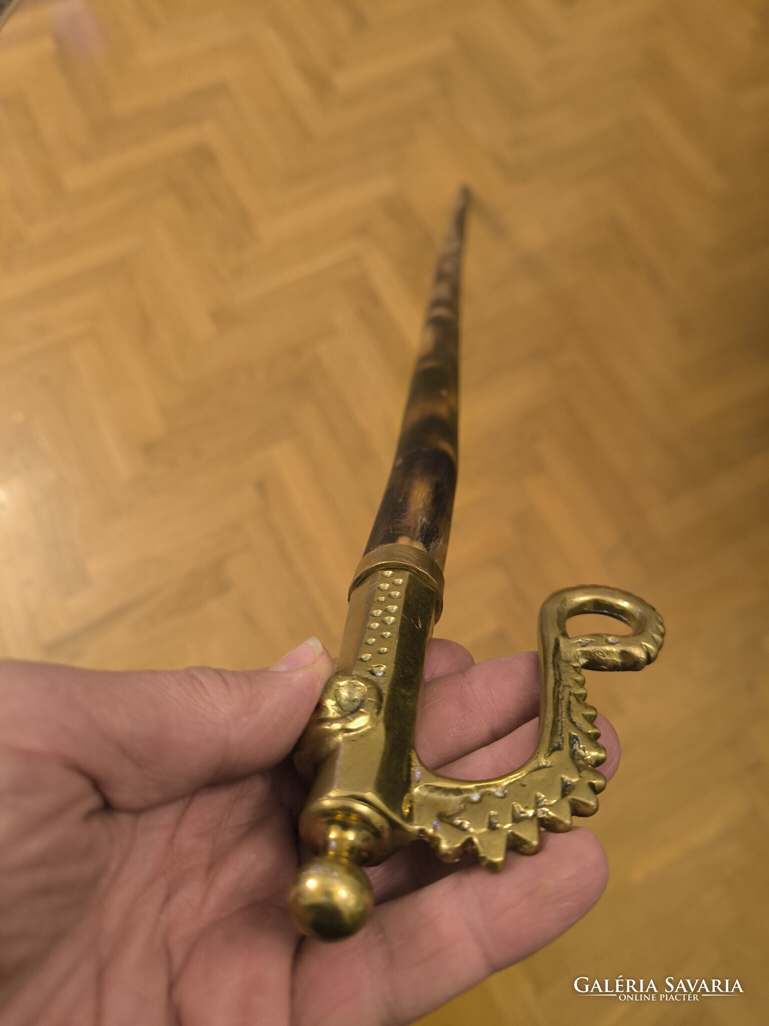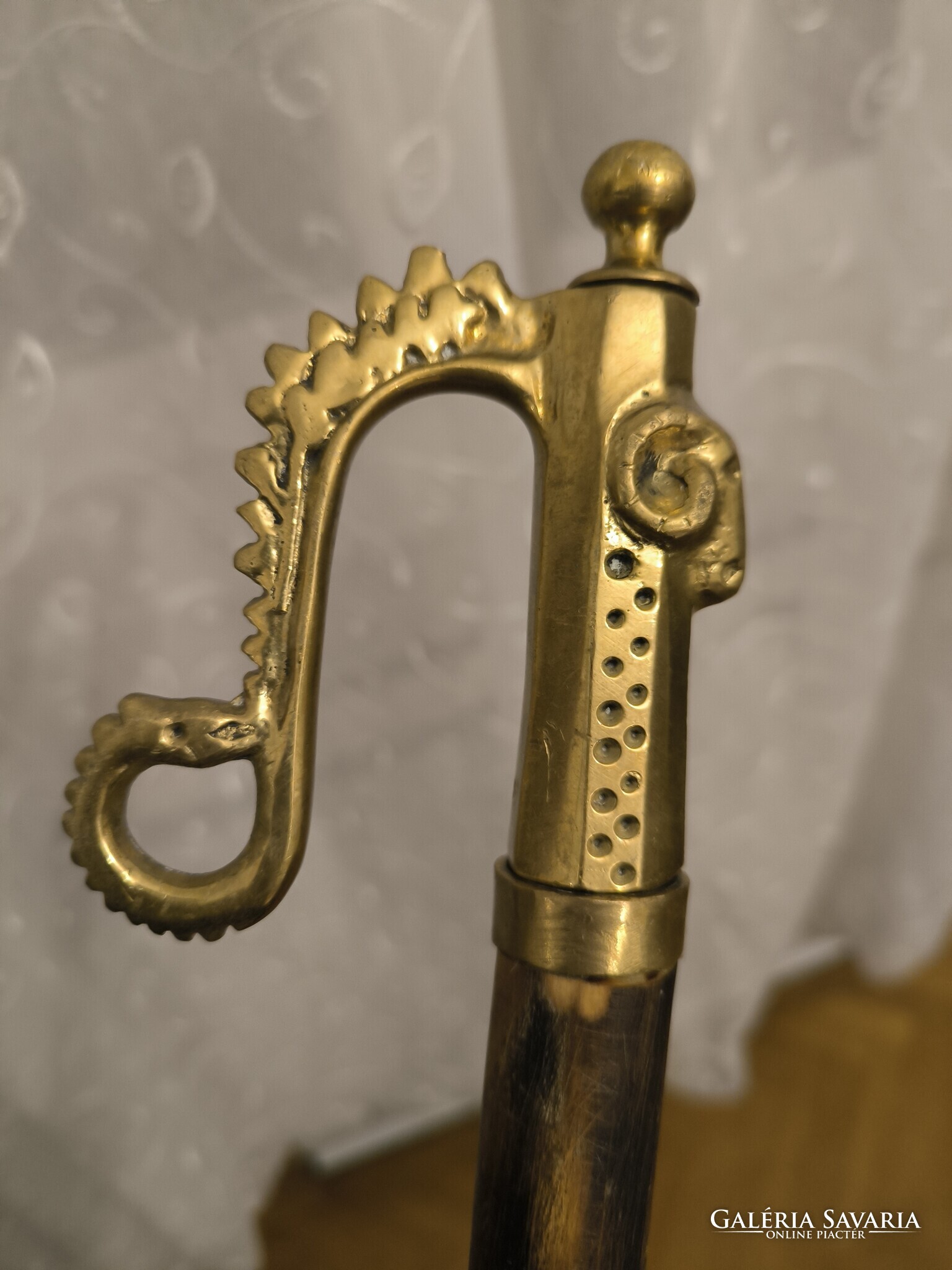 Réz öntvény fejjel túrabot jellegű juhász kampó Gamó bot , ahogy a fotókon látható hasznàlható jó állapotban van. Minden oldalról fotóztam. Hosszú fa résszel. Méretek is fotóztam. Személyes átvétel Budapesten 16 kerületben Jókai Mór utca megbeszélt időpontban