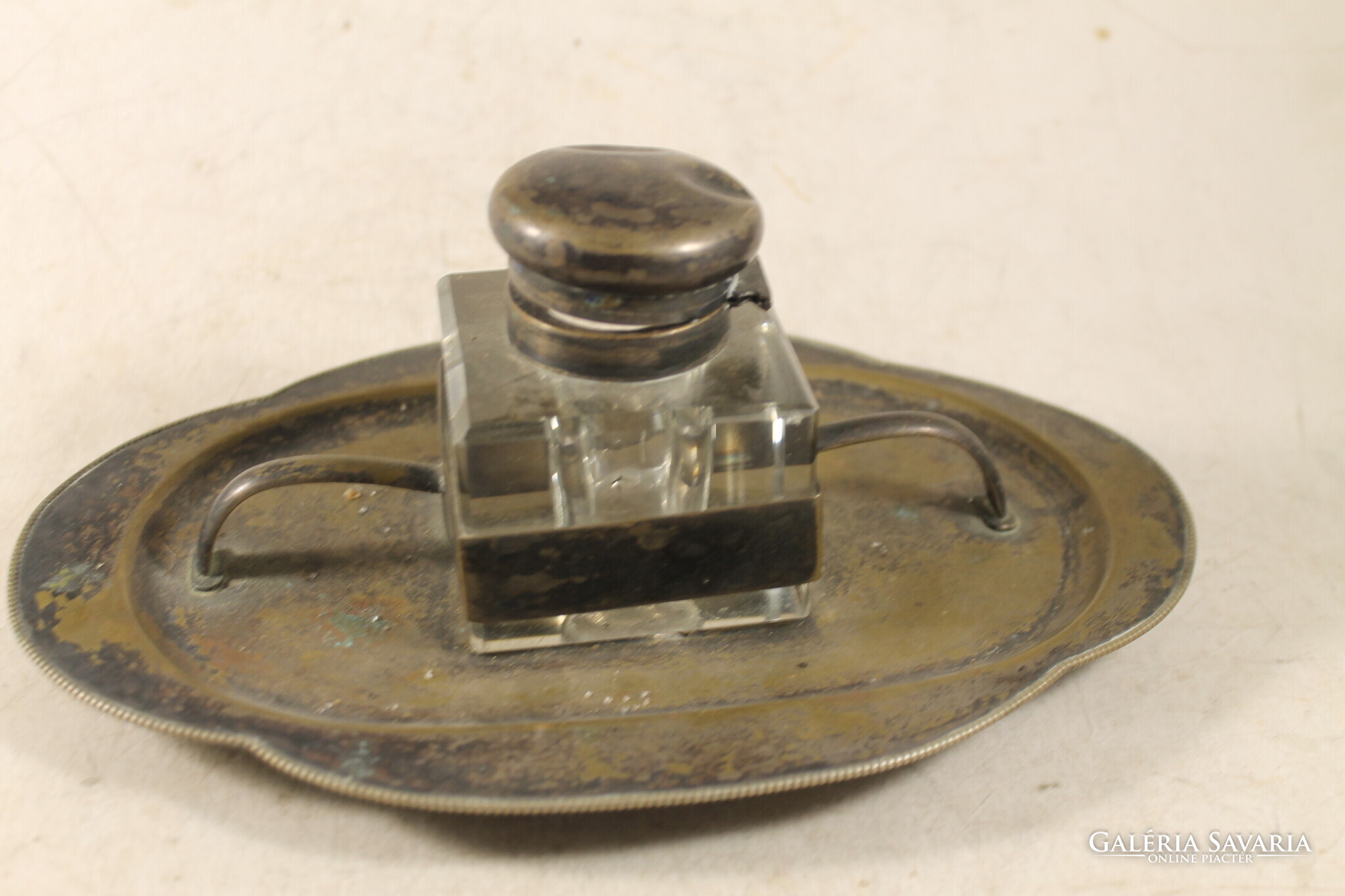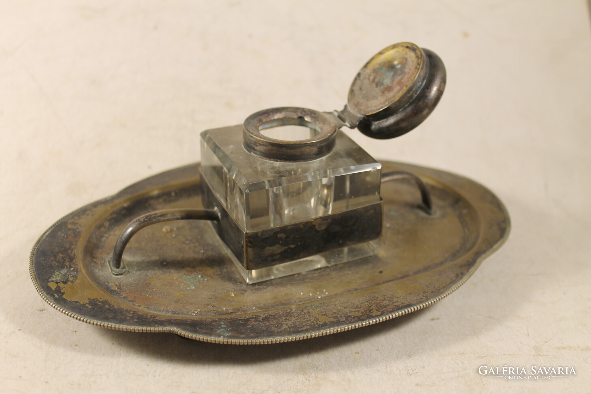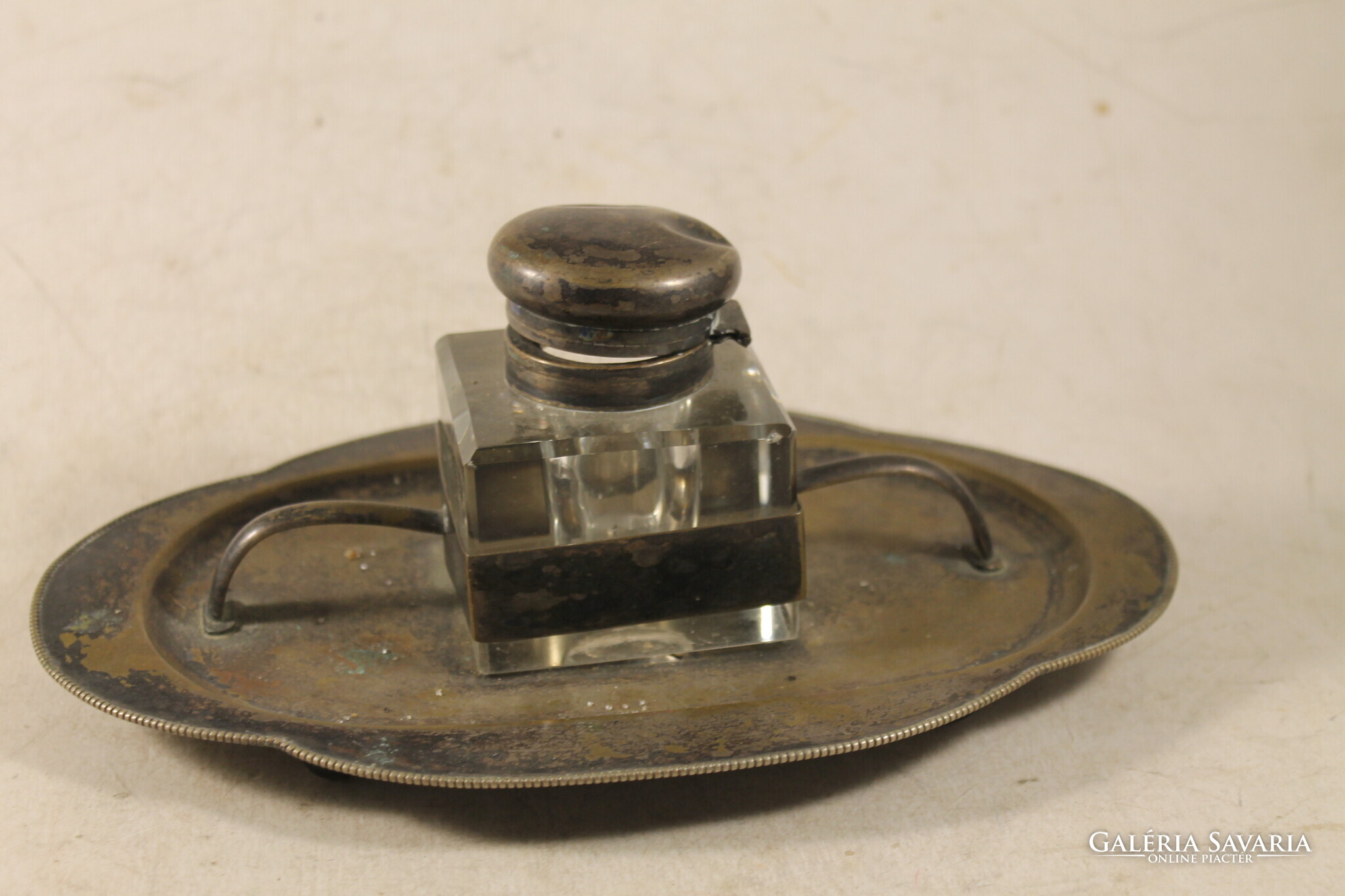 Antik ezüstözött kalamáris íróasztaldísz 178