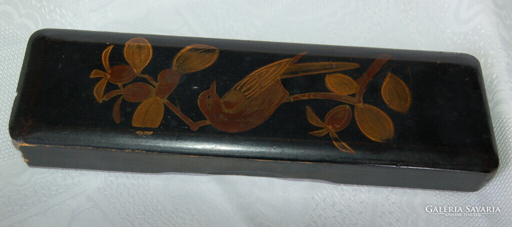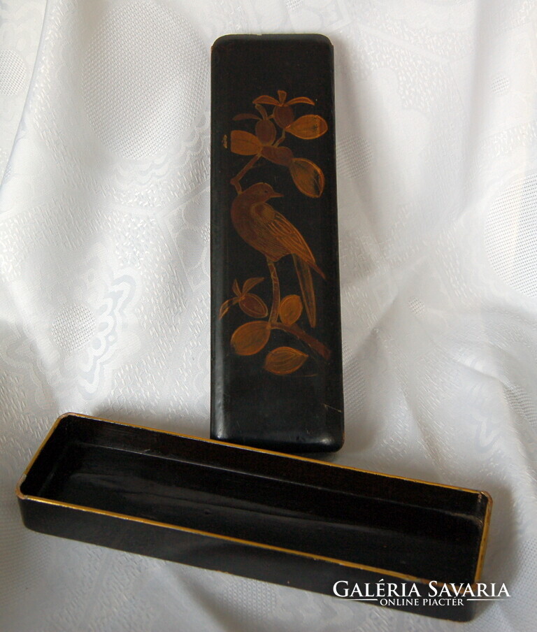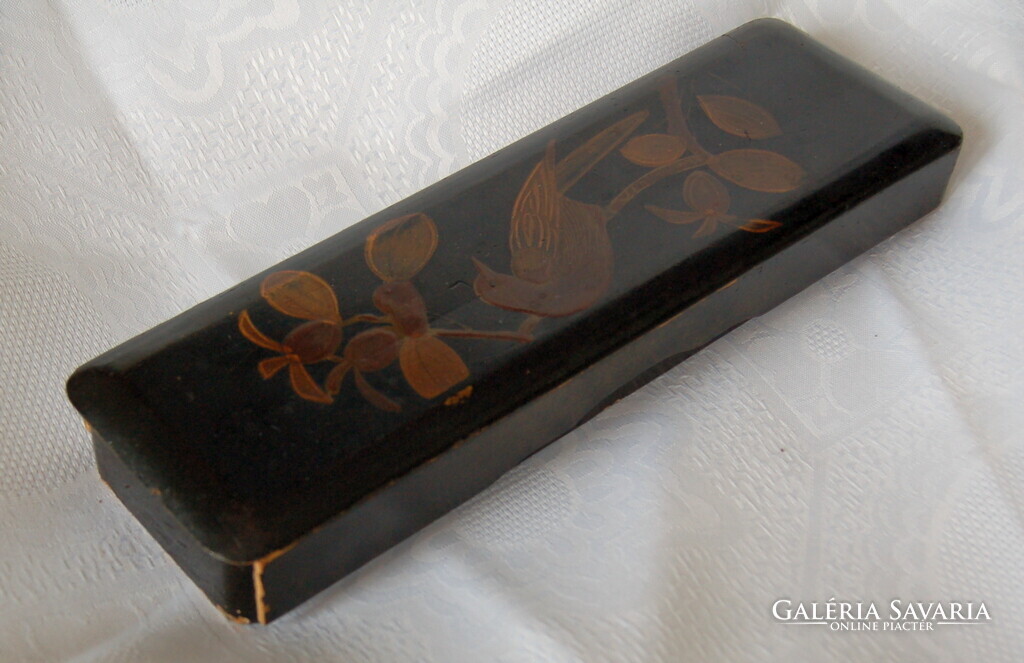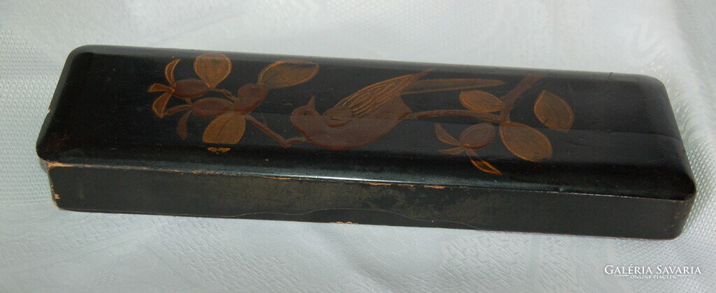 Antik Japán Lakk Doboz – Meidzsi-kor – Kézzel festett madár motívummal (30,5 cm)
