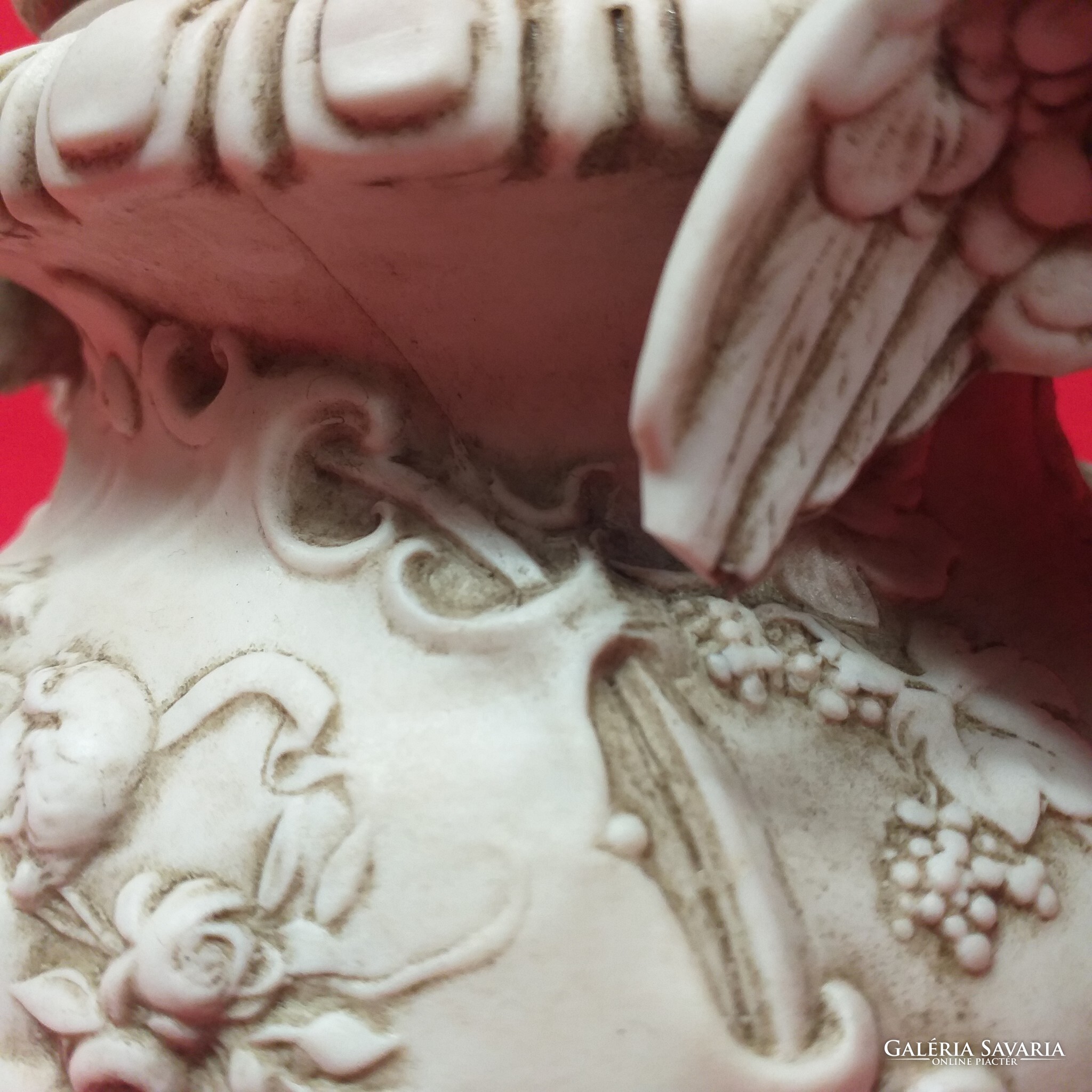 Eladó nagyon ritka egyedi Német Hertwig & Co Katzhütte 1914-1945 közötti. Dúsan díszített bisquit,puttós angyalos motívumokkal a képeken látható szinte hibátlan állapotban.Az egyik angyal szárny végén,alig látható lepattanás,fényképestem.Az ára ennek figyelembevételével alakítva.