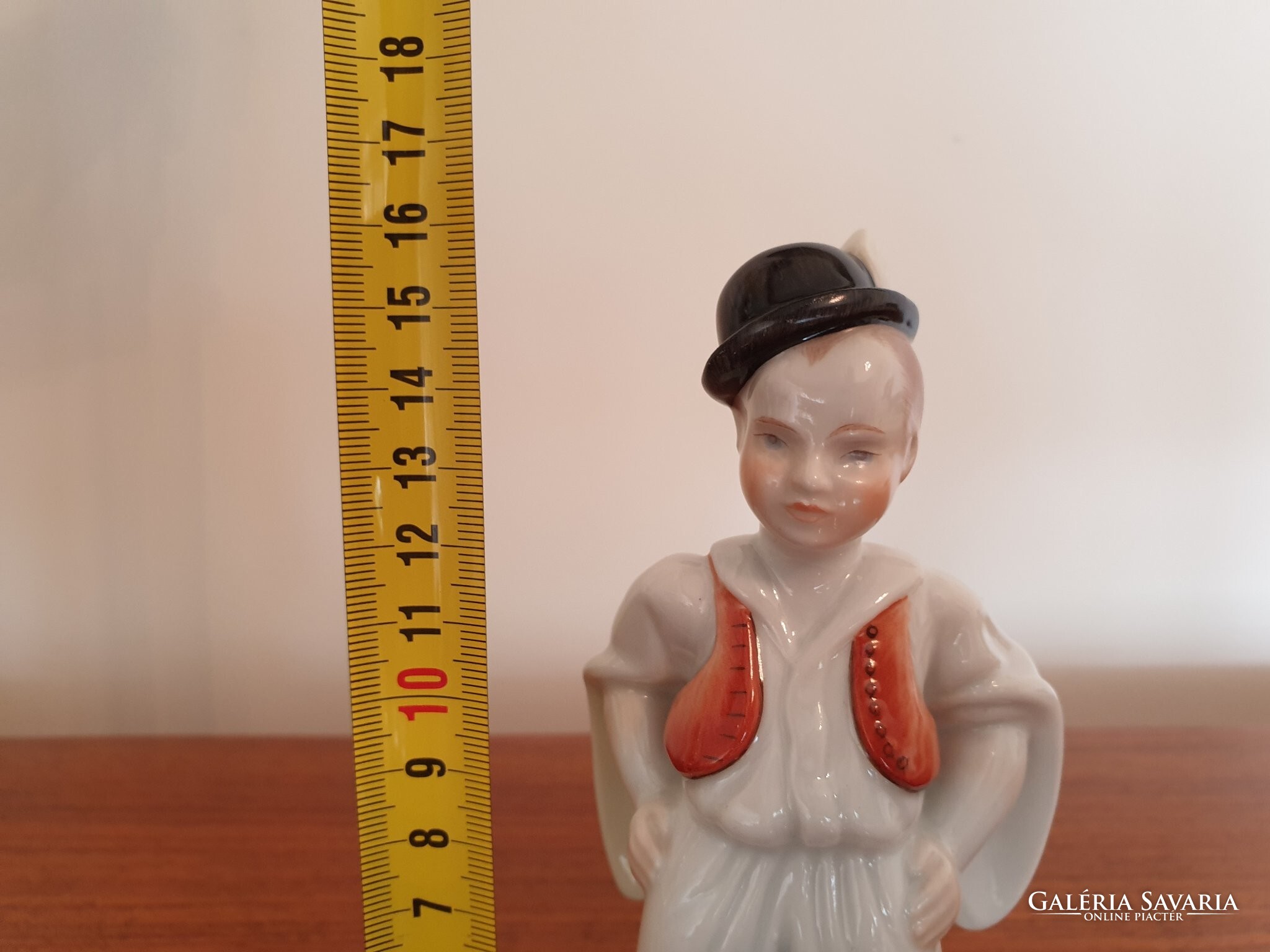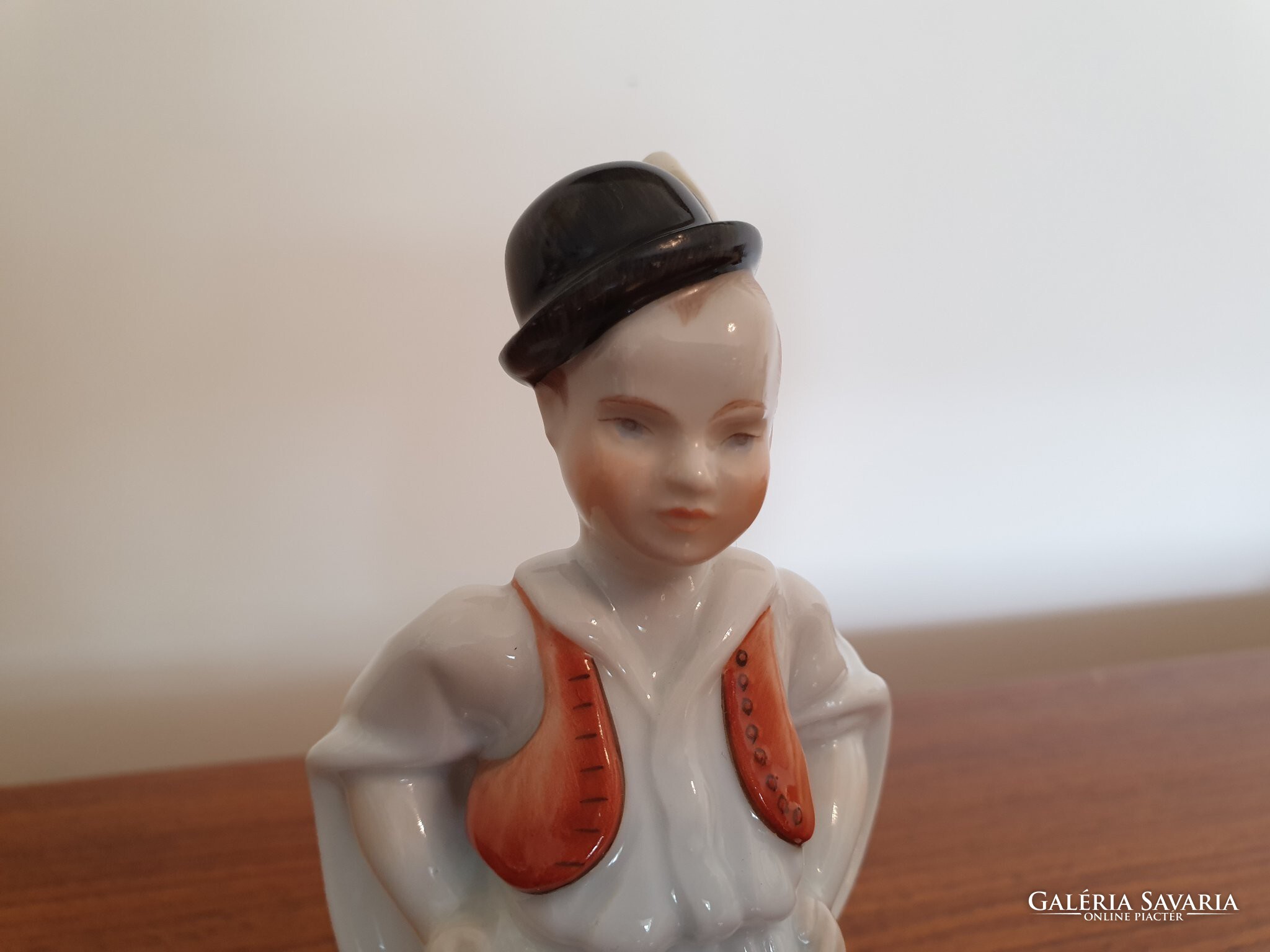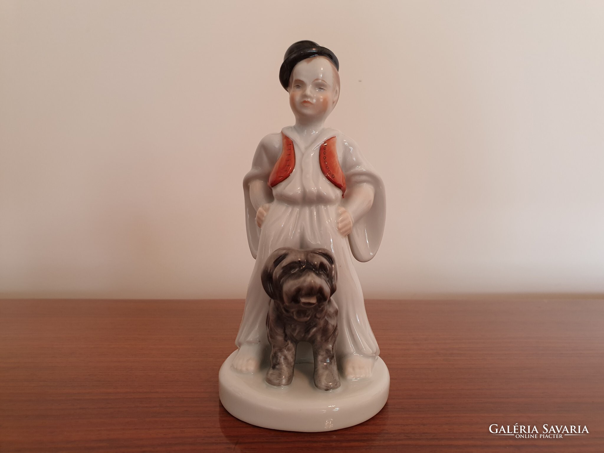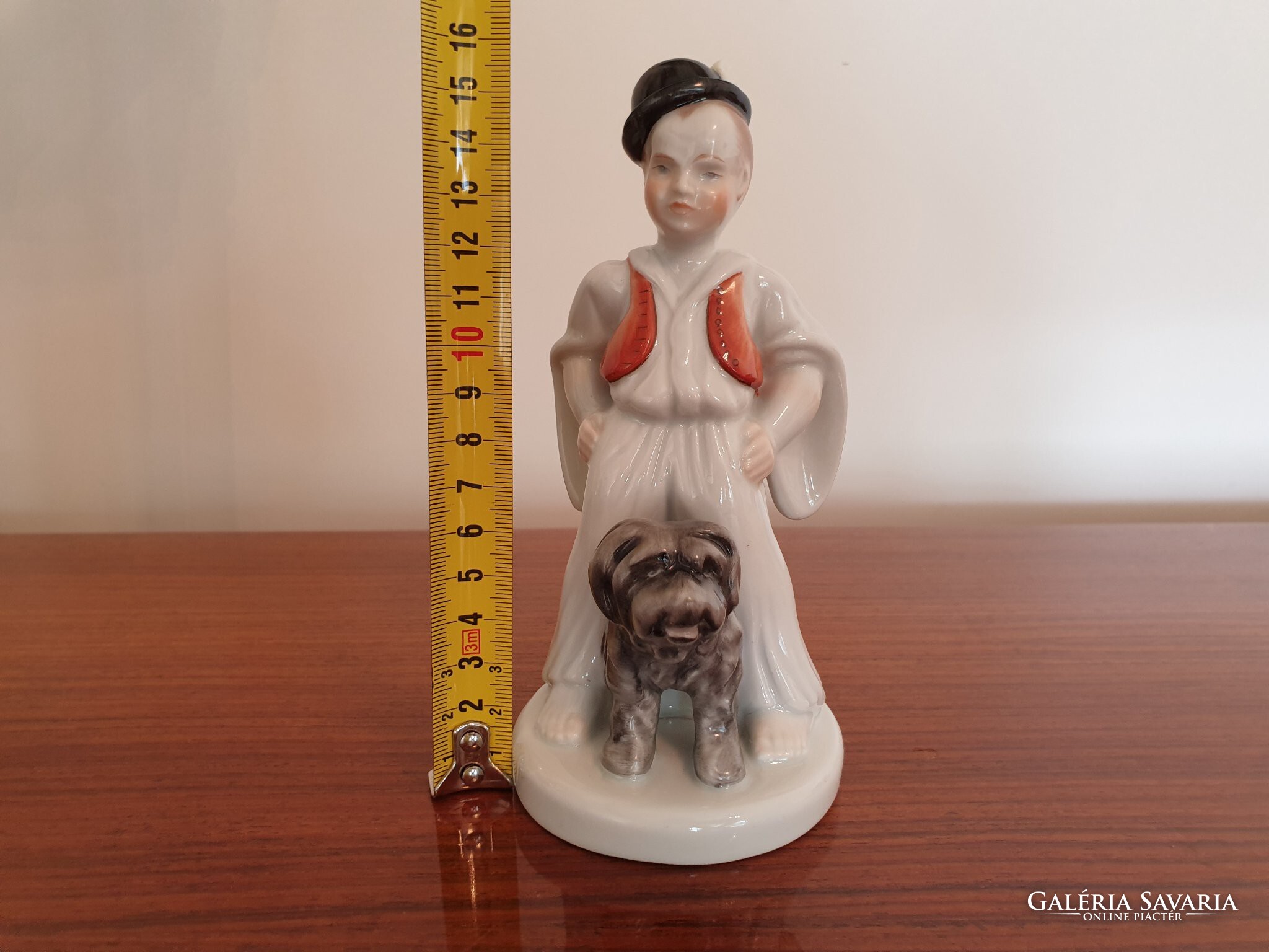 Sérülésmentes, jelzett régi Herendi porcelán fiú népviseletben puli kutyával, magassága 16 cm.