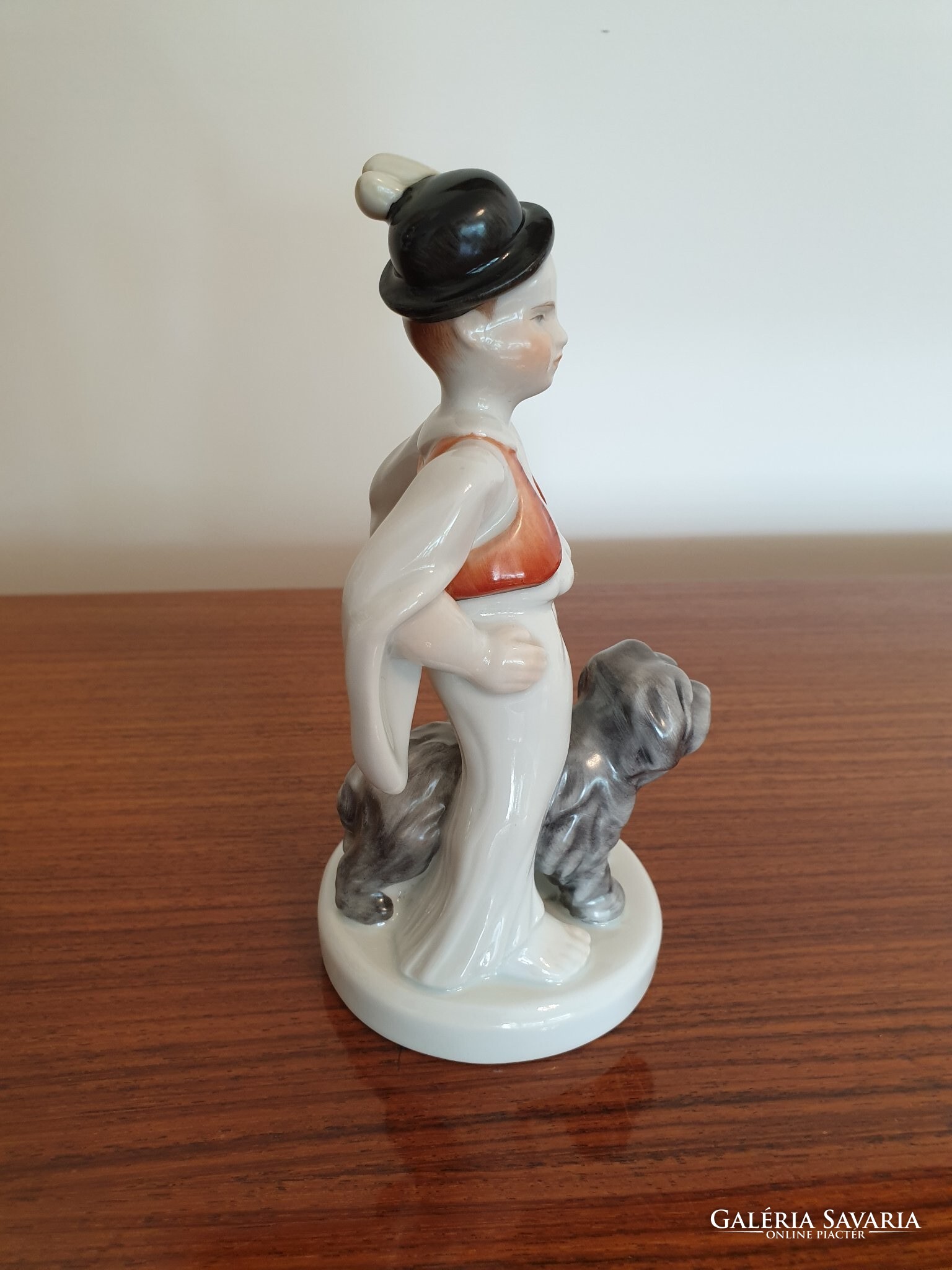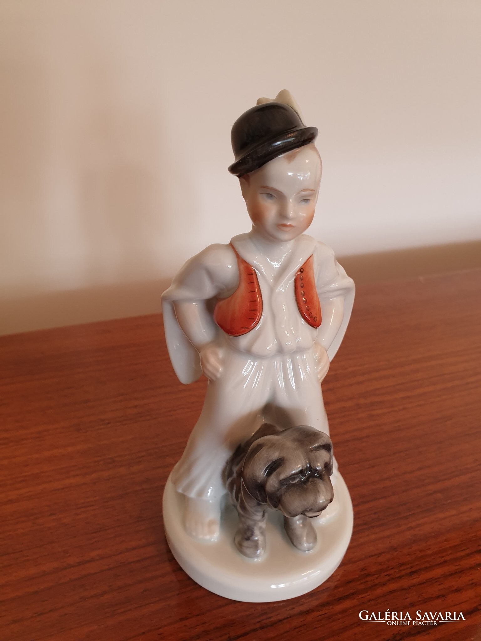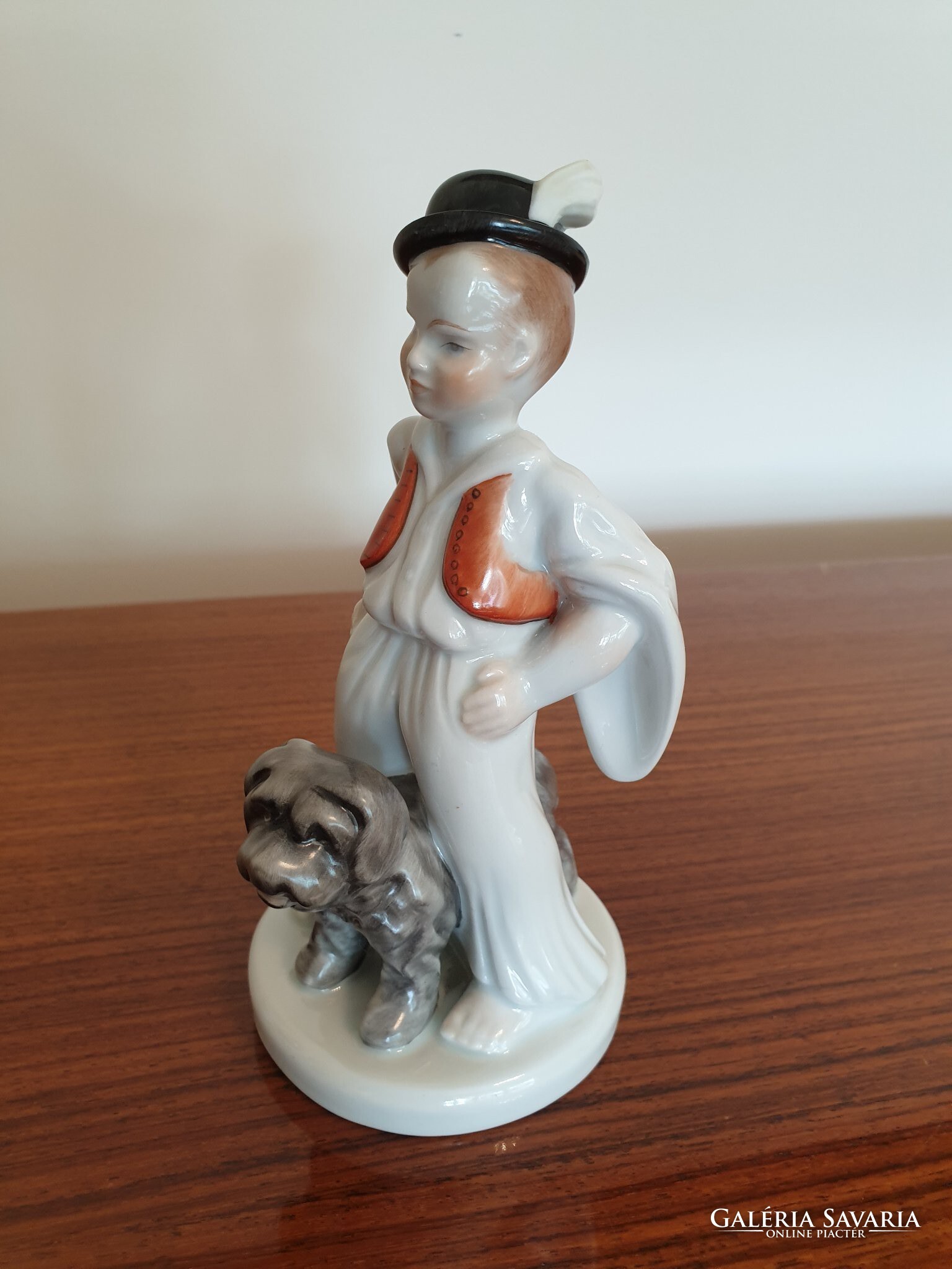 Régi Herendi porcelán fiú népviseletben puli kutyával
