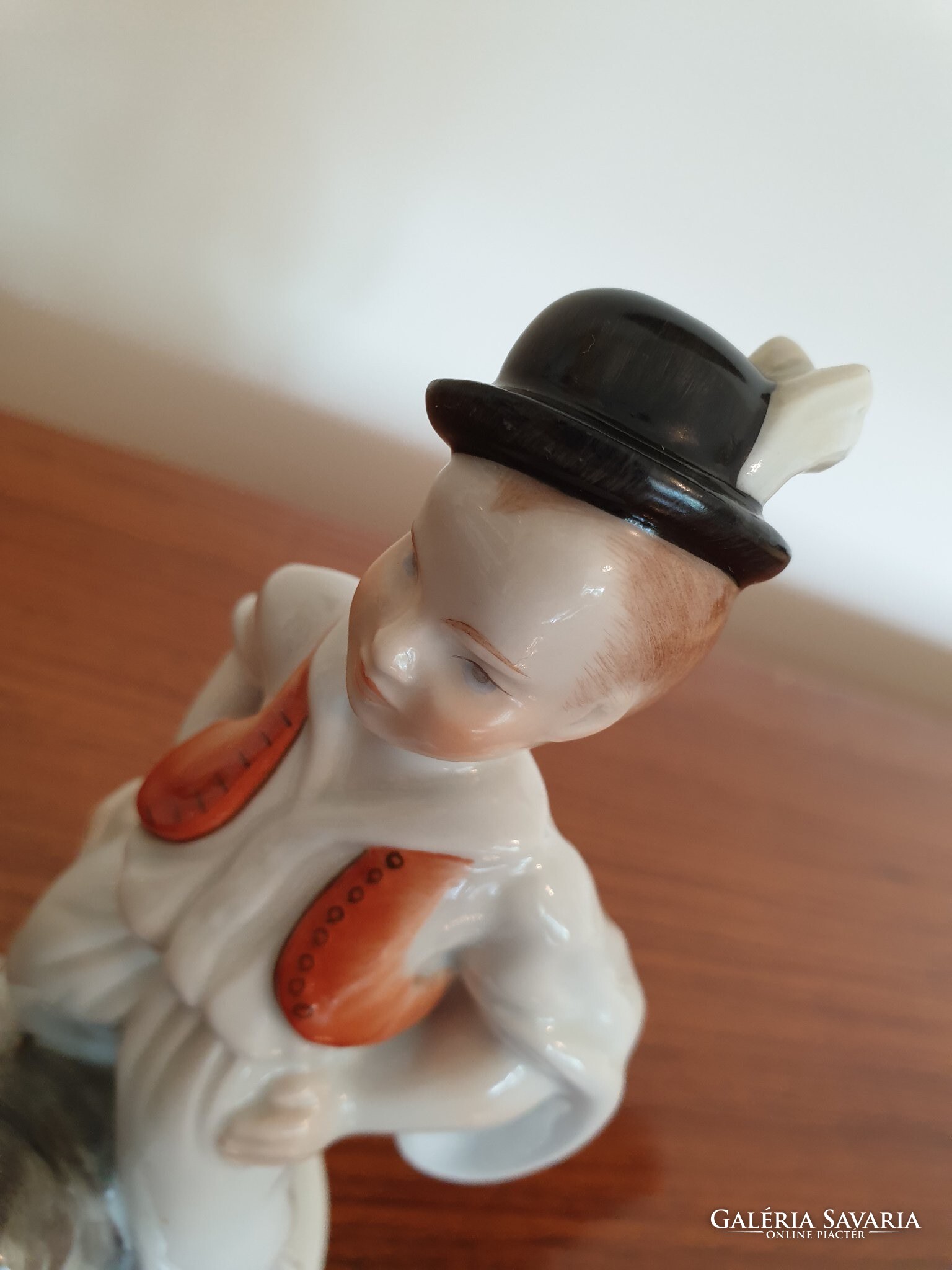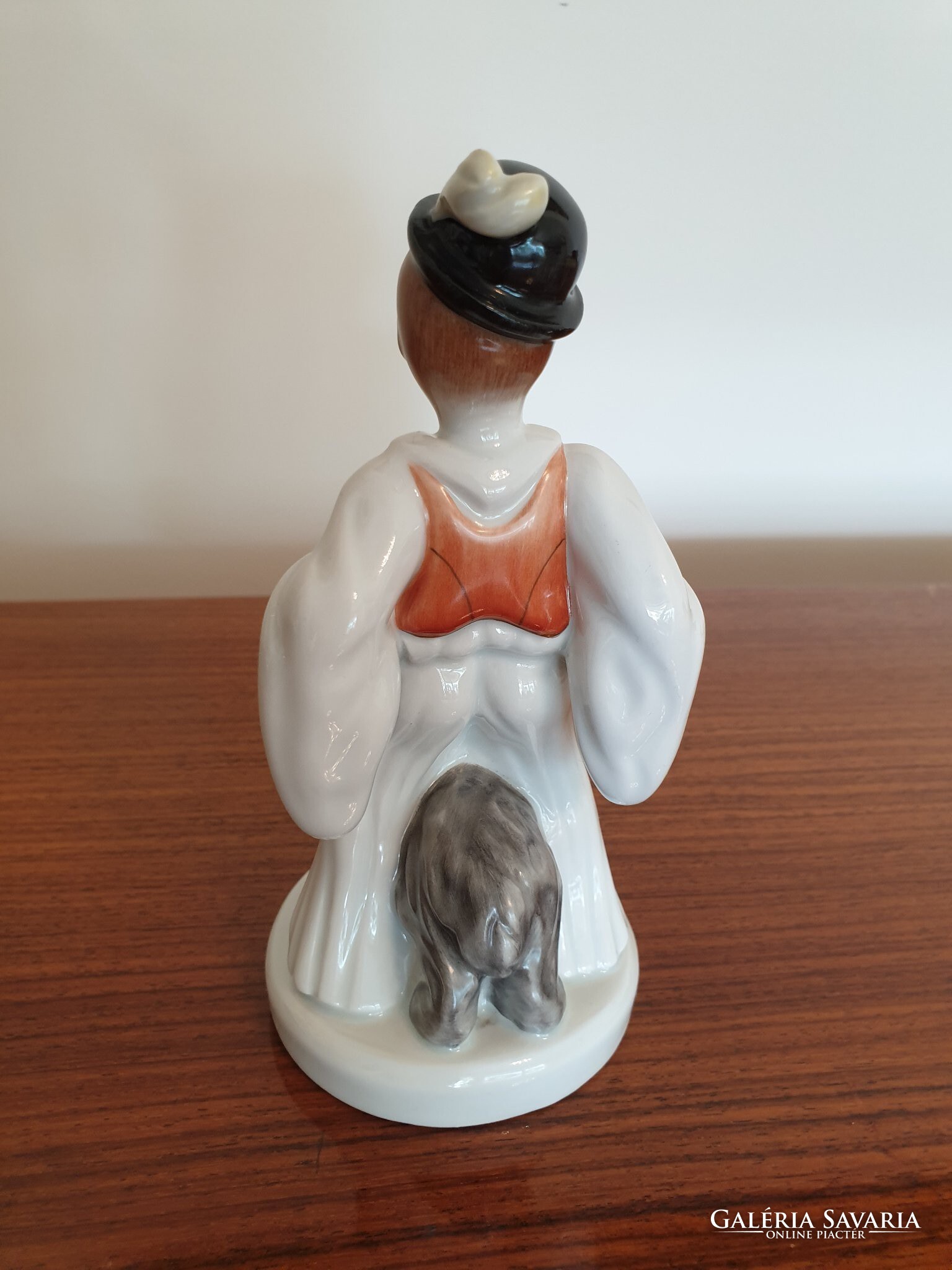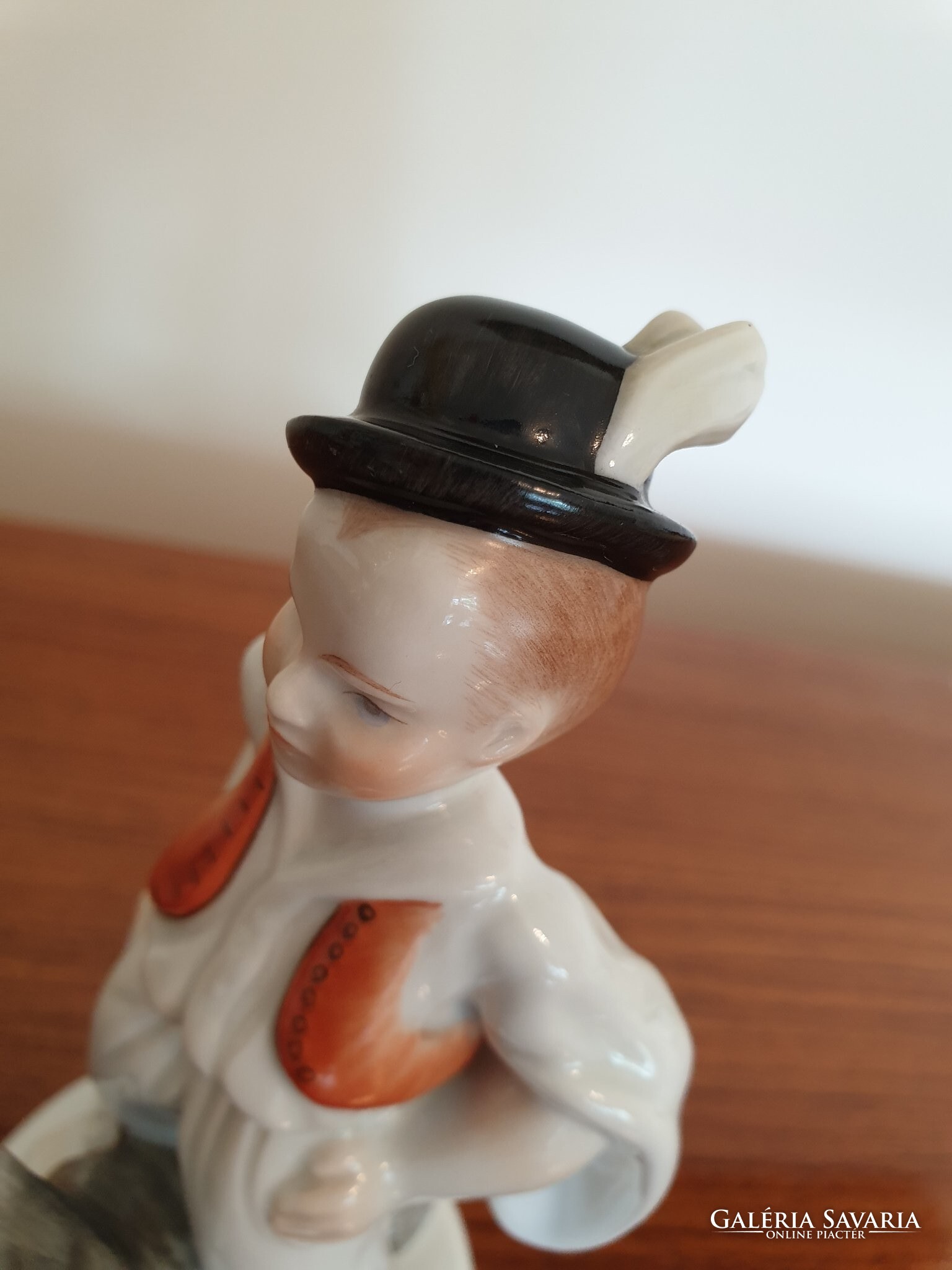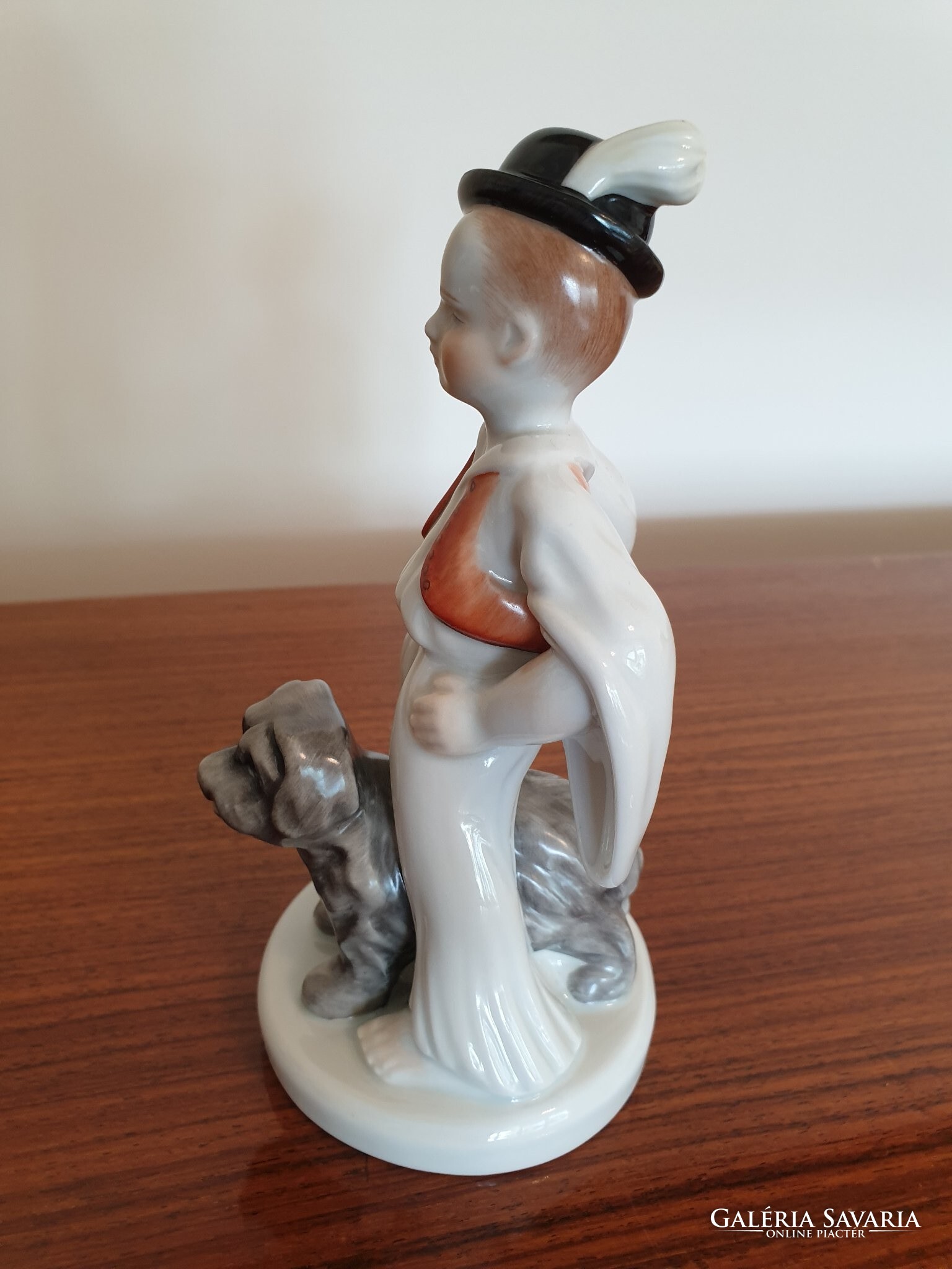 Régi Herendi porcelán fiú népviseletben puli kutyával