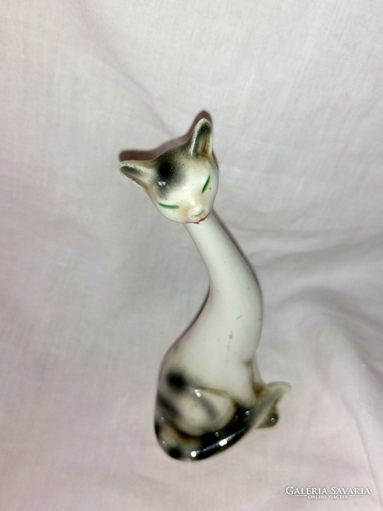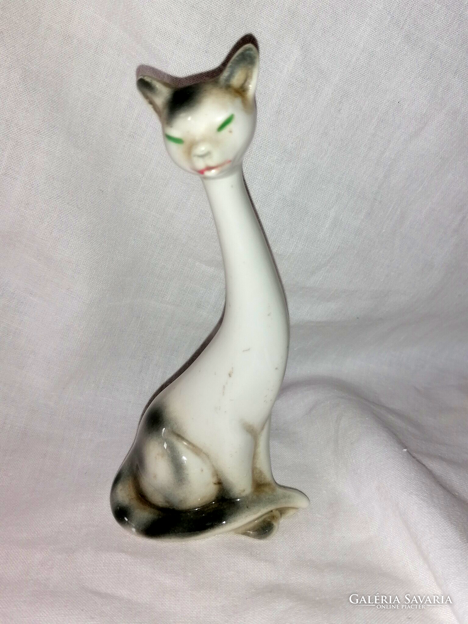 - Porcelán büszke cica, kecses cica figura, dísztárgy. 12 cm.