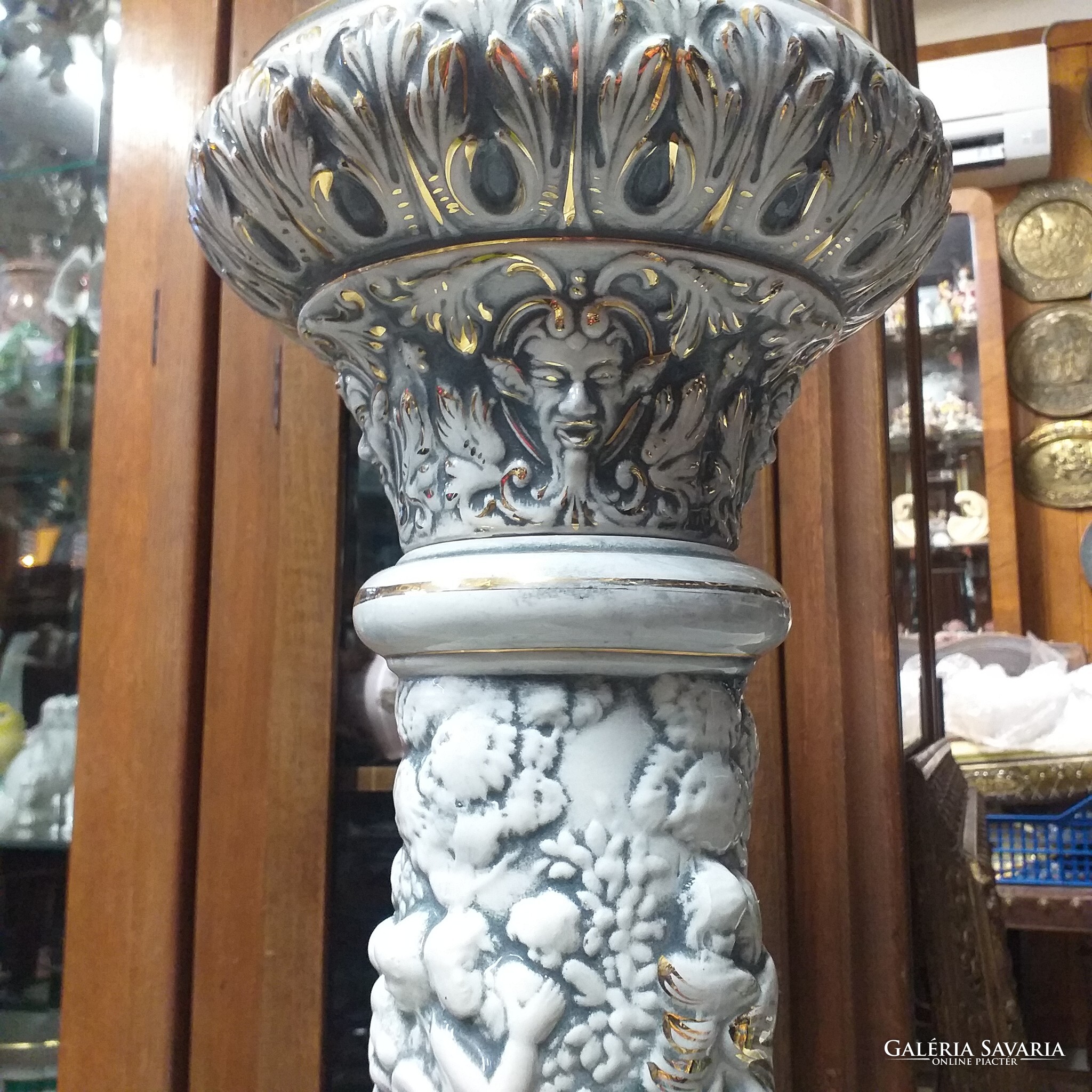 Eladó Capodimonte porcelán posztamens,virágtartó a képeken látható hibátlan állapotban.Aranyozott,dómbor mintás egyedi nagyon ritka művészi darab.